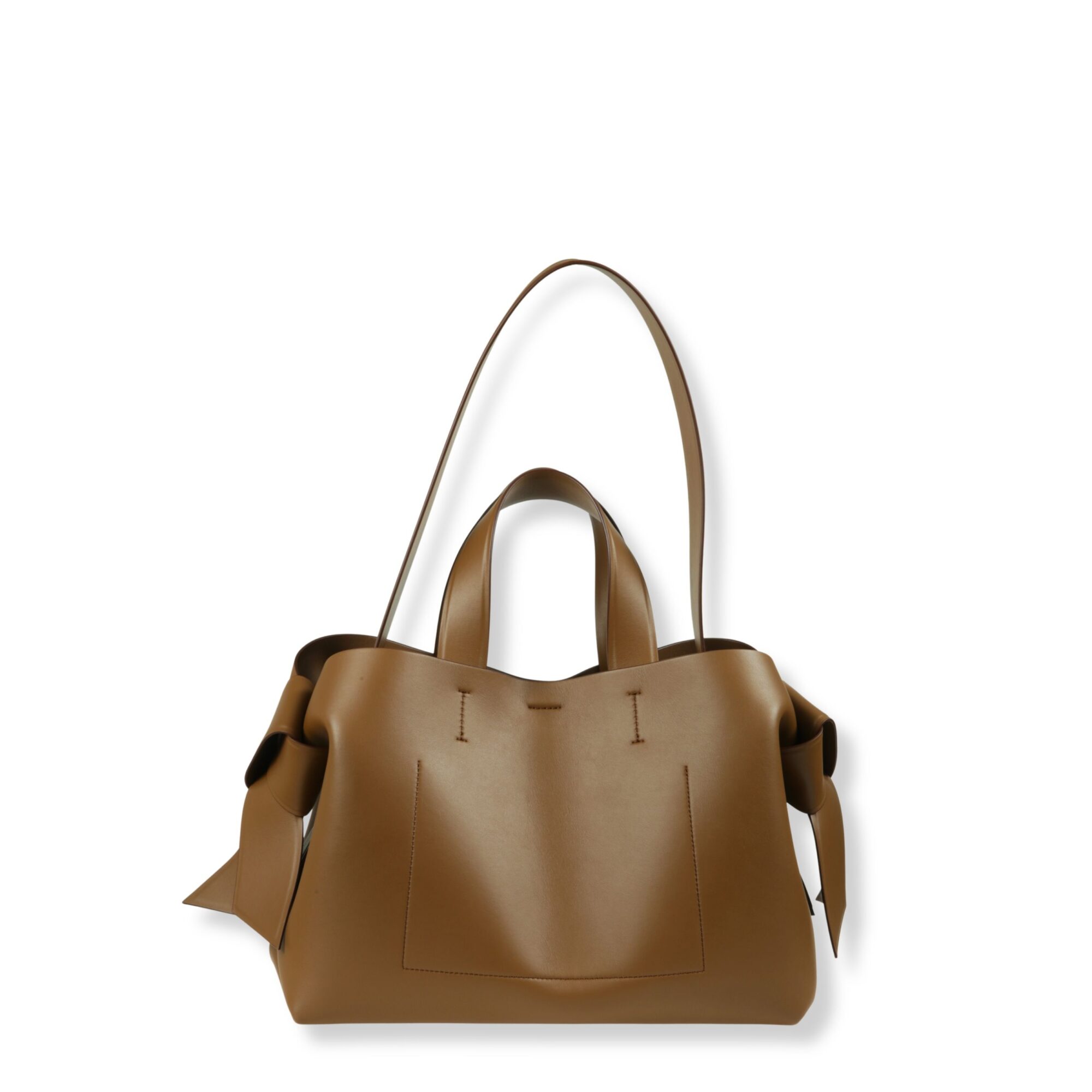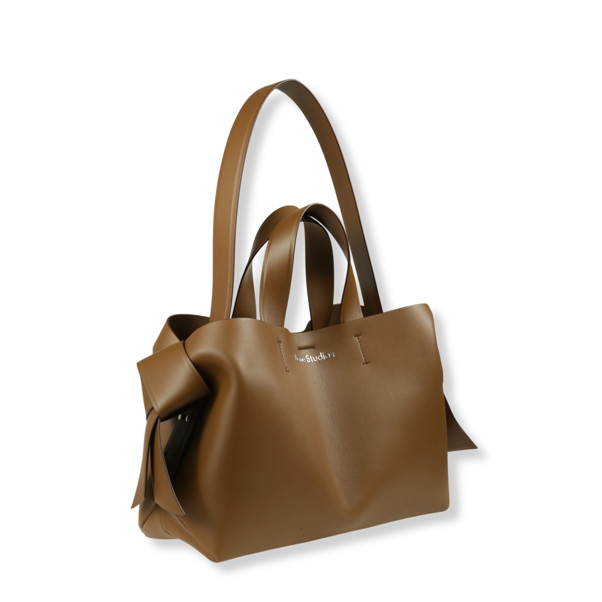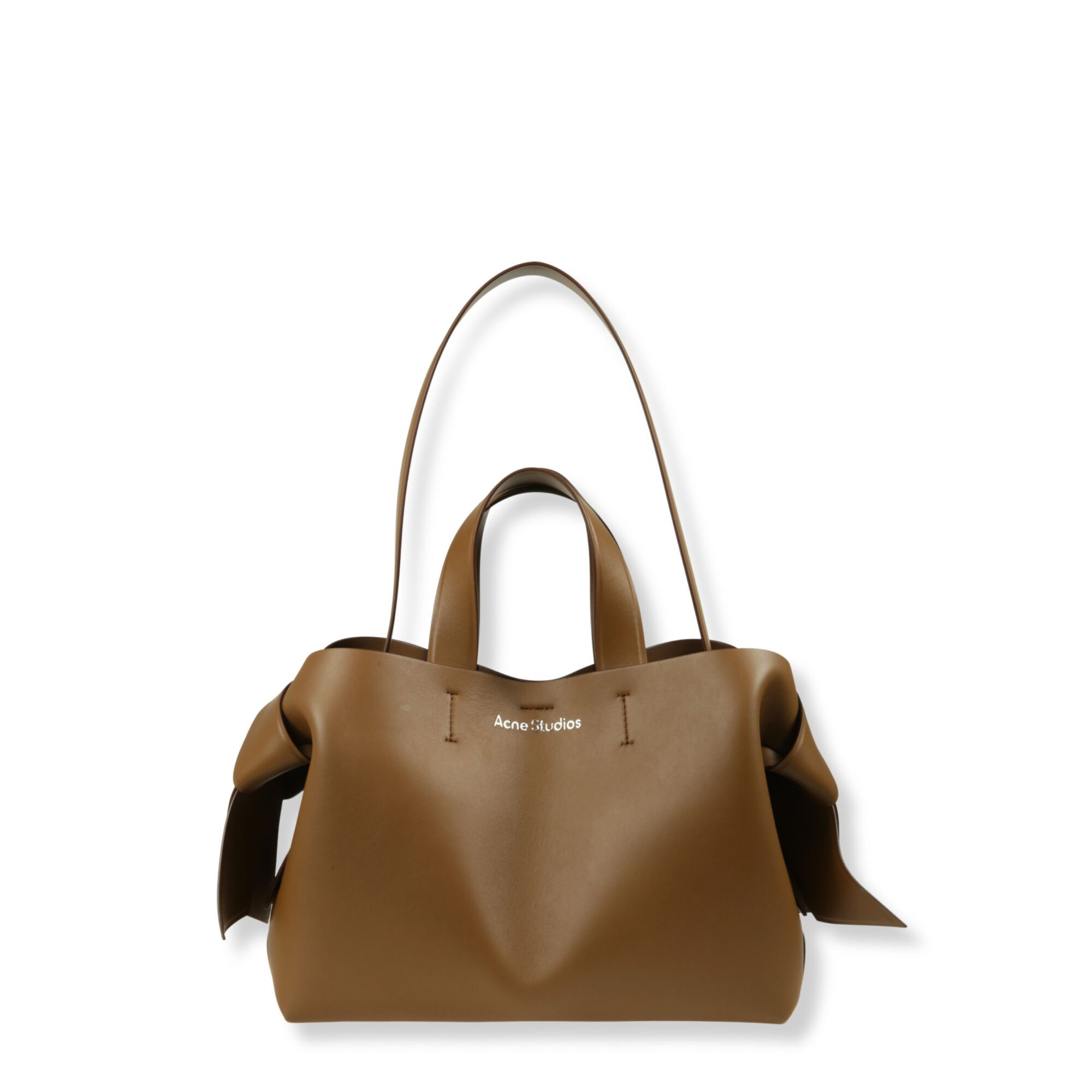 Musubi Tote Acne Studios. Design in pelle con finitura liscia e logo del brand sul davanti, manico superiore e tracolla coordinata. Dotata di tasca interna con chiusura a zip.