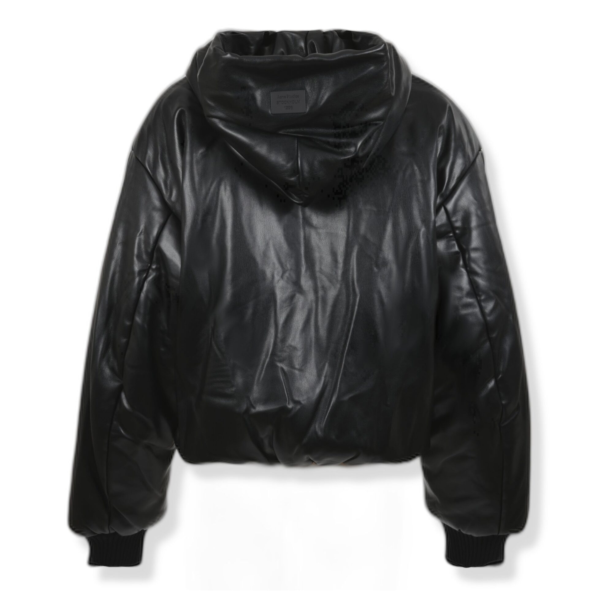 Hooded Faux Leather Jacket Acne Studios. Giacca in ecopelle, vestibilità regolare, con cappuccio, polsini elasticizzati e orlo inferiore effetto arricciato.