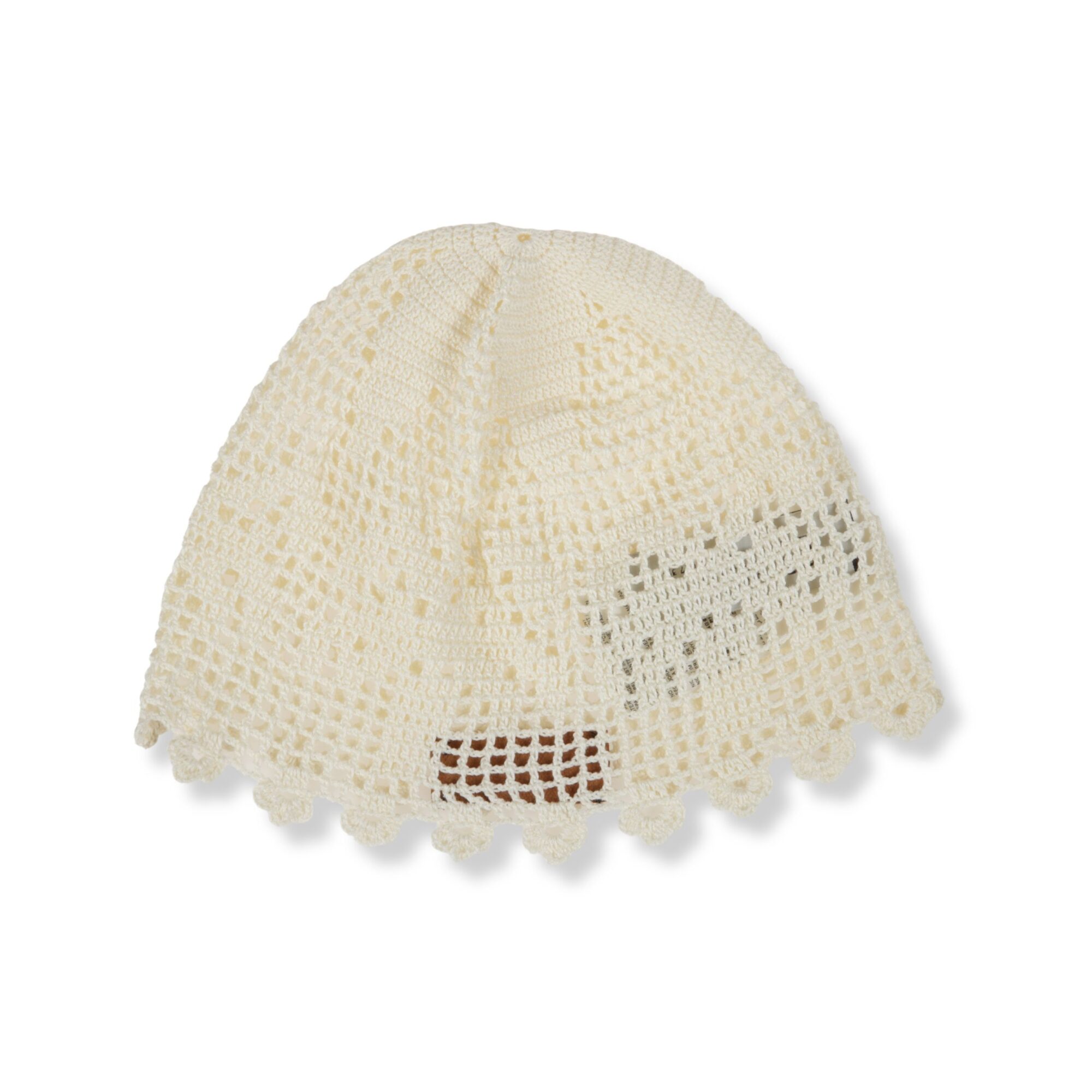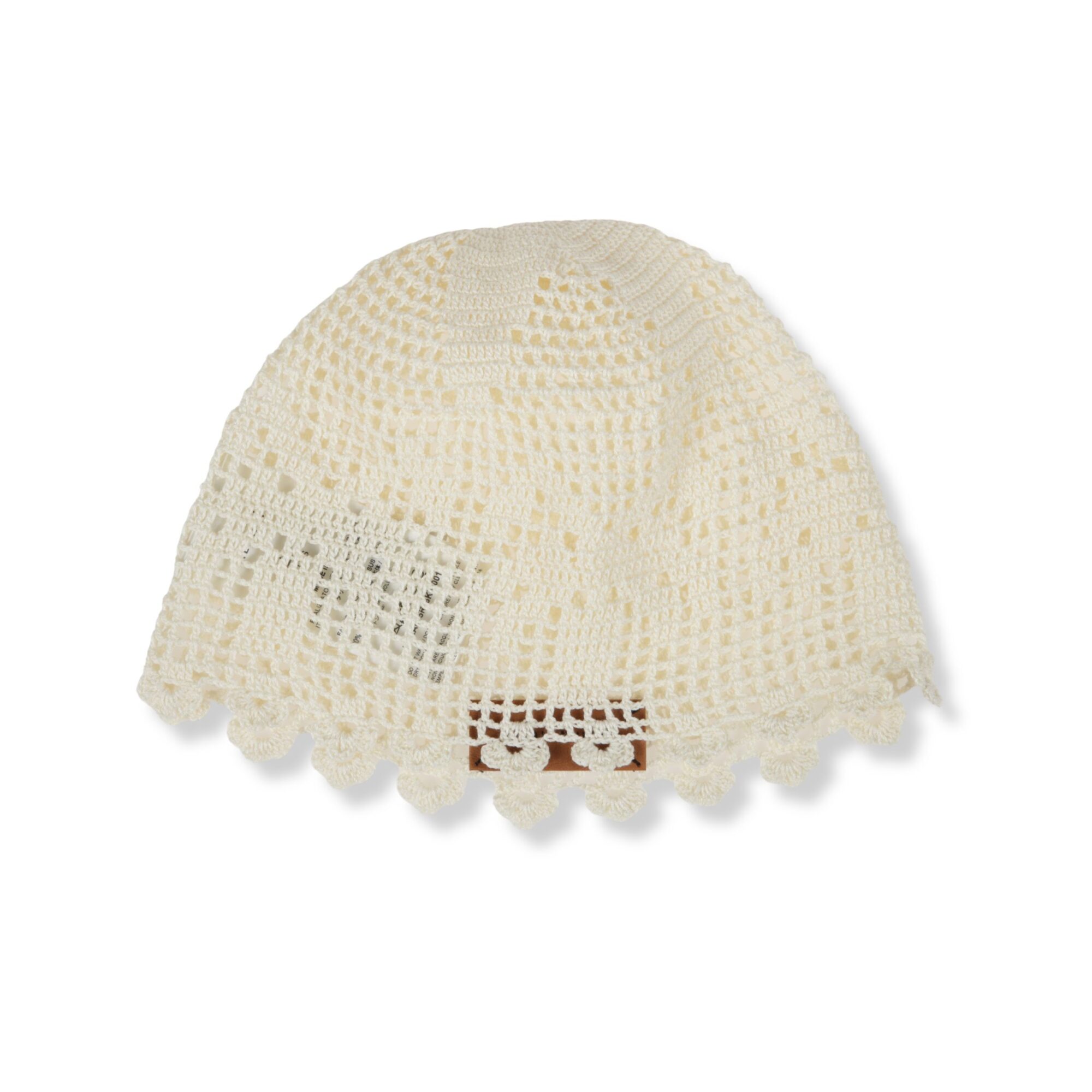 Island’s Diary Crochet Hat Alanui. Design lavorato a mano in cotone con ricami a forma di palma e orlo smerlato.