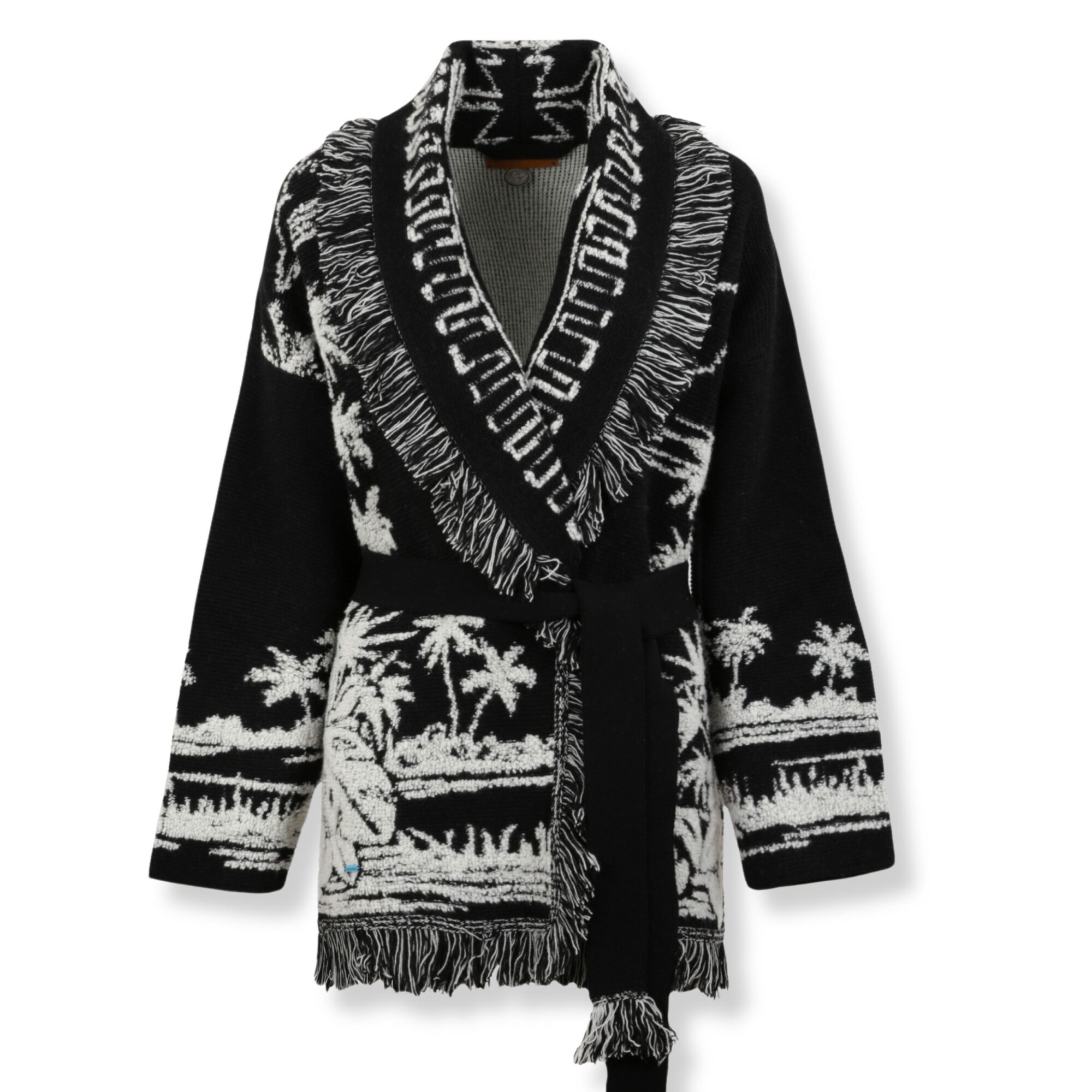Palm Grove Tales Cardigan Alanui. Collo a scialle, con orli a frange. Chiusura a vestaglia con cintura abbinata. Vestibilità oversize.