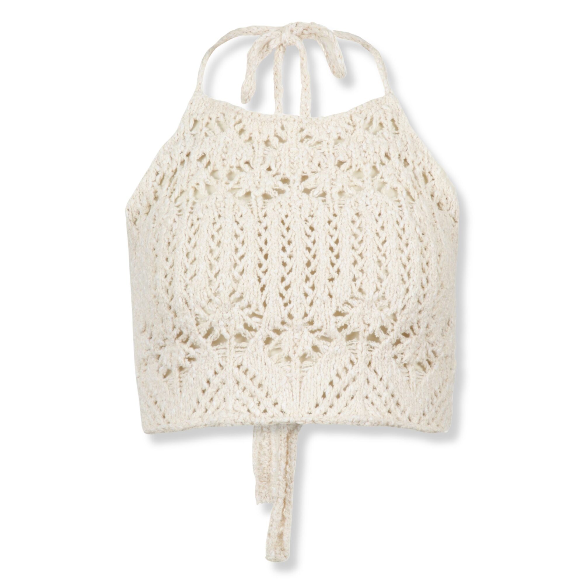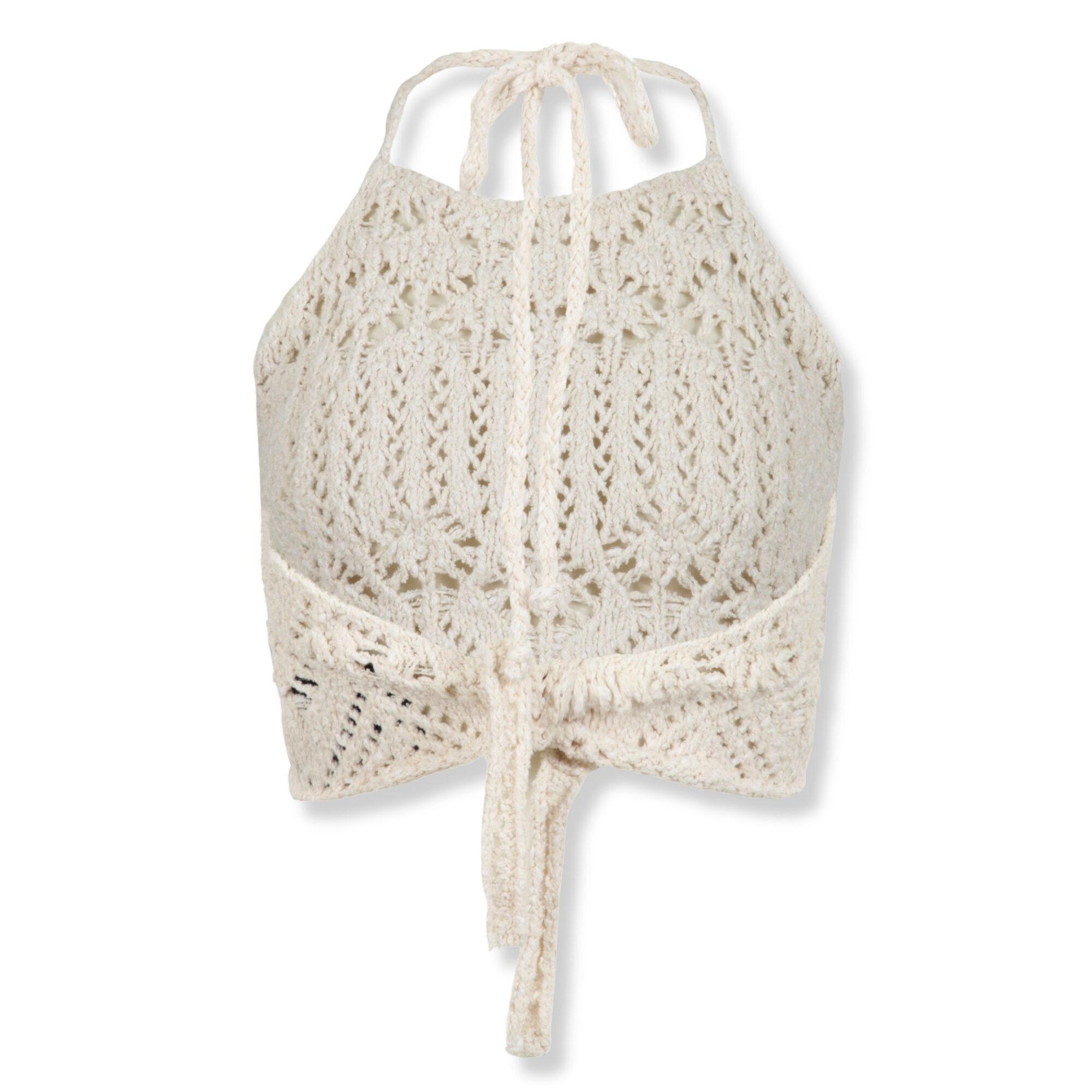 Lagoon Romance Top Alanui. Design con lavoro a maglia traforato su tutta la superficie e scollatura all’americana con chiusura a lacci sul retro.