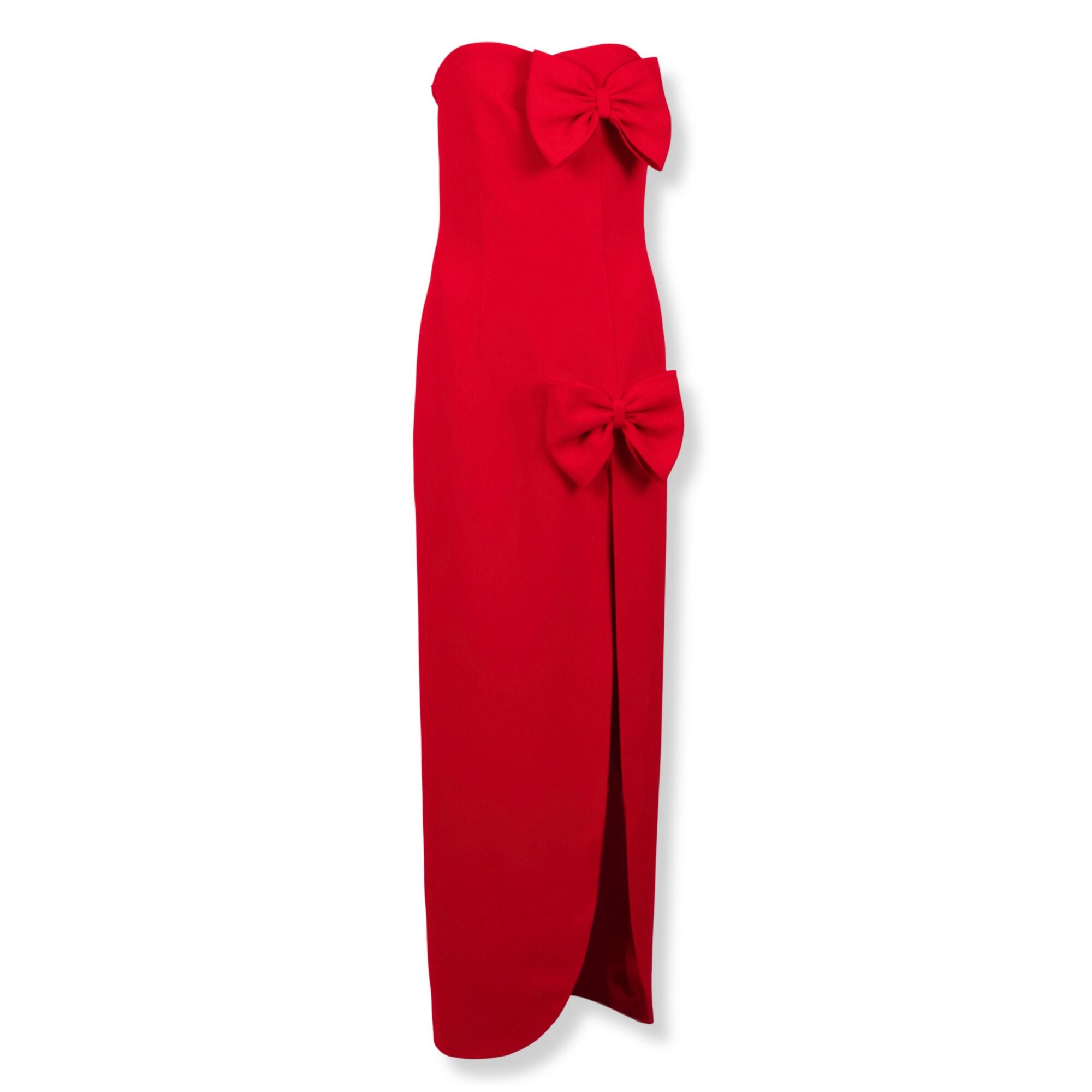 Abito Maxi Alessandra Rich. Silhouette aderente senza spalline, fiocchi laterali decorativi e gonna con spacco frontale.