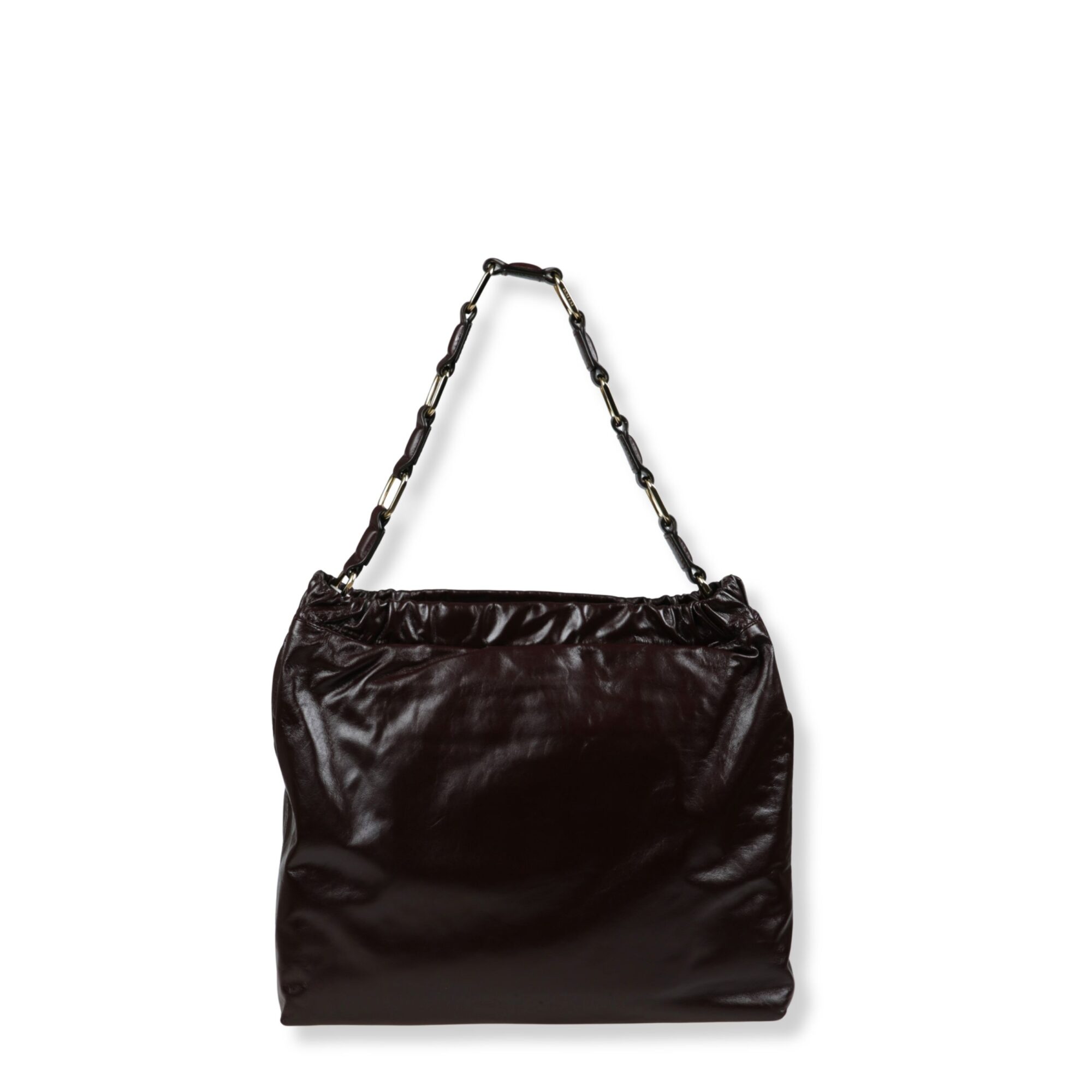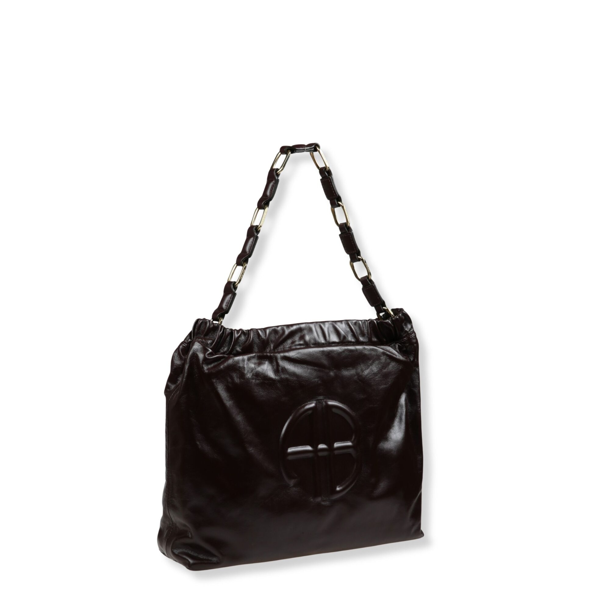 Kate Shoulder Bag Anine Bing. Desing con elastico superiore e manico a maglie intrecciate con catena metallica, monogramma del brand sul davanti.