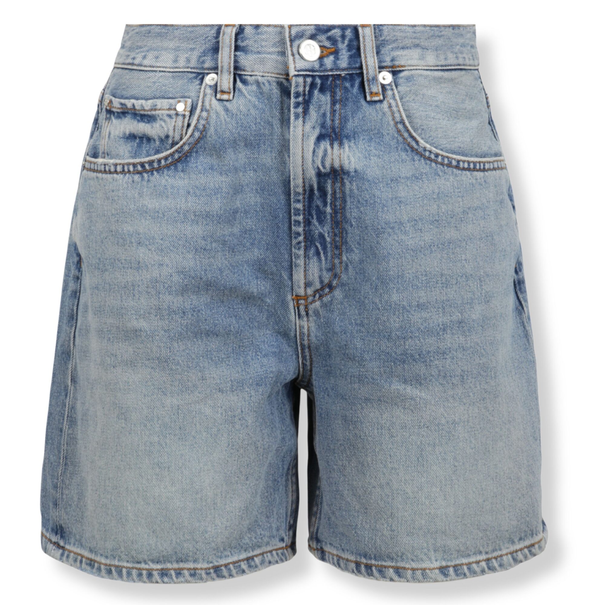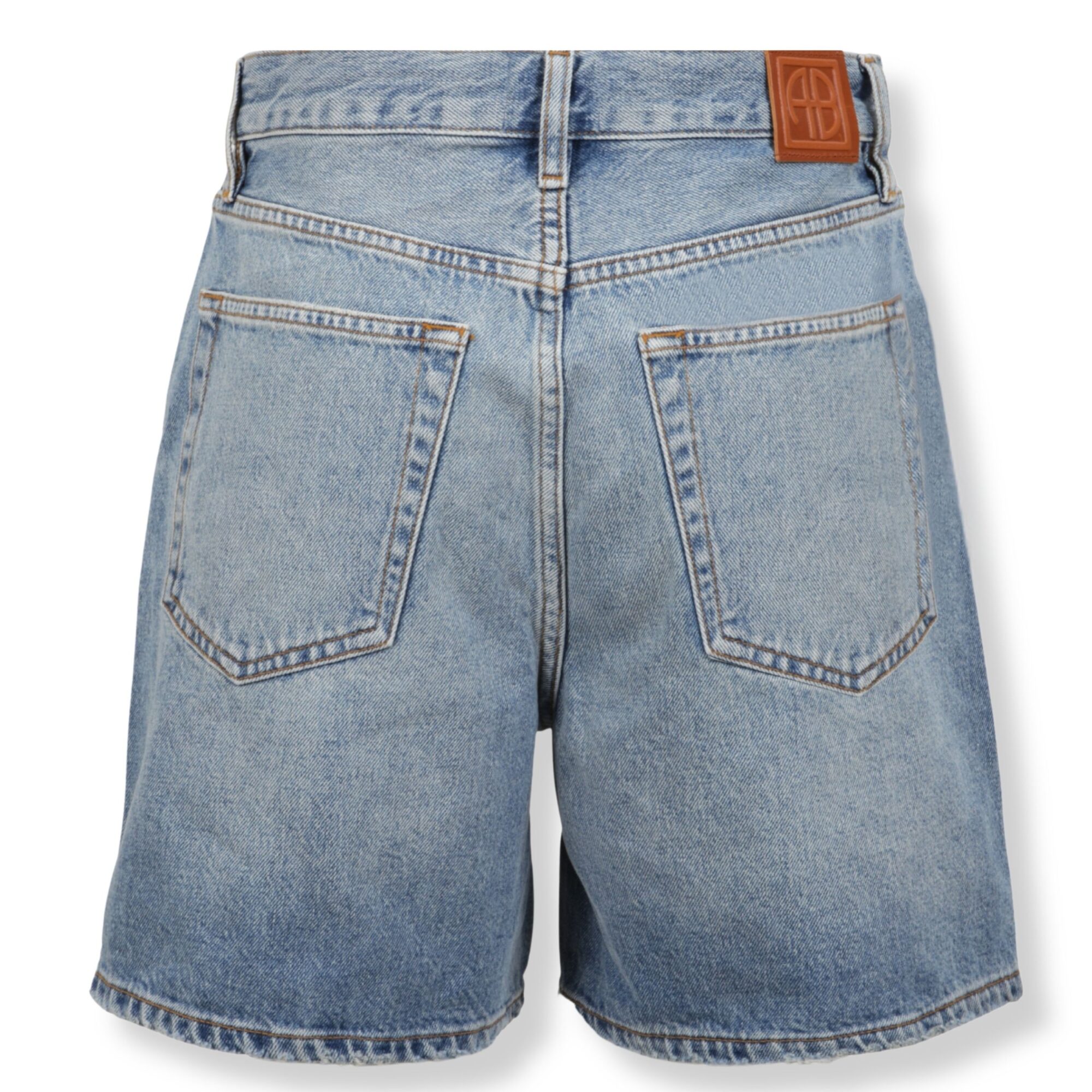 Shorts Anine Bing in denim. Design cinque tasche, vita alta e gamba dritta con chiusura a bottone e zip.