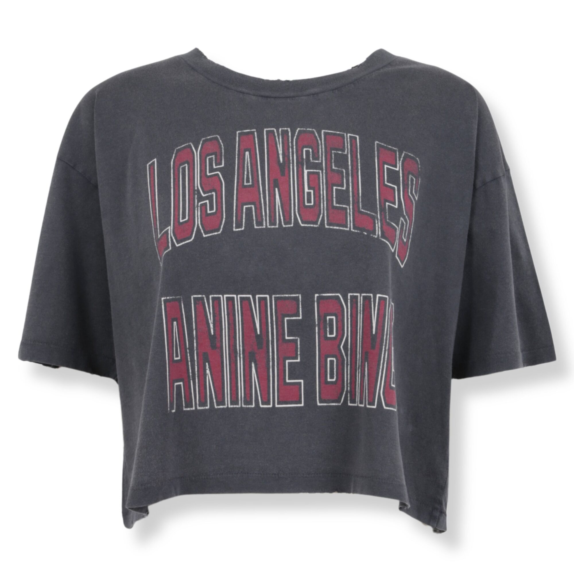 Johnny Cropped Tee Anine Bing. T-Shirt in jersey di cotone, vestibilità boxy e taglio corto con grafica con logo del brand sul davanti.