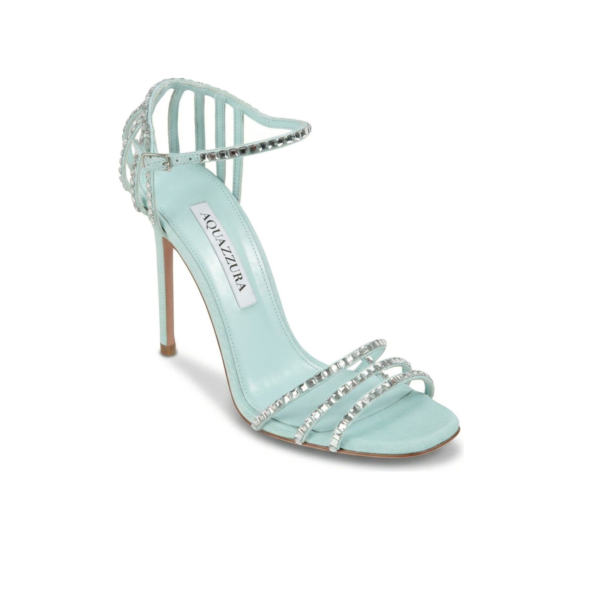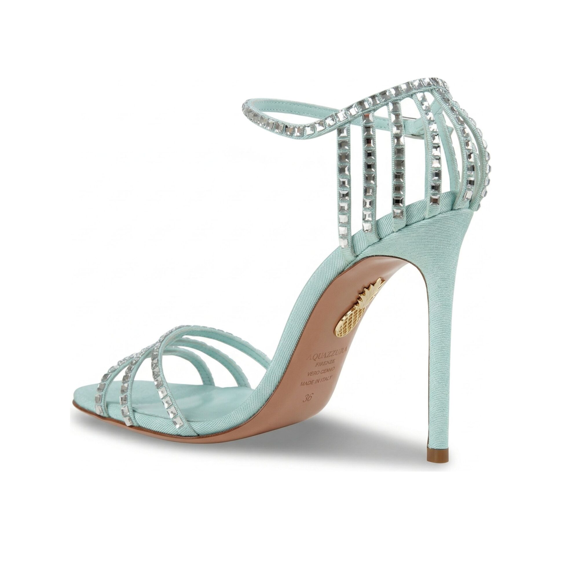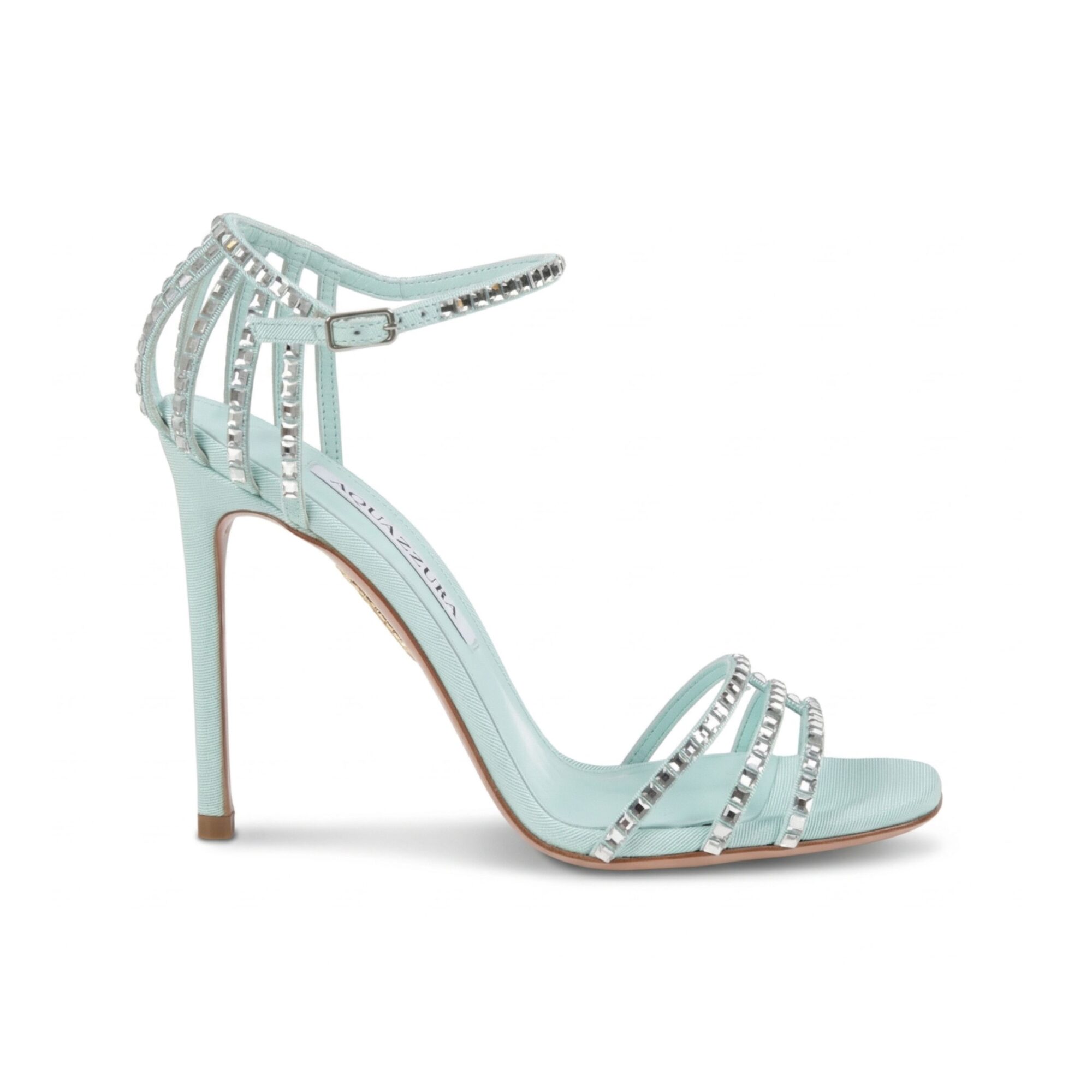 Sensation Crystal Sandal 105 Aquazzura. Tomaia in tessuto gros-grain, cristalli applicati, cinturino alla caviglia.