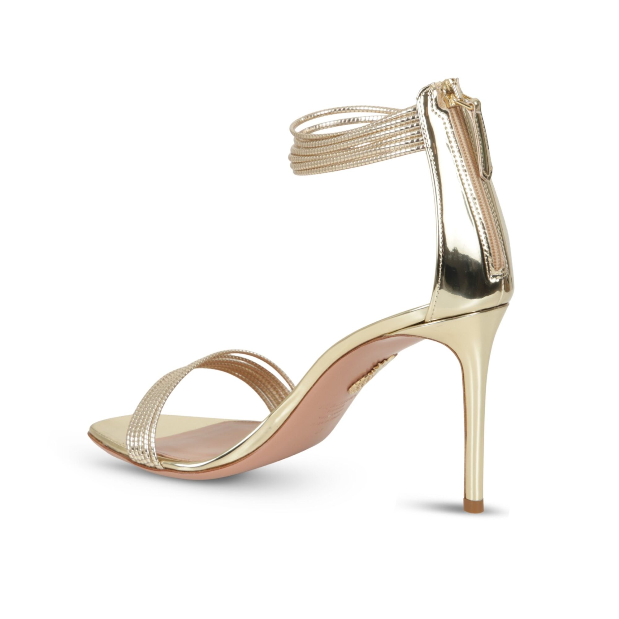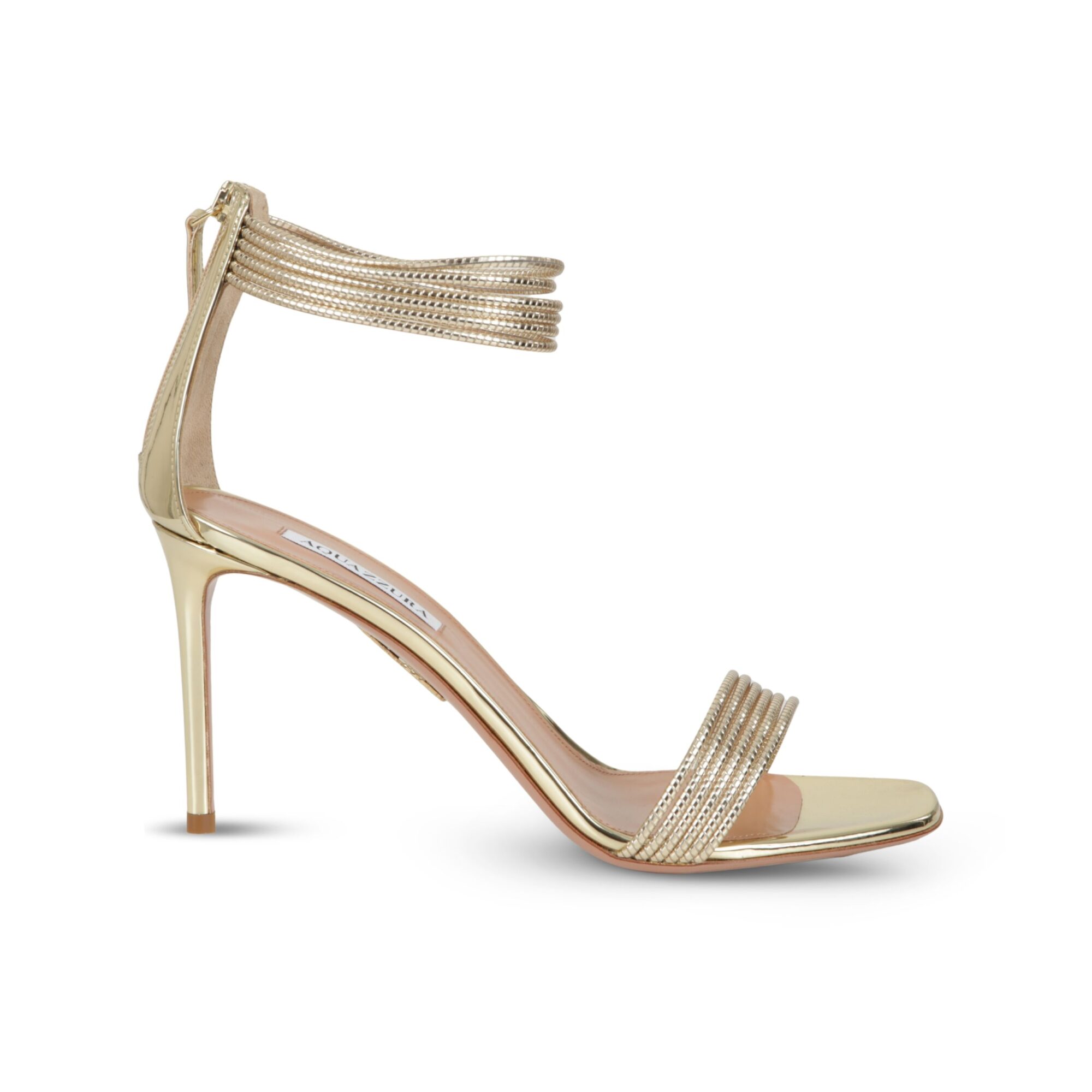 Sandali Aquazzurra. Design con cinturino alla caviglia e fascia anteriore, tacco a stiletto e pianta sottile.