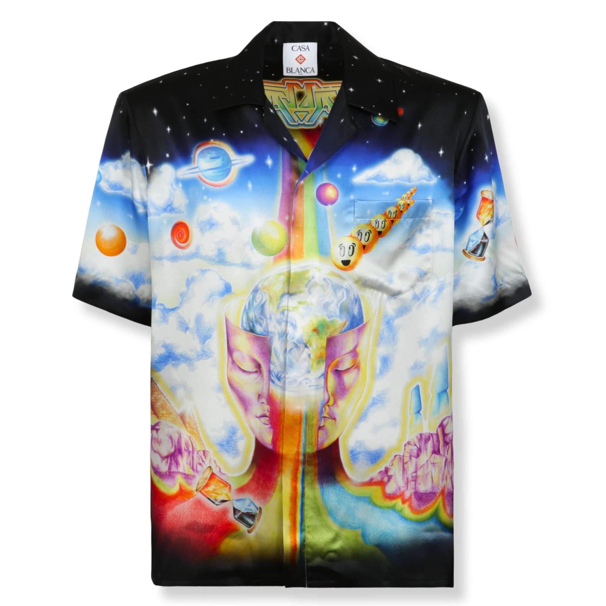 The Essential Experience Shirt Casablanca. Stampa su tutto il corpo e taschino sul petto, colletto cubano e abbottonatura coperta.