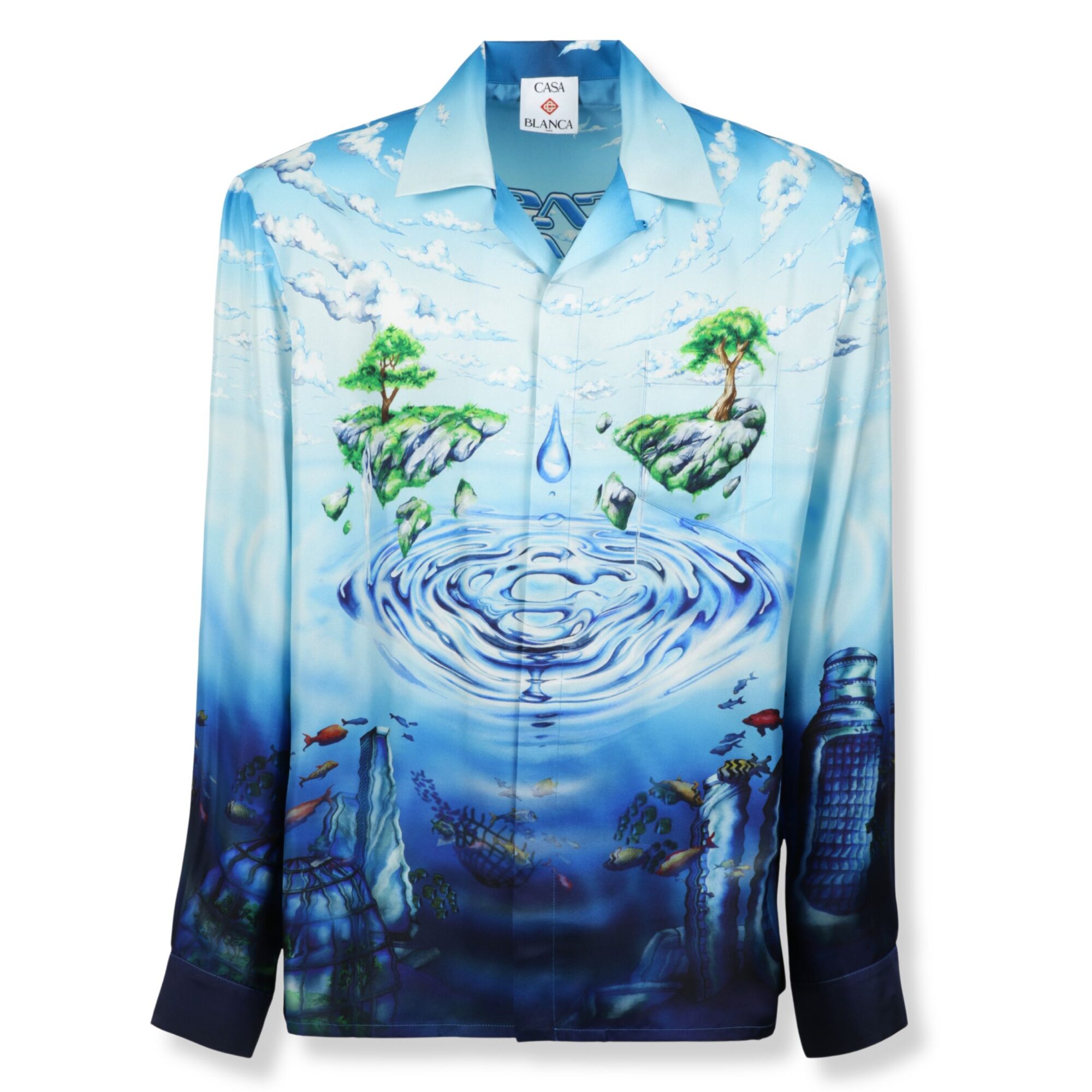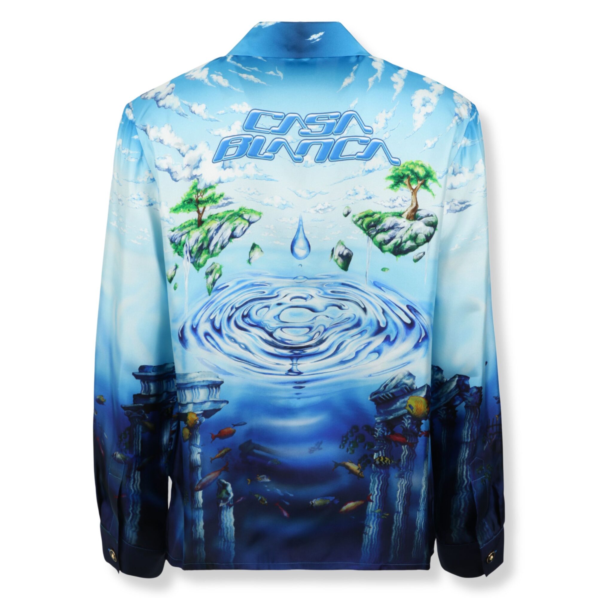 Lost Atlantis Long Sleeve Silk Shirt Casablanca. Design in twill di seta con stampa su tutto il corpo e taschino sul petto, colletto cubano e abbottonatura coperta.