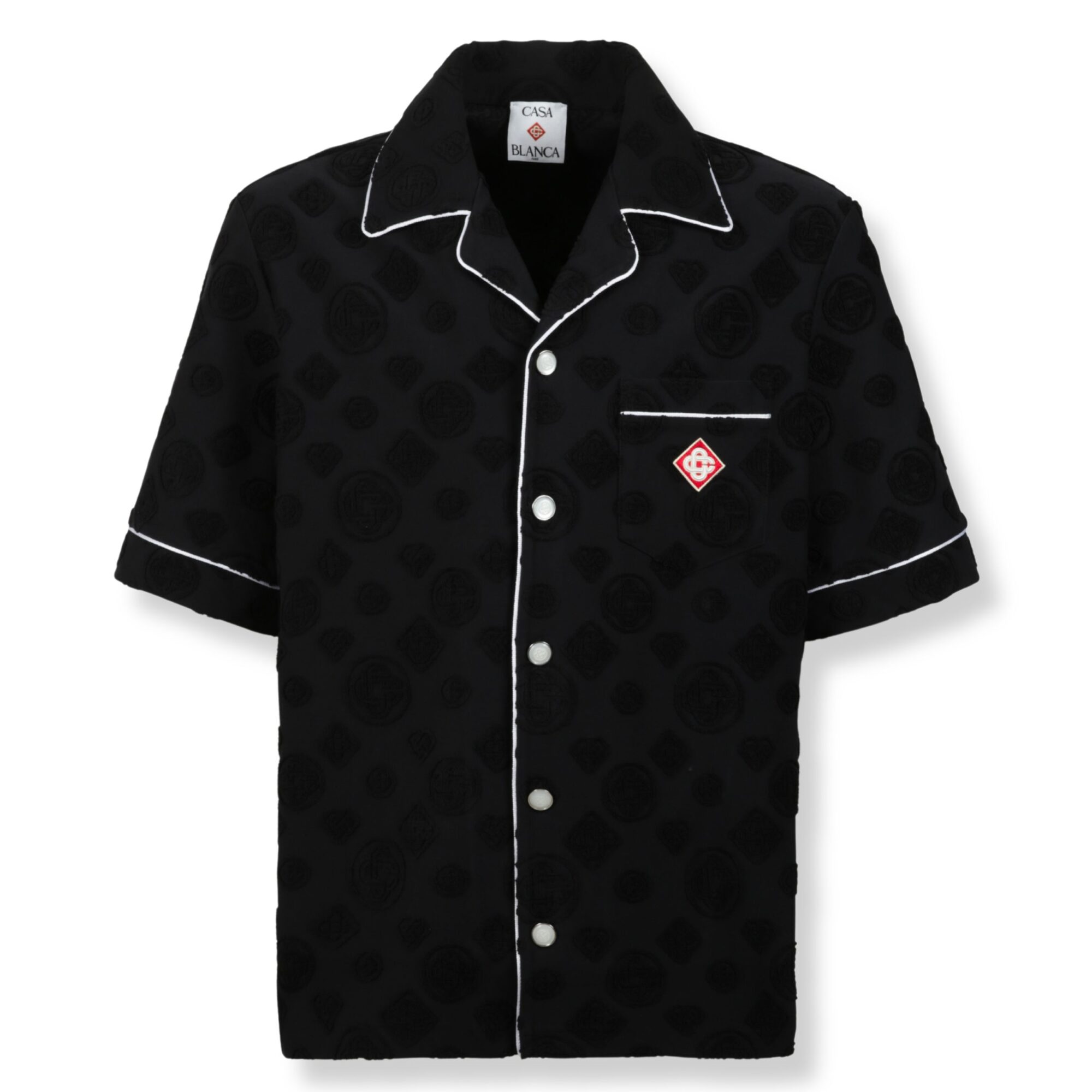 Monogram Short Sleeve Shirt Casablanca. Stampa con diamond monogram distintivo del brand su tutto il corpo e profili rifiniti con bordino a contrasto, taschino sul petto e colletto cubano.