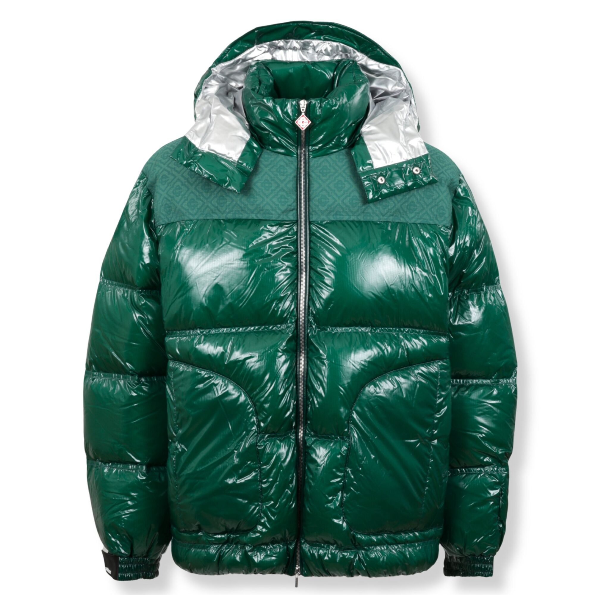 Nylon Puffer Jacket Casablanca. Piumino imbottito, con finitura lucida ed effetto trapuntato. Retro del cappuccio a motivo monogram, con logo del brand.