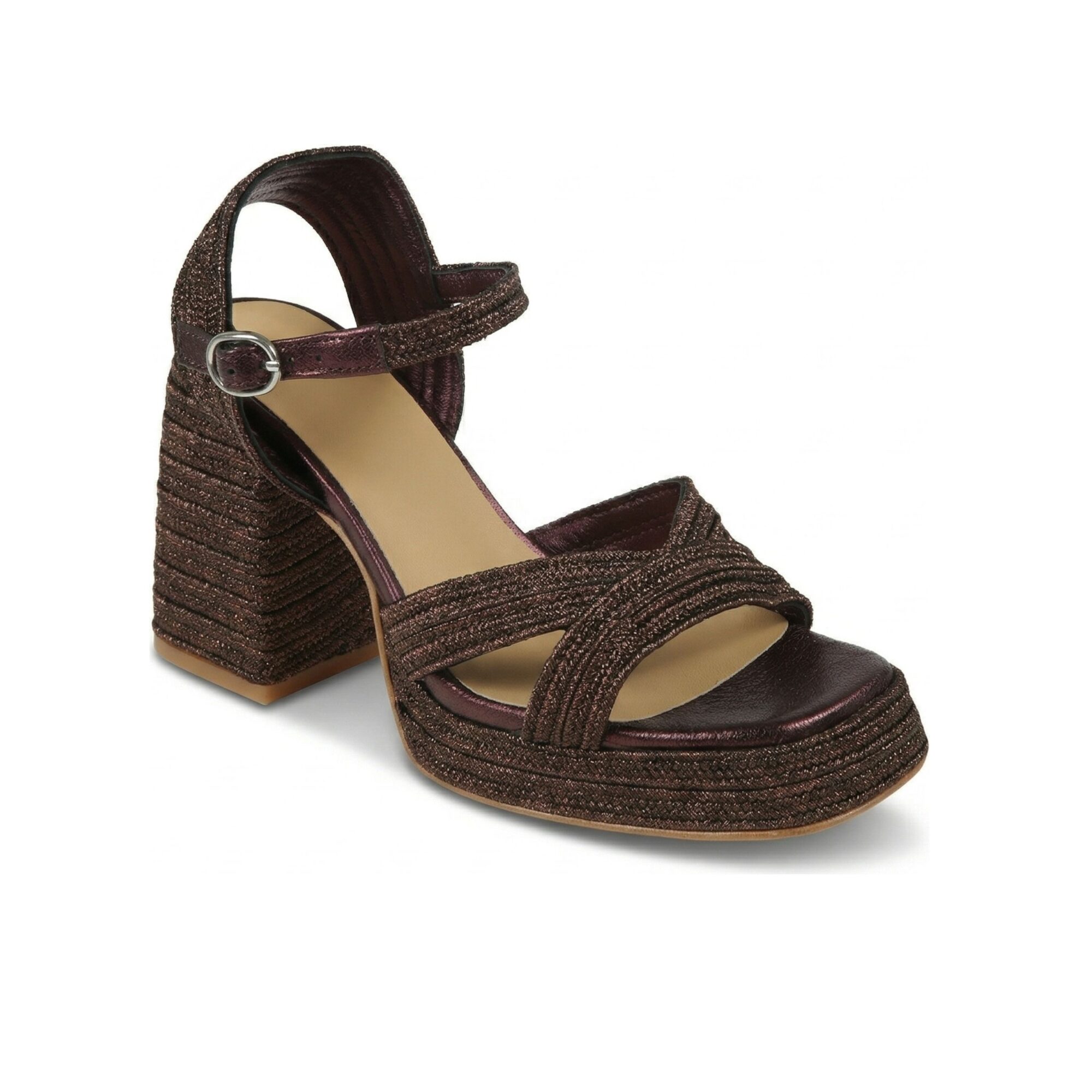 Sandali Valle Castaner. Tomaia con intreccio metallizzato fatto a mano, chiusura a bracciale, soletta ammortizzata.