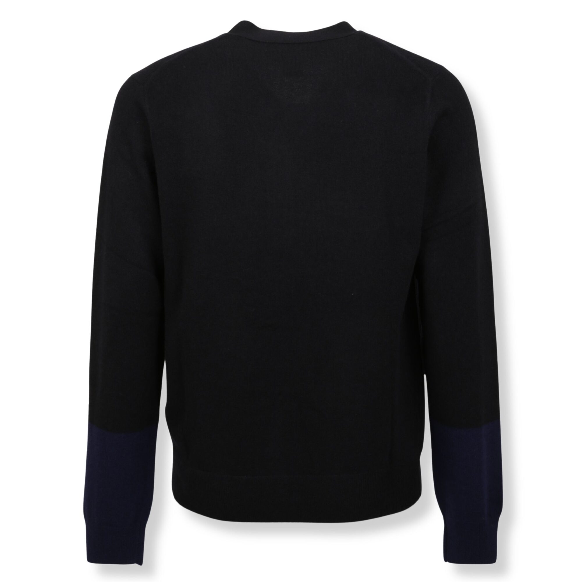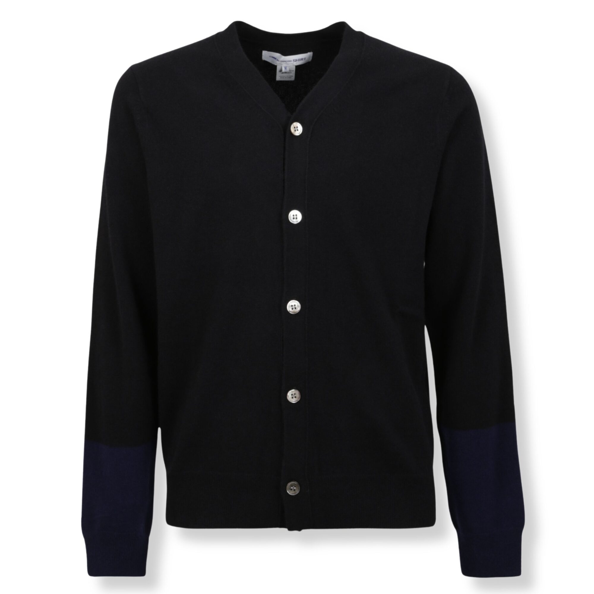Cardigan Bicolor Comme des Garçons Forever. Design classico con vestibilità slim, scollo a V e chiusura frontale con bottoni.
