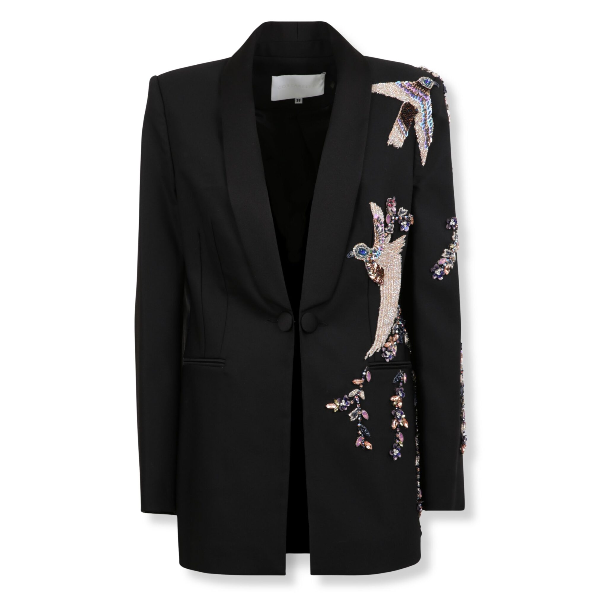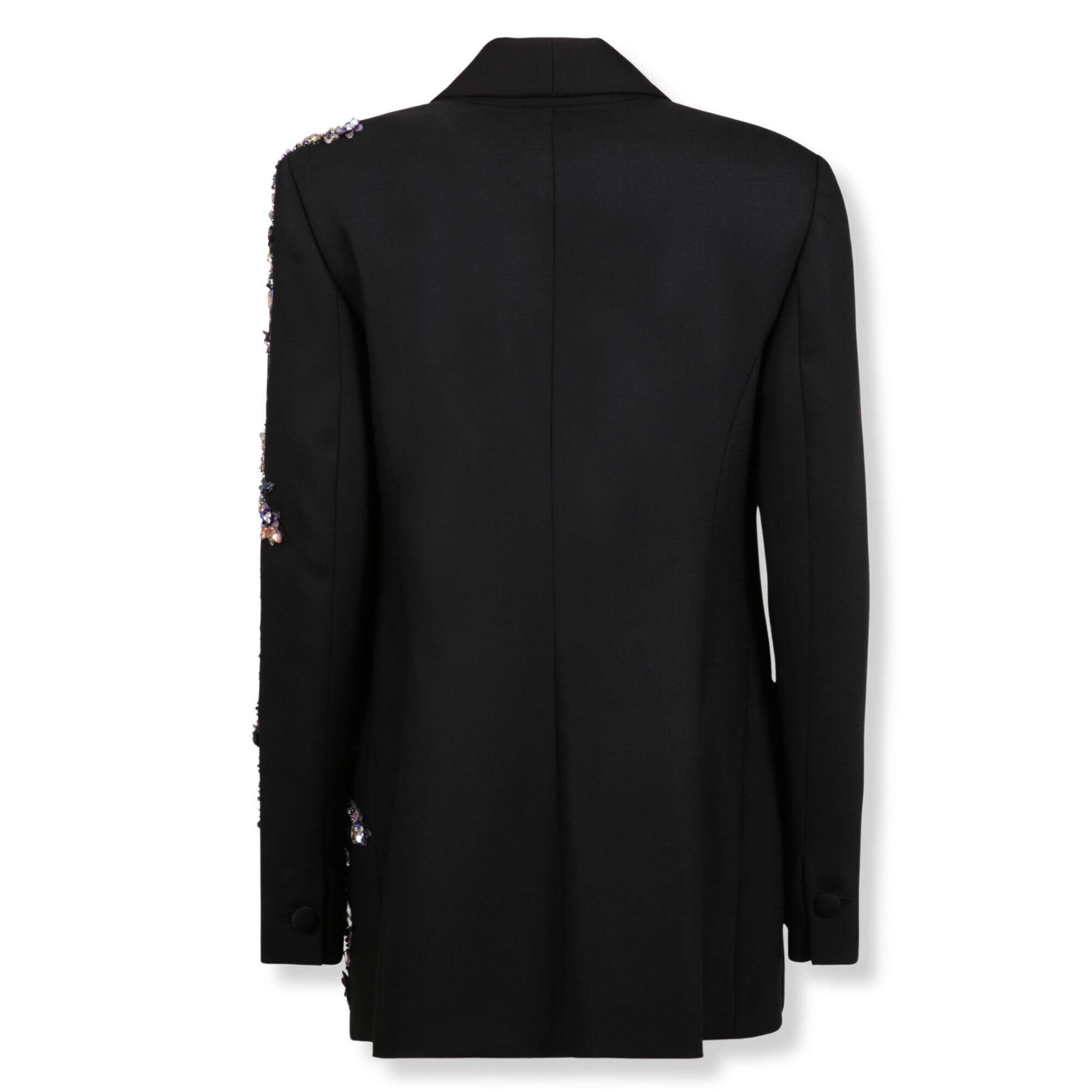 Embellished Wool Blazer Costarellos. Taglio classico, con due bottoni frontali e tasche a filetto sul davanti. Ornato da applique con perline sul lato sinistro.