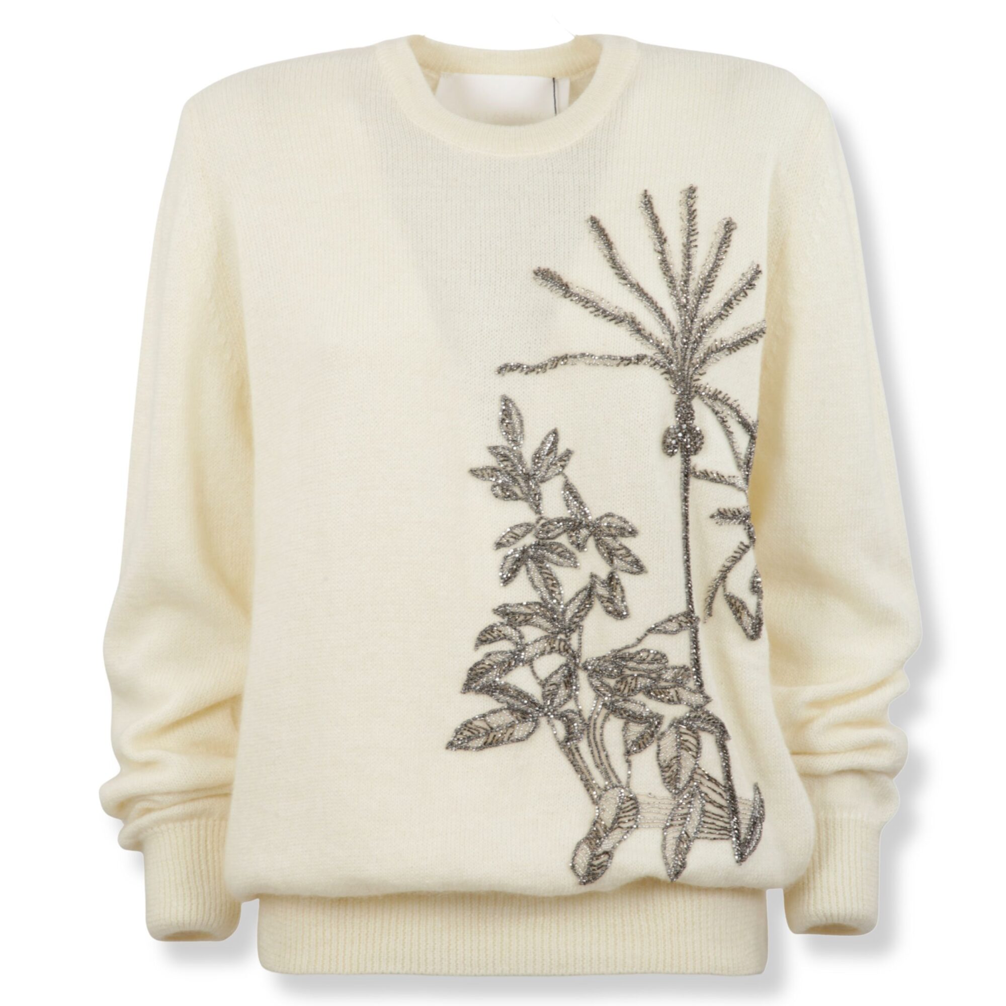 Noemie Costarellos. Girocollo, impreziosito da un motivo ricamato, decorato con perline applicate. Vestibilità regolare con orli e polsini a costine.