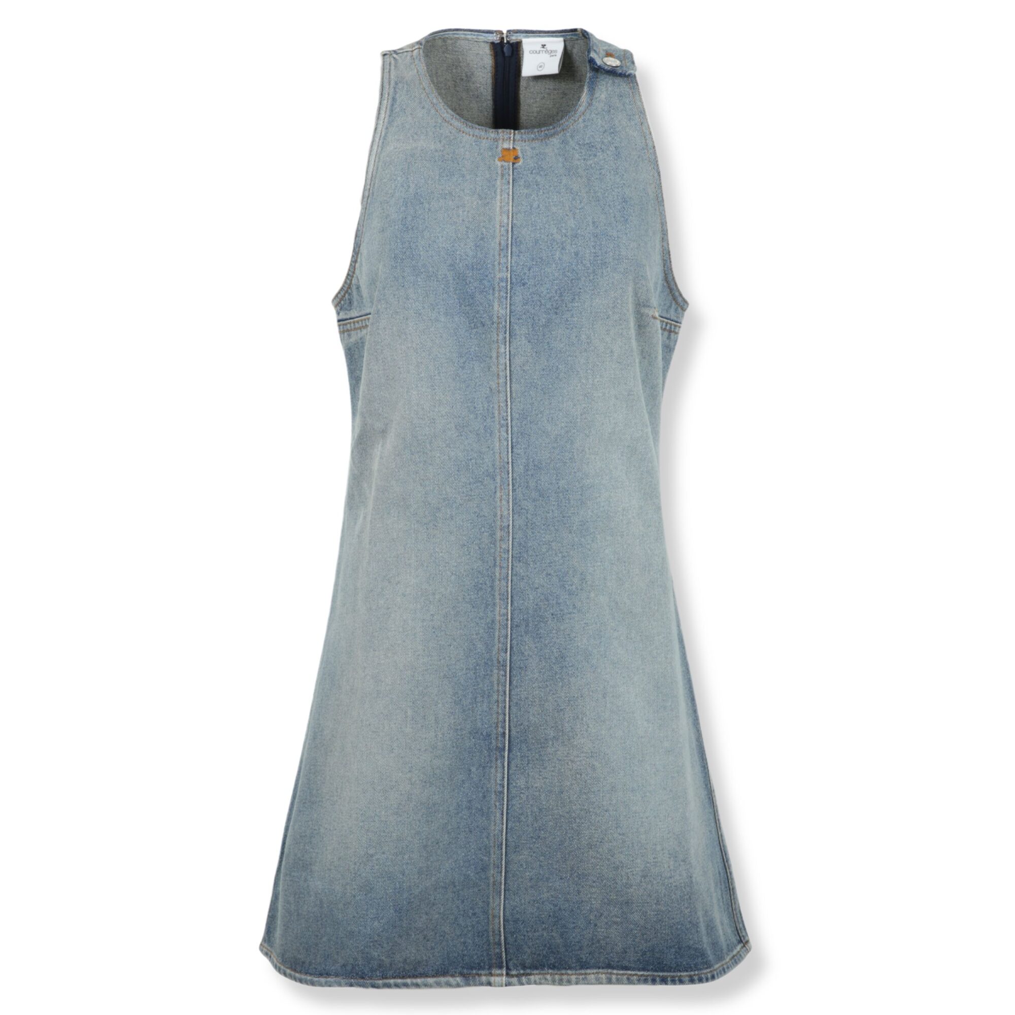 Heritage Sleeveless Denim Dress Courrèges. Scollo rotondo, dettaglio bottone sulla spalla, gonna svasata con orlo dritto.
