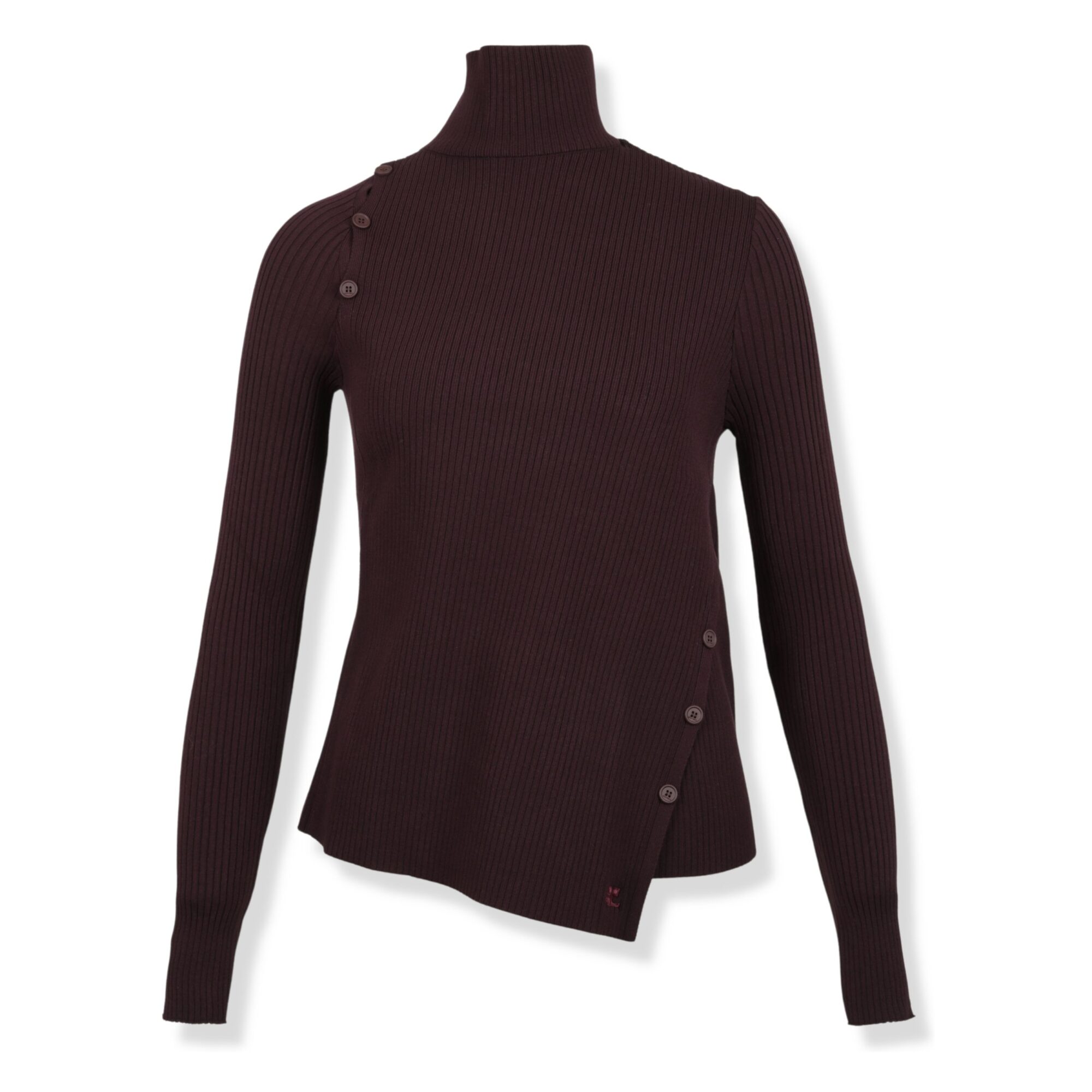 Oblique Buttoned Sweater Courrèges. Lavorazione in maglia a costine con collo alto e aperture con bottoni sulle spalle.