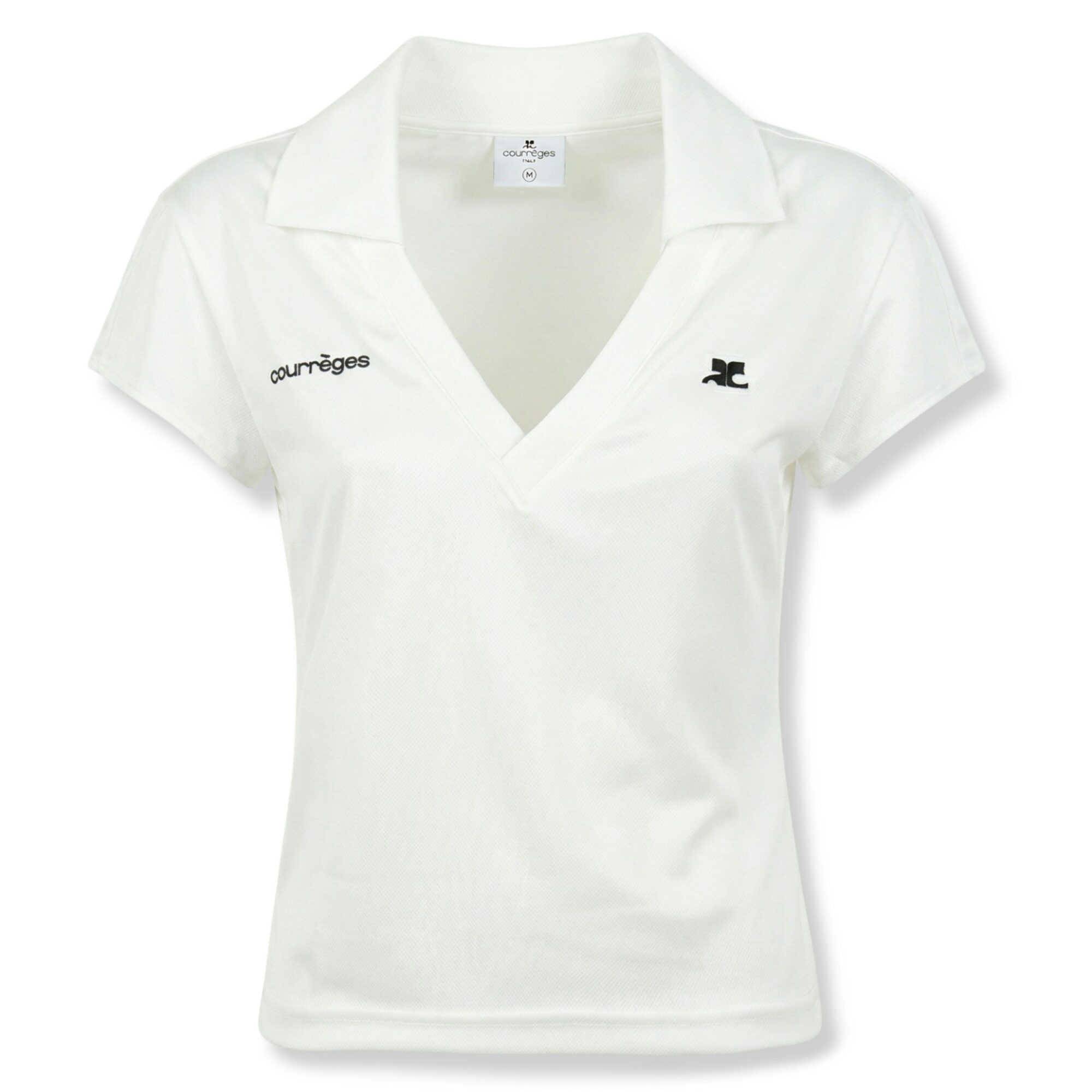 Sports Cropped Polo Courrèges. Colletto con scollo a V, logo del brand sul petto, taglio crop.