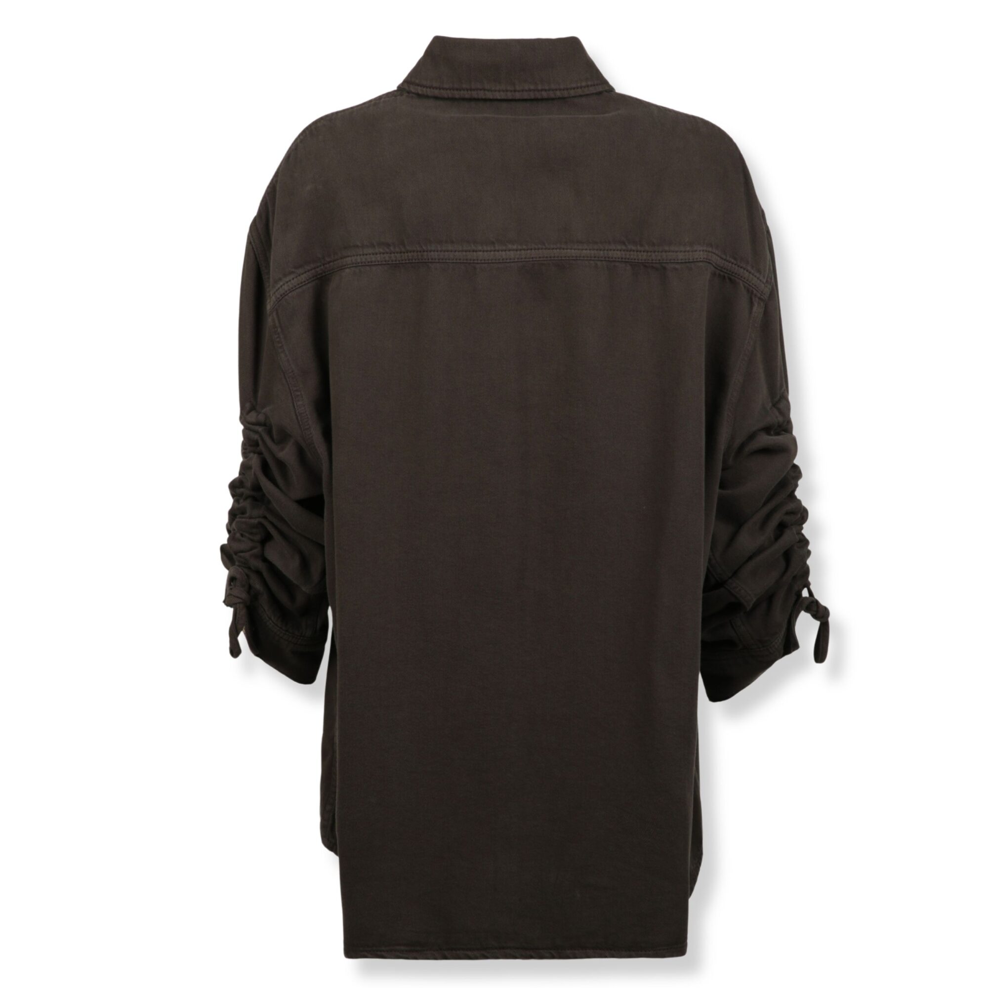 Keanu Tencel Denim Rouche Shirt Darkpark. Design in denim leggero, vestibilità ampia e collo classico, con maniche a lunghezza regolabile.