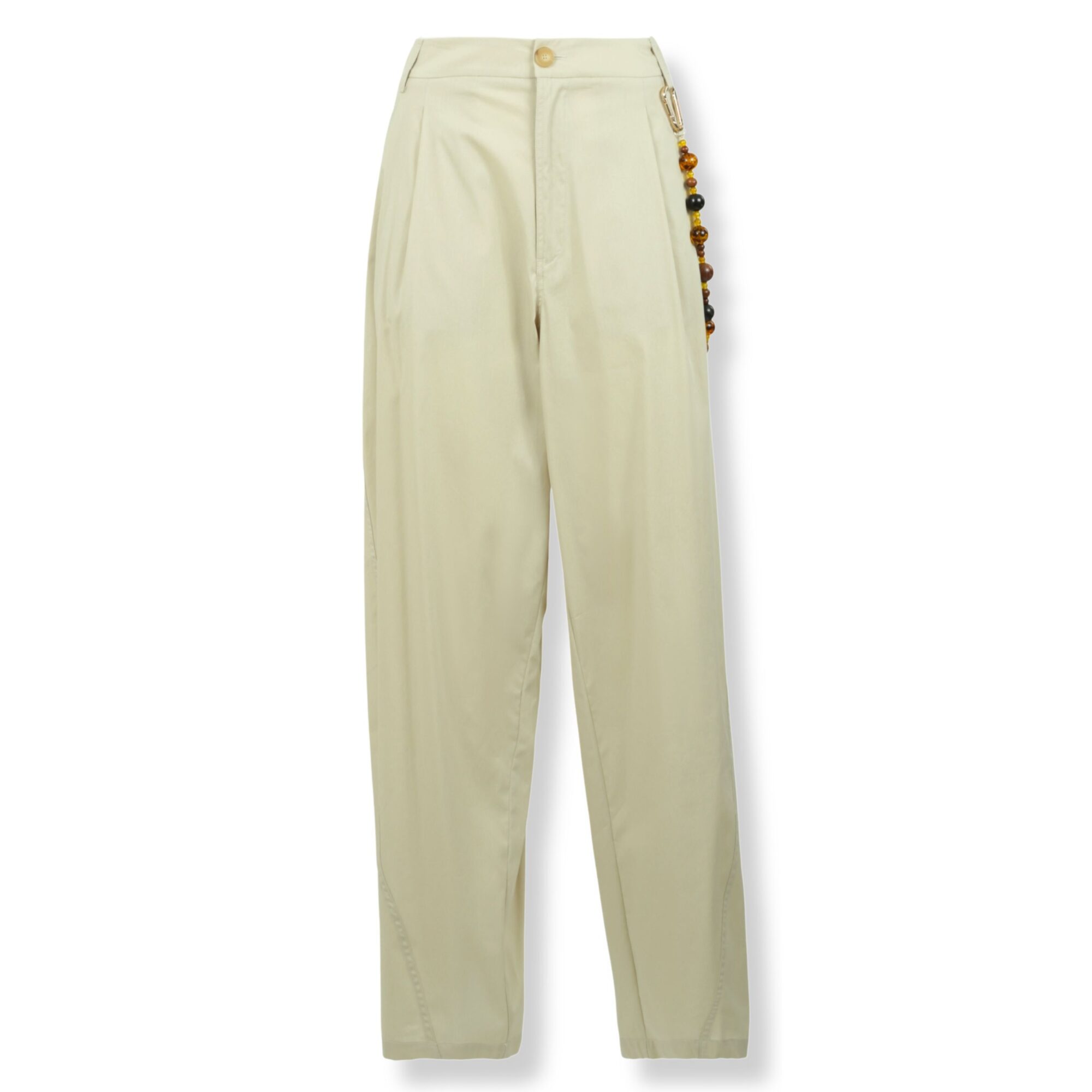 Phebe Beaded Trousers Darkpark. Linea fluida, pince in vita e gamba larga con dettaglio ciondolo con perline sulla tasca destra.