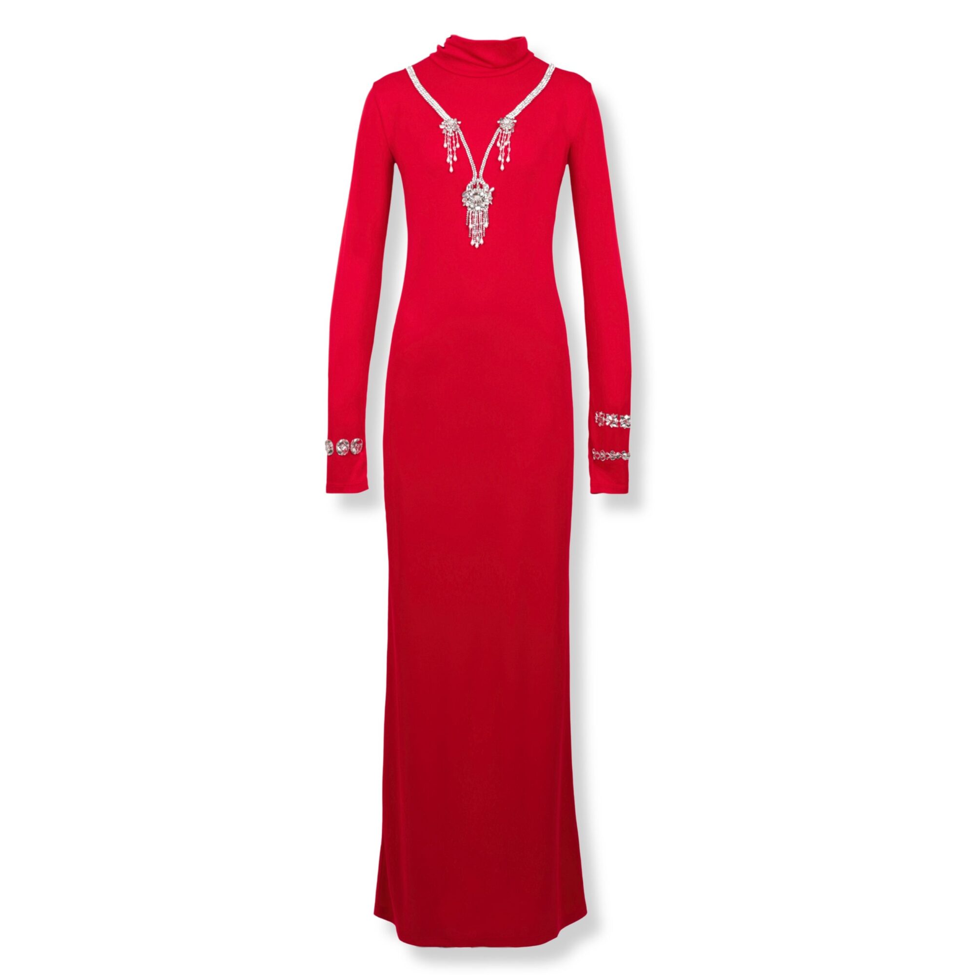 Abito lungo Des Phemmes. Design con vestibilità aderente e cut-out sulla schiena. Impreziosito con finiture in cristalli su collo e polsini.