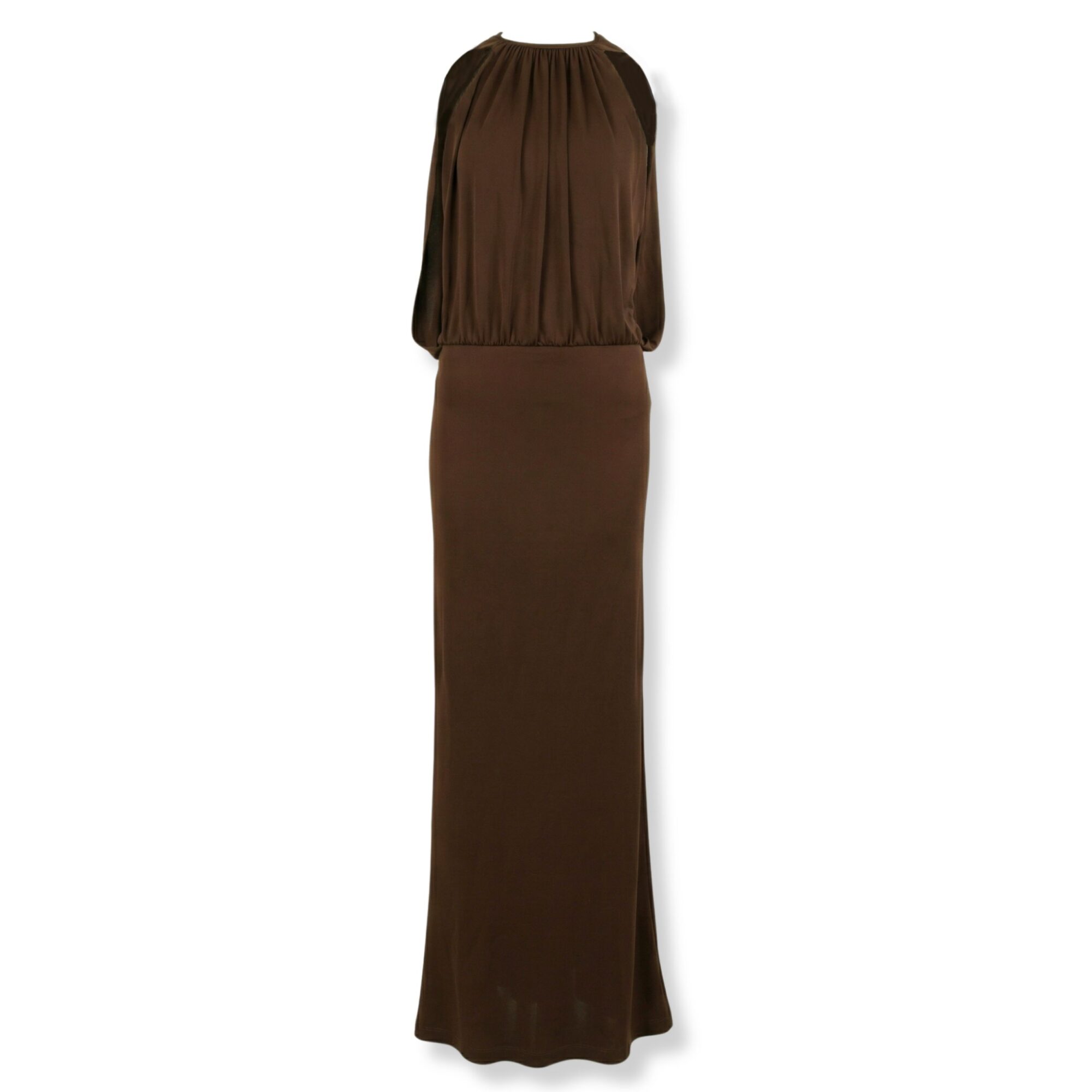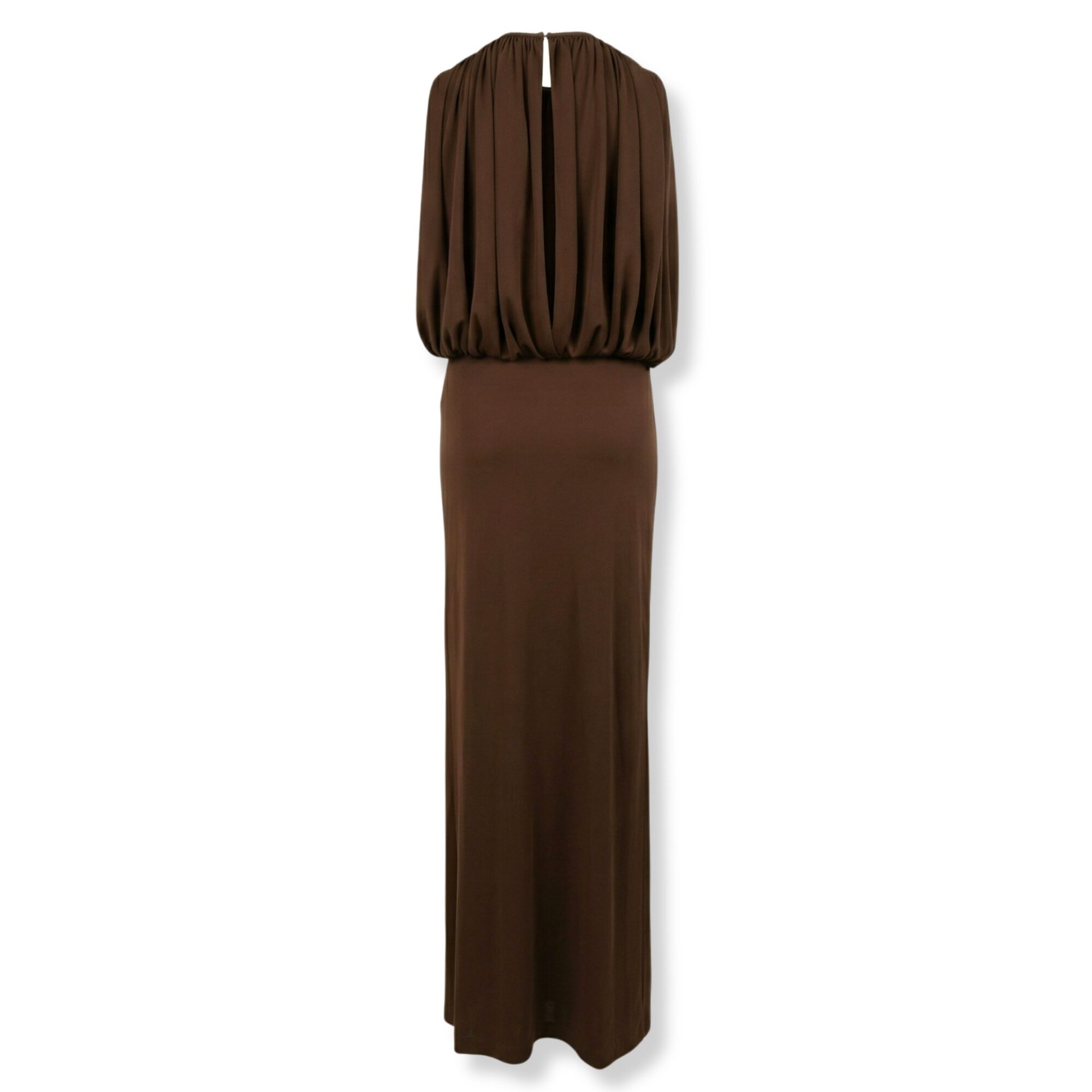 Abito Des Phemmes. Design in tessuto fluido con dettaglio mantella, corpetto morbido, gonna lunga dal taglio dritto.