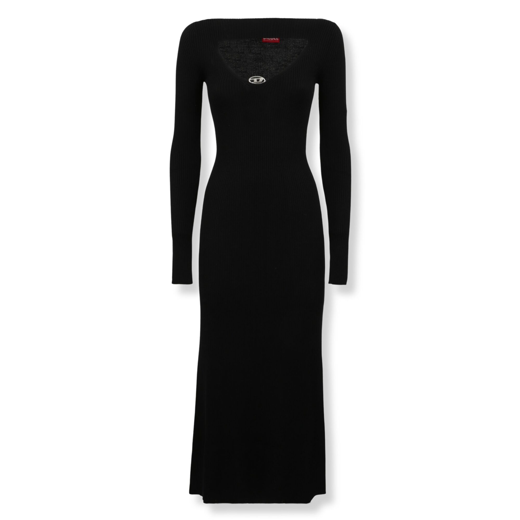 M-Oloni Diesel. Abito lungo, con maniche lunghe e vestibilità aderente. Ampio scollo frontale decorato con logo Oval D del brand in metallo. Gonna lunga con orlo dritto.