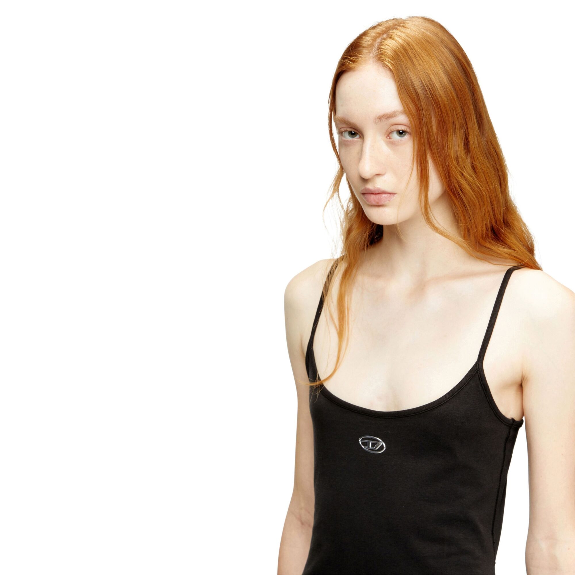 D-Newhop-Od Diesel. Design in jersey di cotone elasticizzato, scollo rotondo con spalline sottili, dettaglio logo Oval D frontale, silhouette svasata.