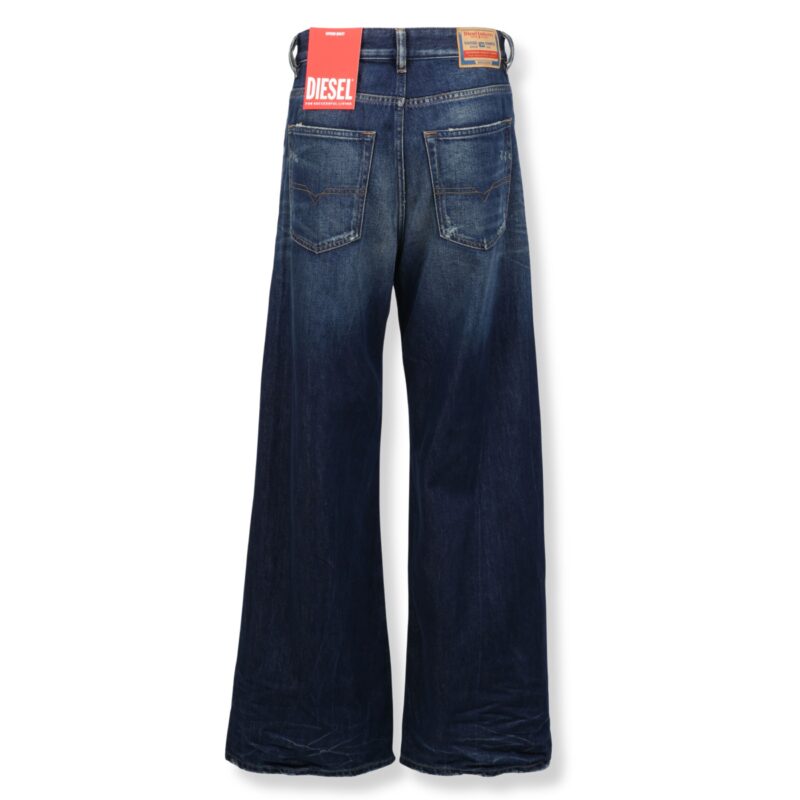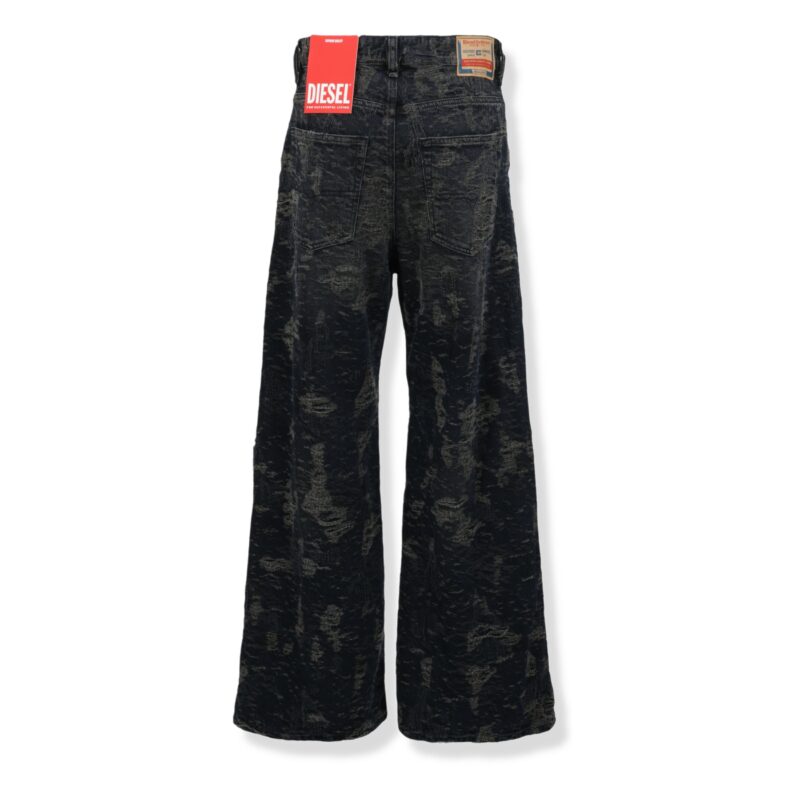 1DR Shoulder Bag Diesel. Modello in denim nero effetto lavato. Patta frontale decorata da logo Oval D del brand in metallo opaco.