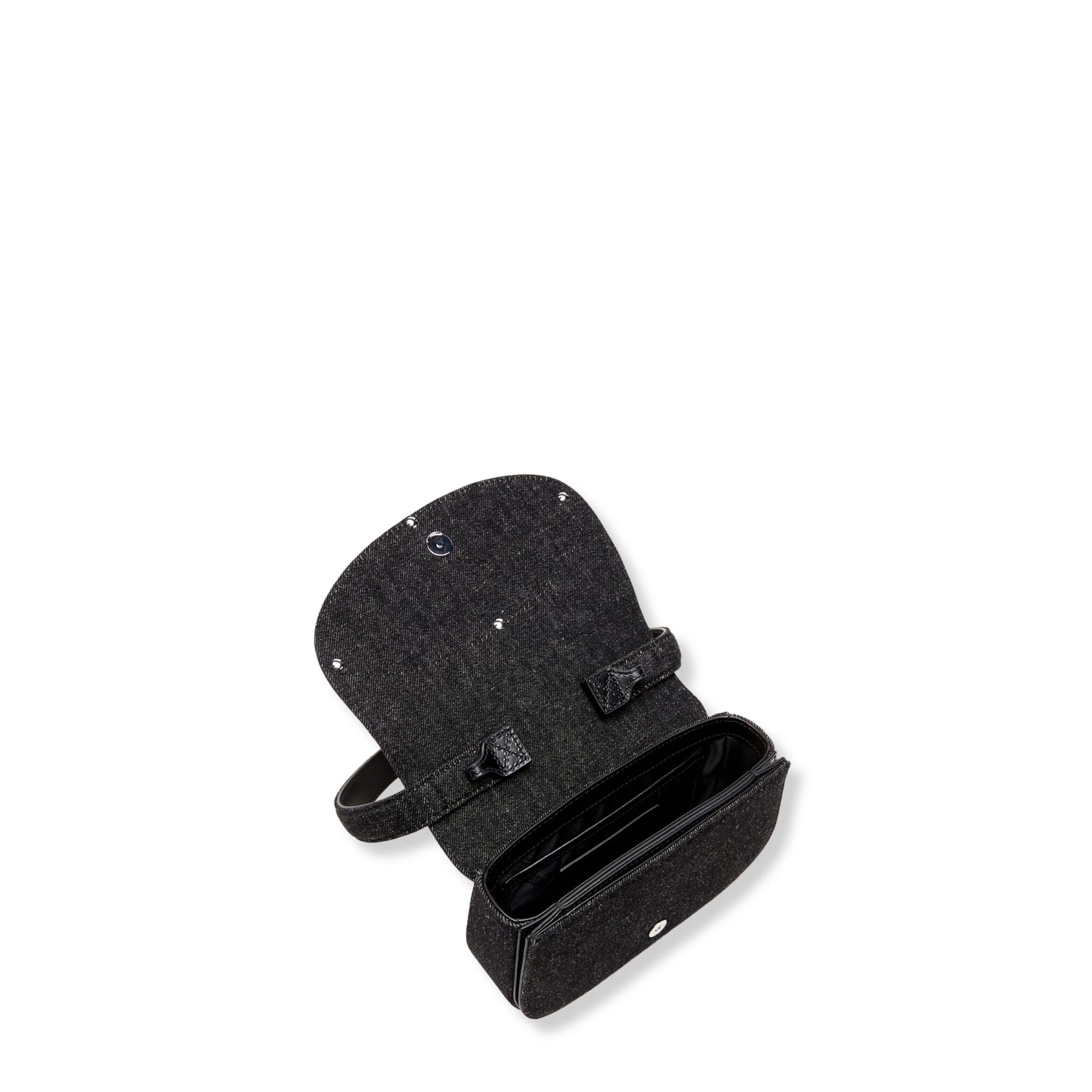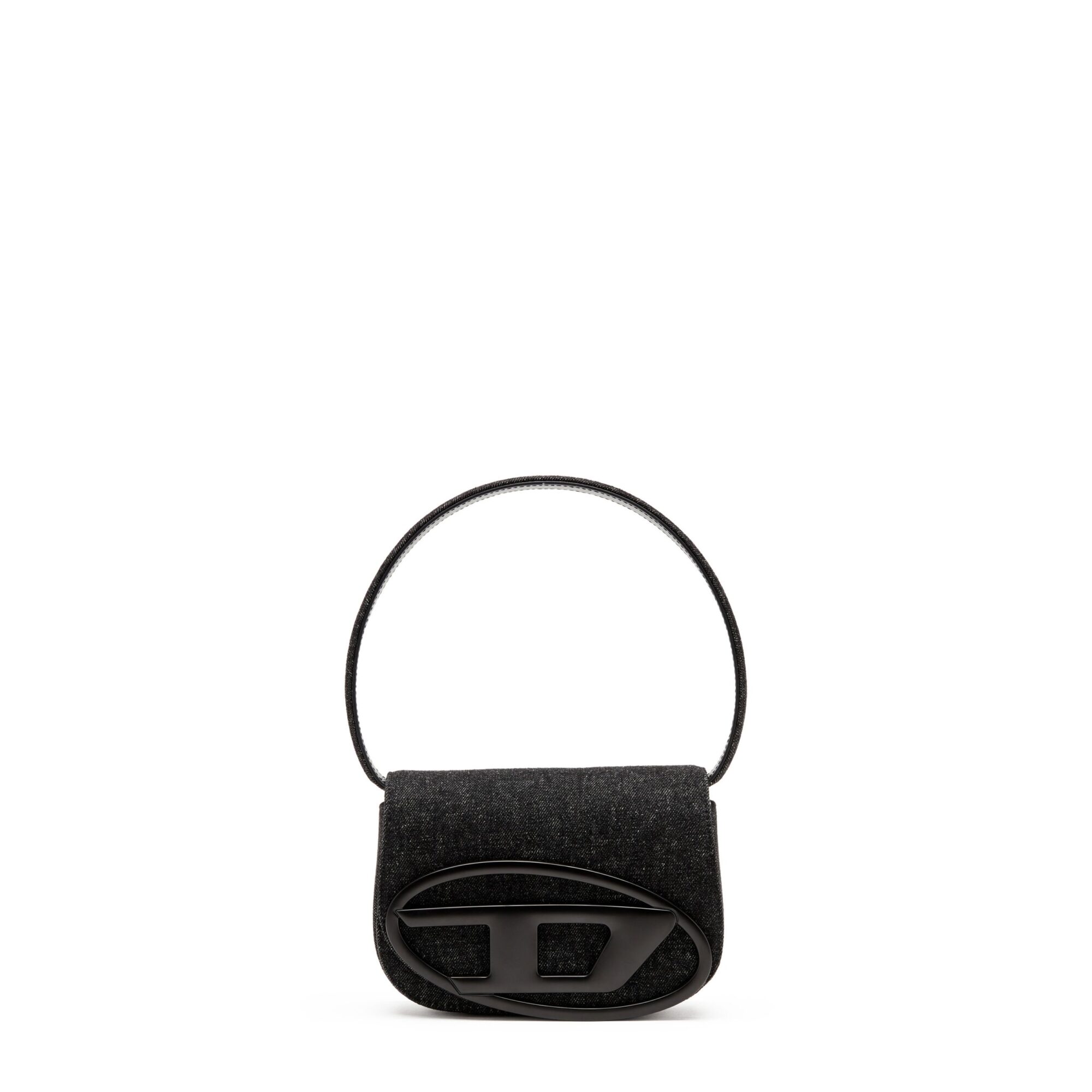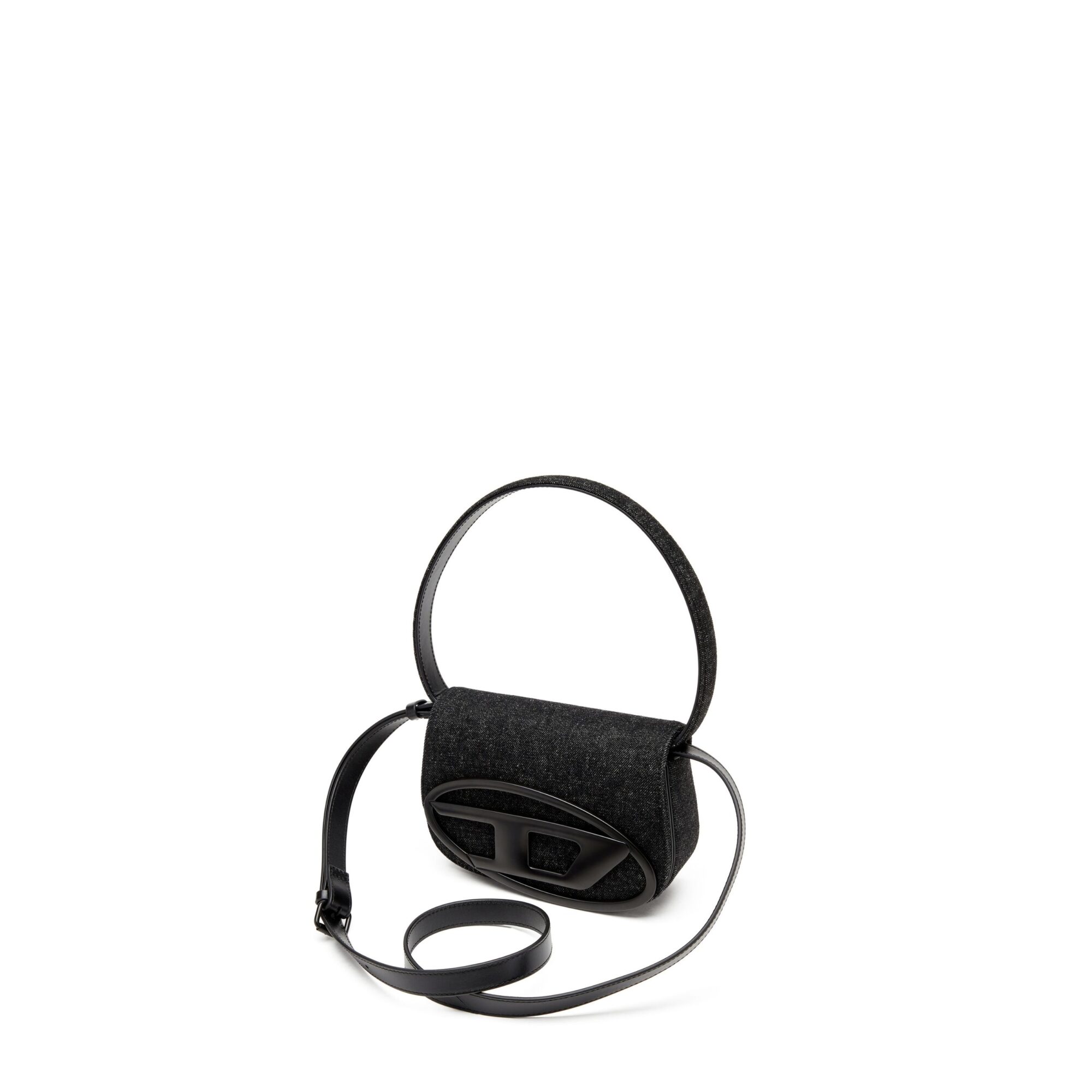 1Dr Diesel. Modello in denim, chiusura con patta ed iconico logo Oval D sul davanti. Dotata di manico superiore e tracolla coordinata, interno con tasca piatta.