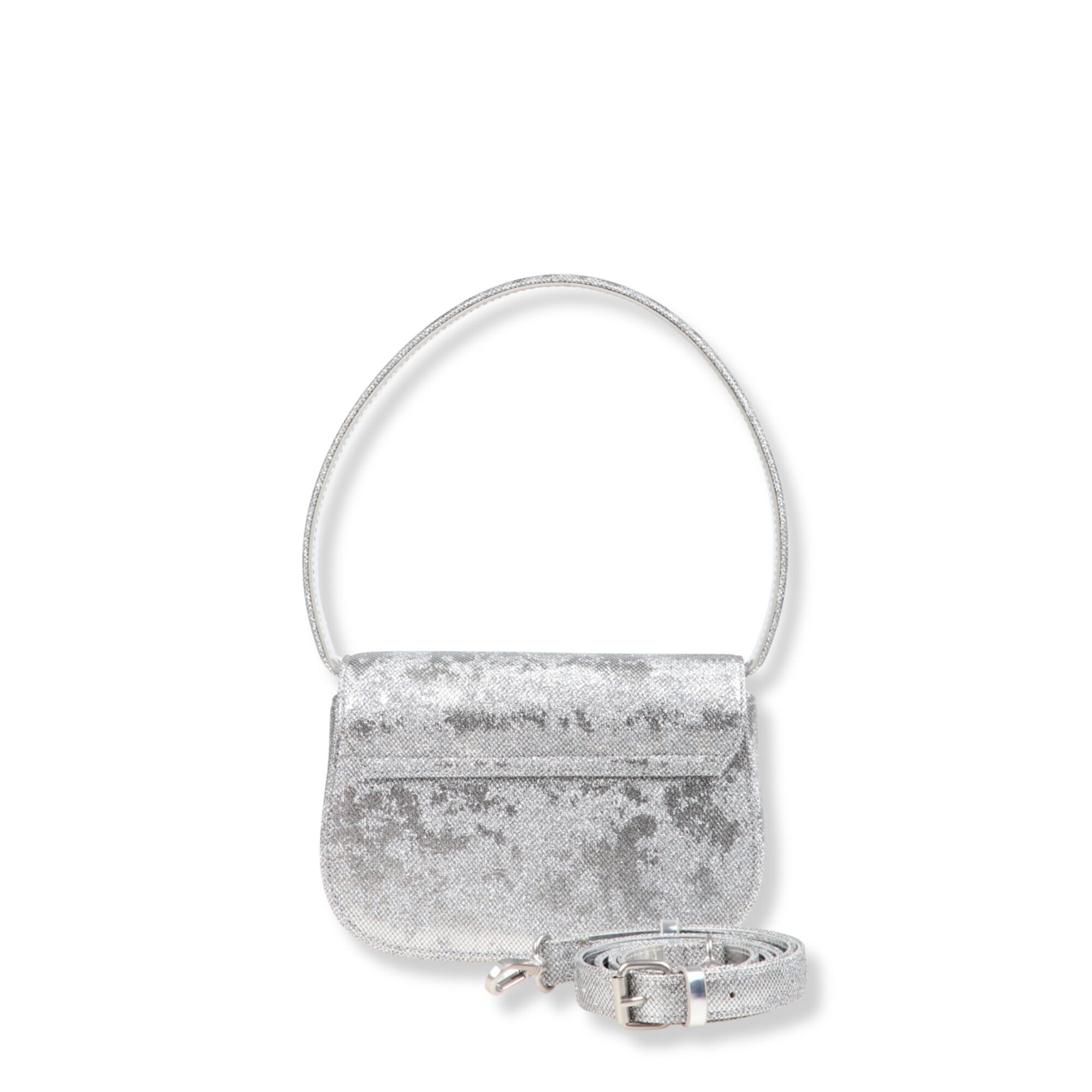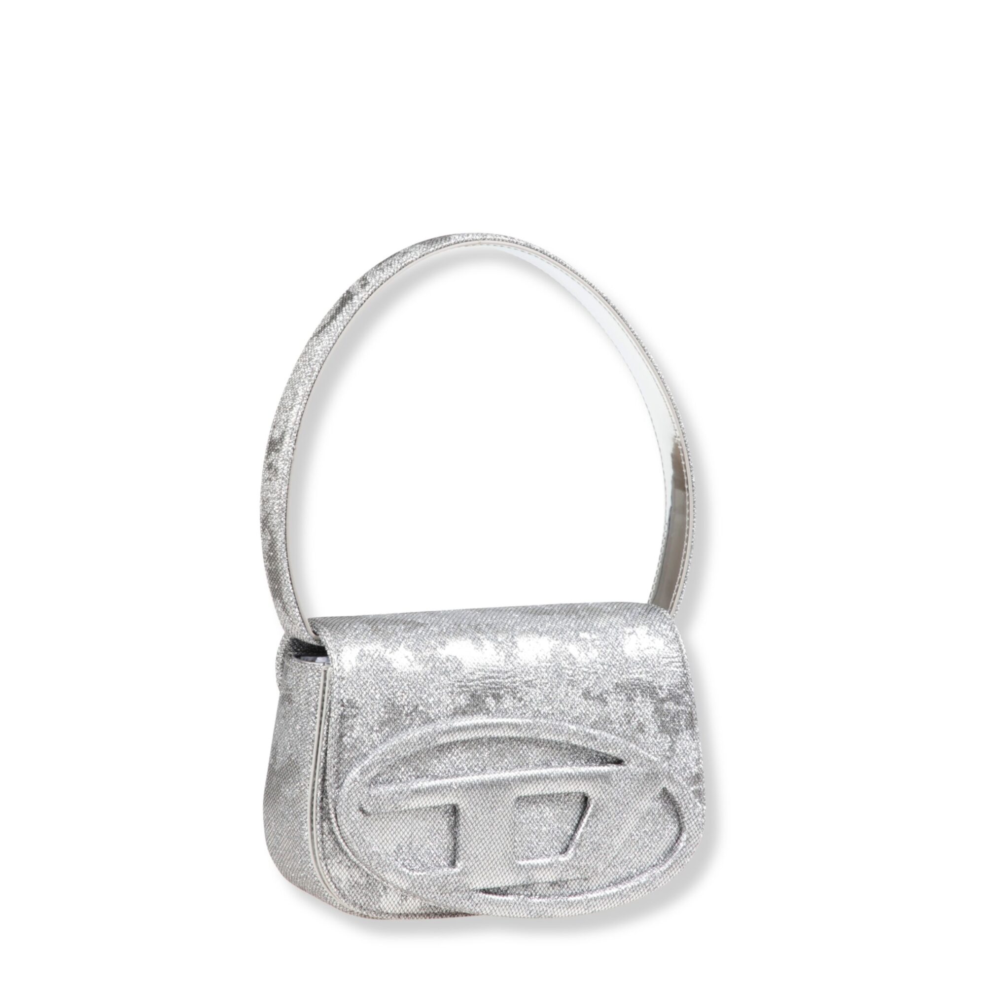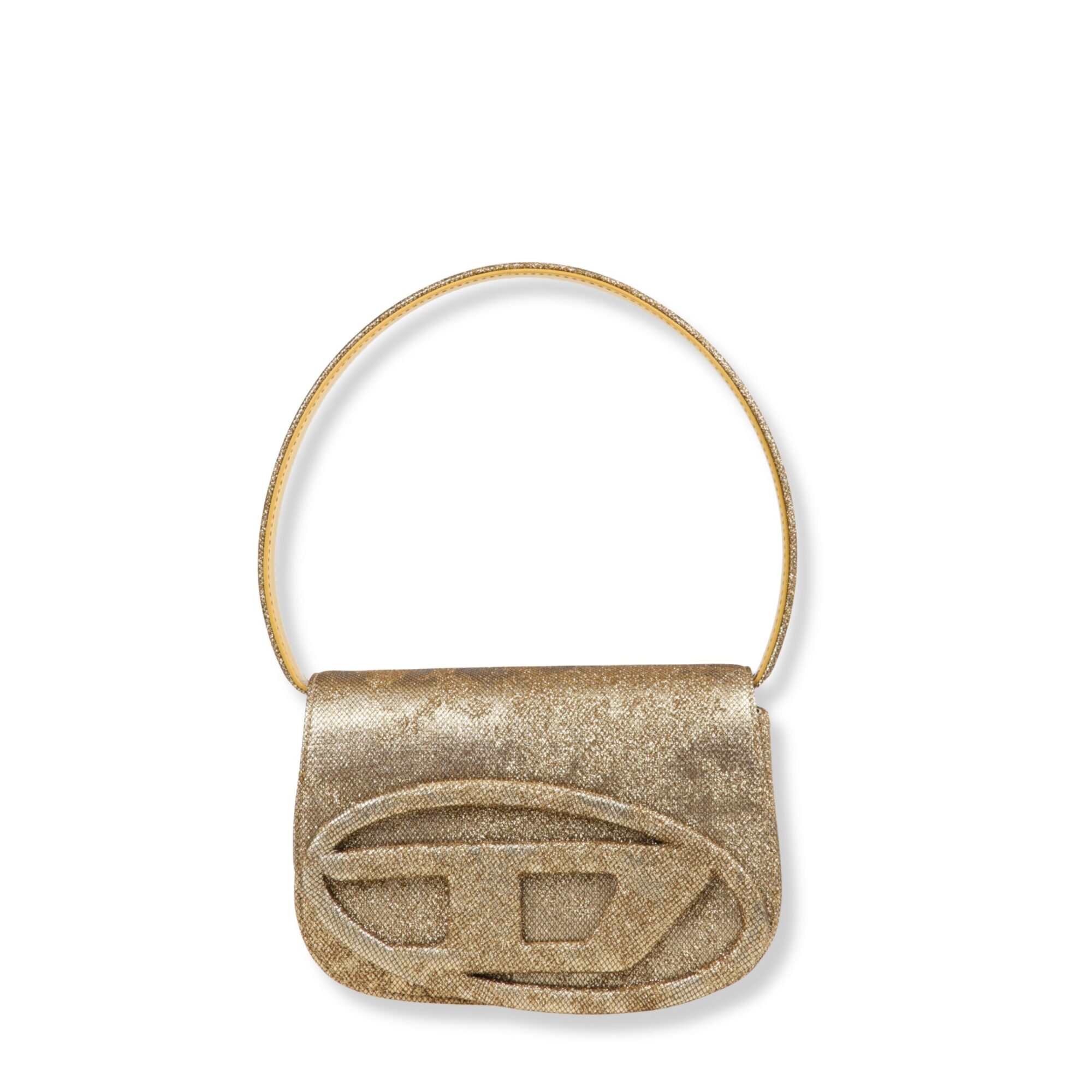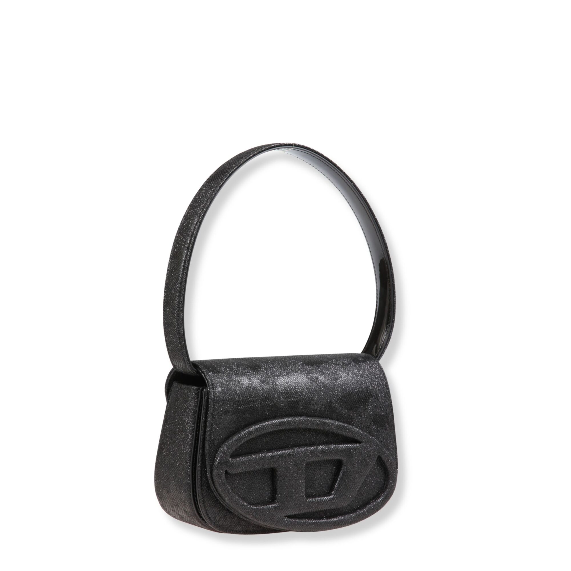 1DR Shoulder Bag Diesel. Modello in pelle lucida specchiata. Patta frontale con targhetta Oval D del brand rivestita in tessuto.