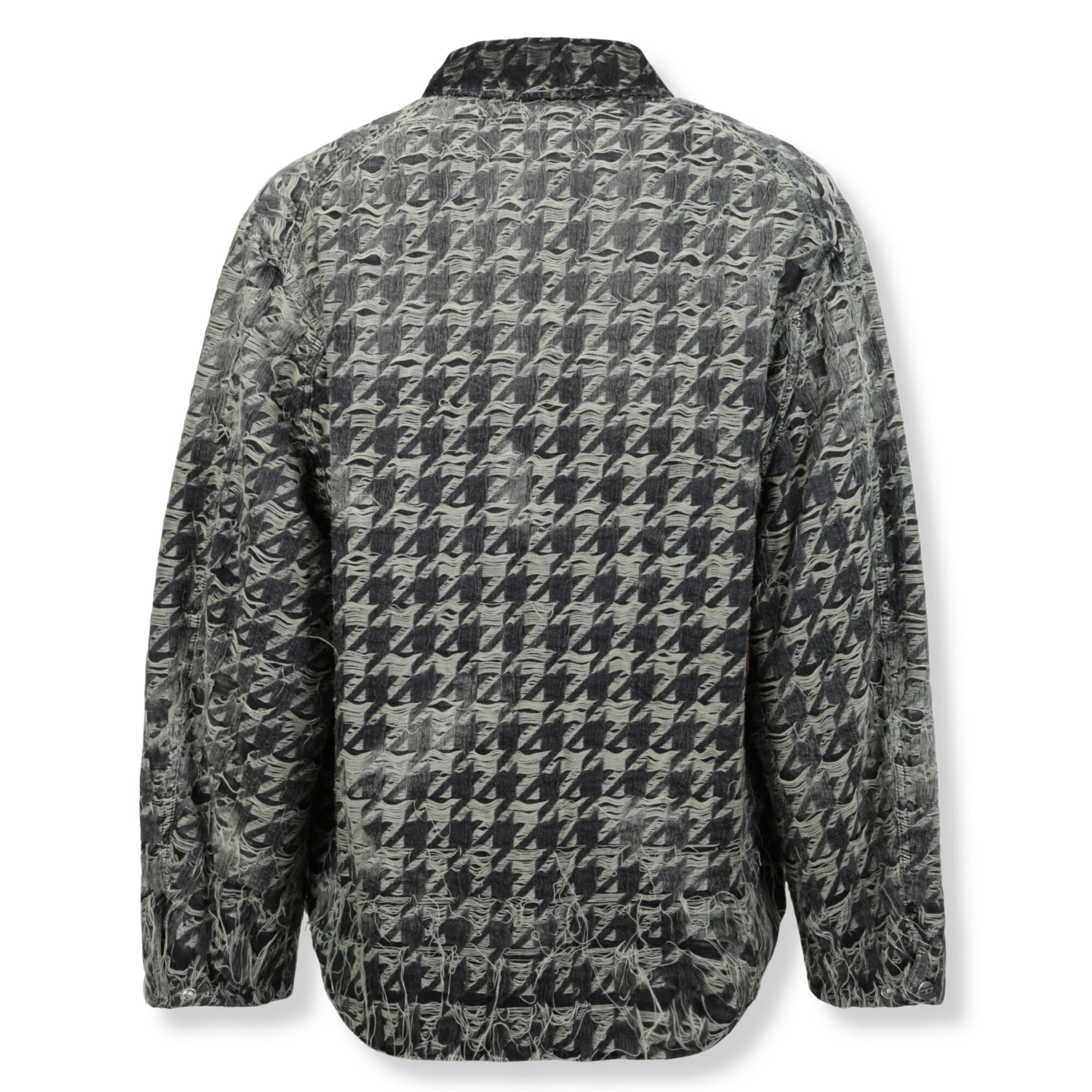 D-Elmo-Fsh Diesel. Design con effetti bruciati e fili fluttuanti. Vestibilità rilassata, taglio dritto e colletto a camicia. Chiusura con zip frontale.
