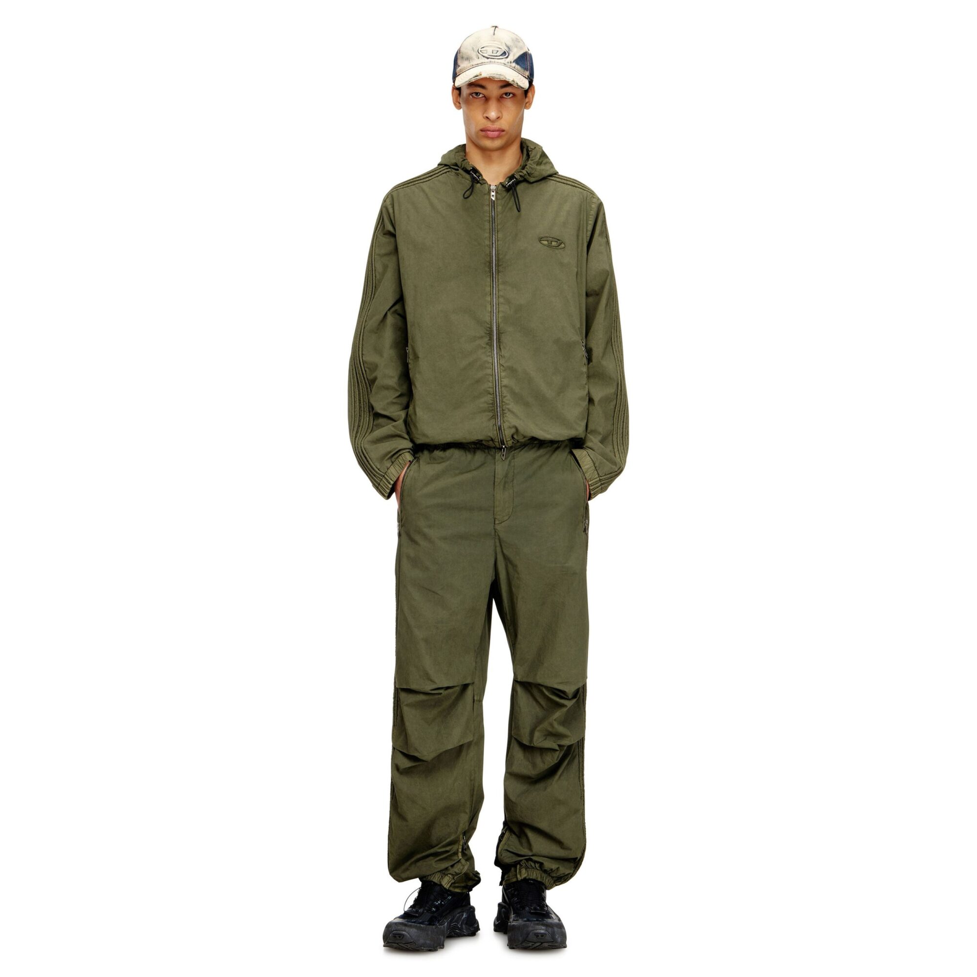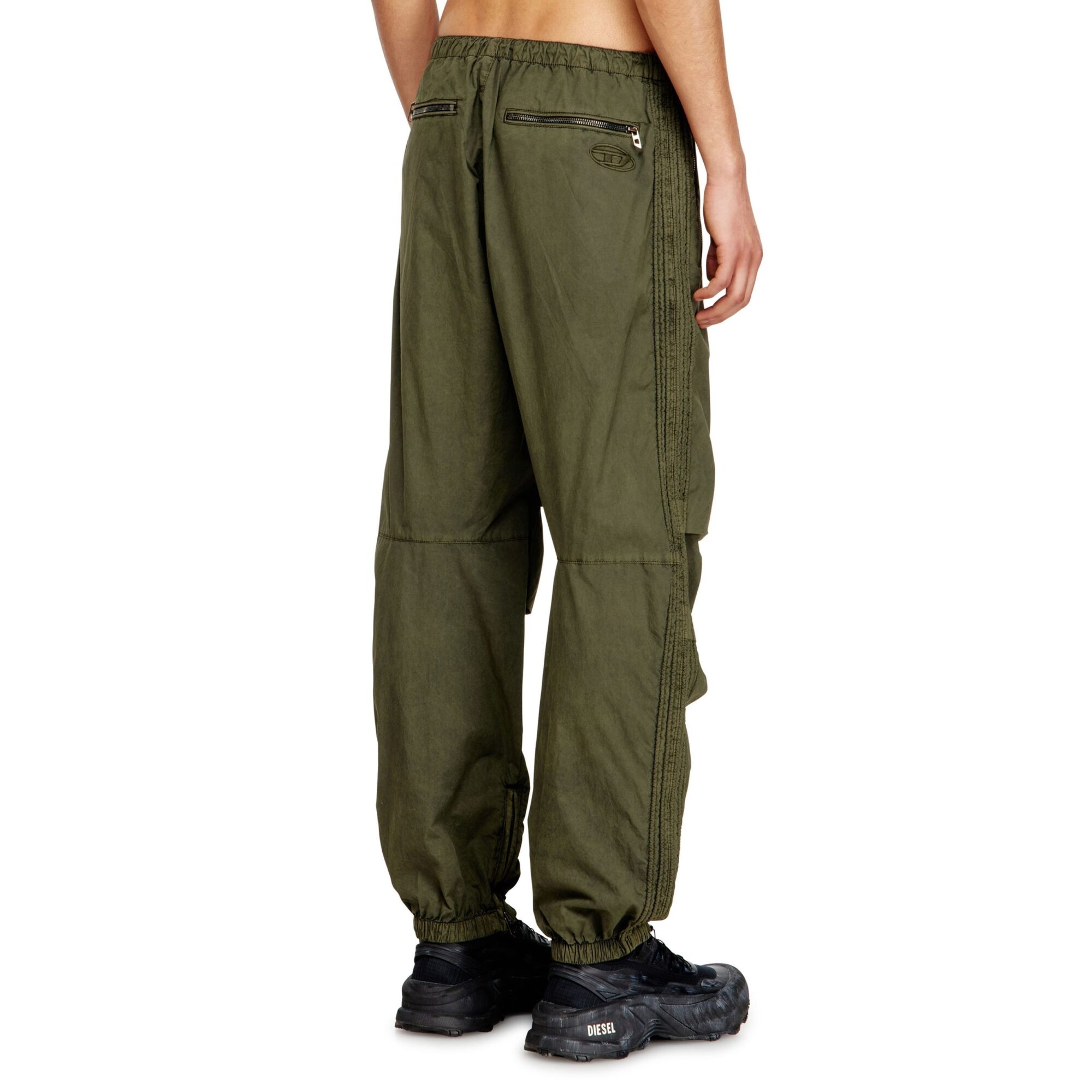 P-Stitch Diesel. Design in popeline di cotone, vita elasticizzata con coulisse, tasche cargo e caviglie con polsini elasticizzati.