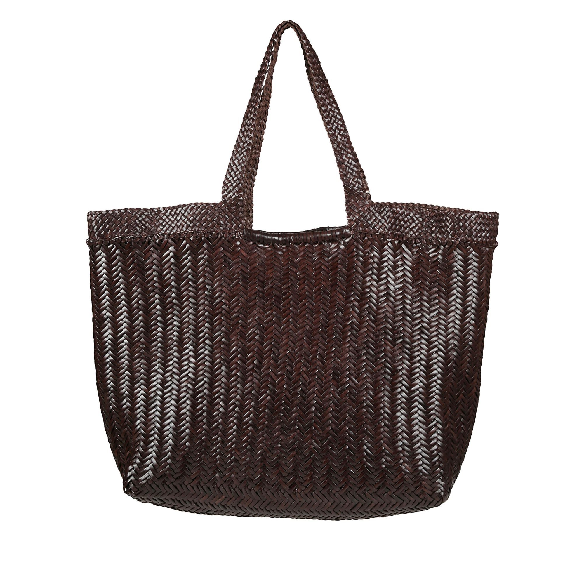Big Triple Jump di Dragon Diffusion. Corpo in pelle intrecciata a mano con motivo a spina di pesce. Manici superiori in pelle intrecciata.
