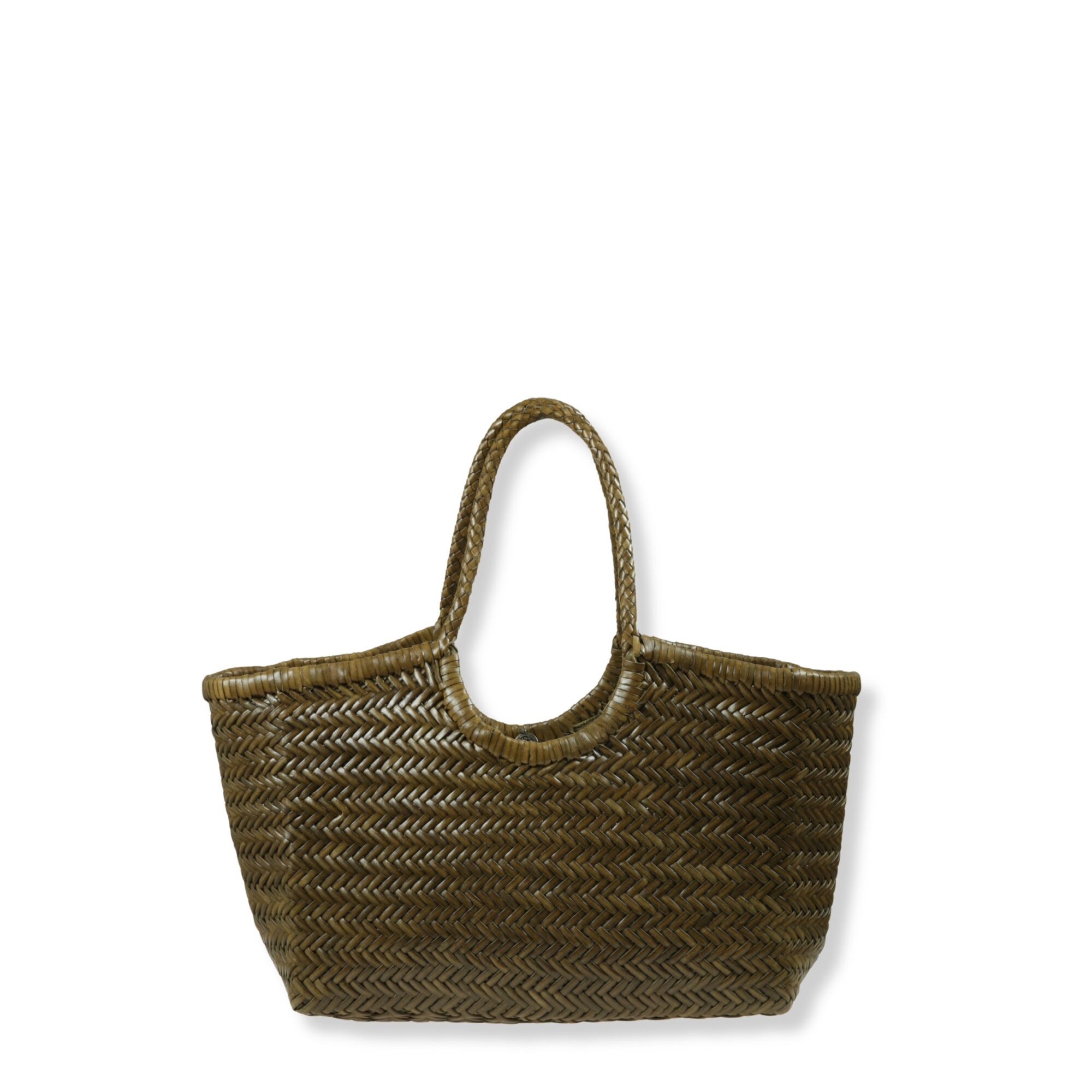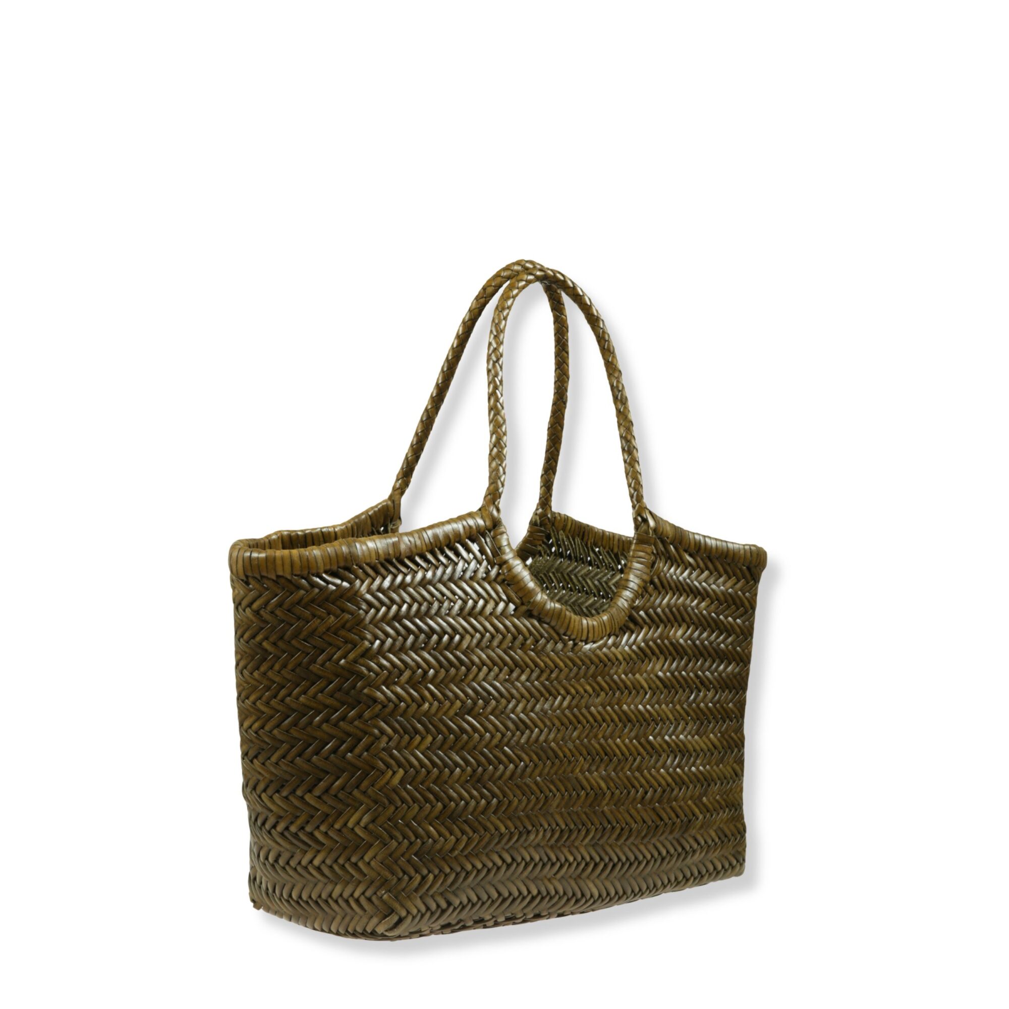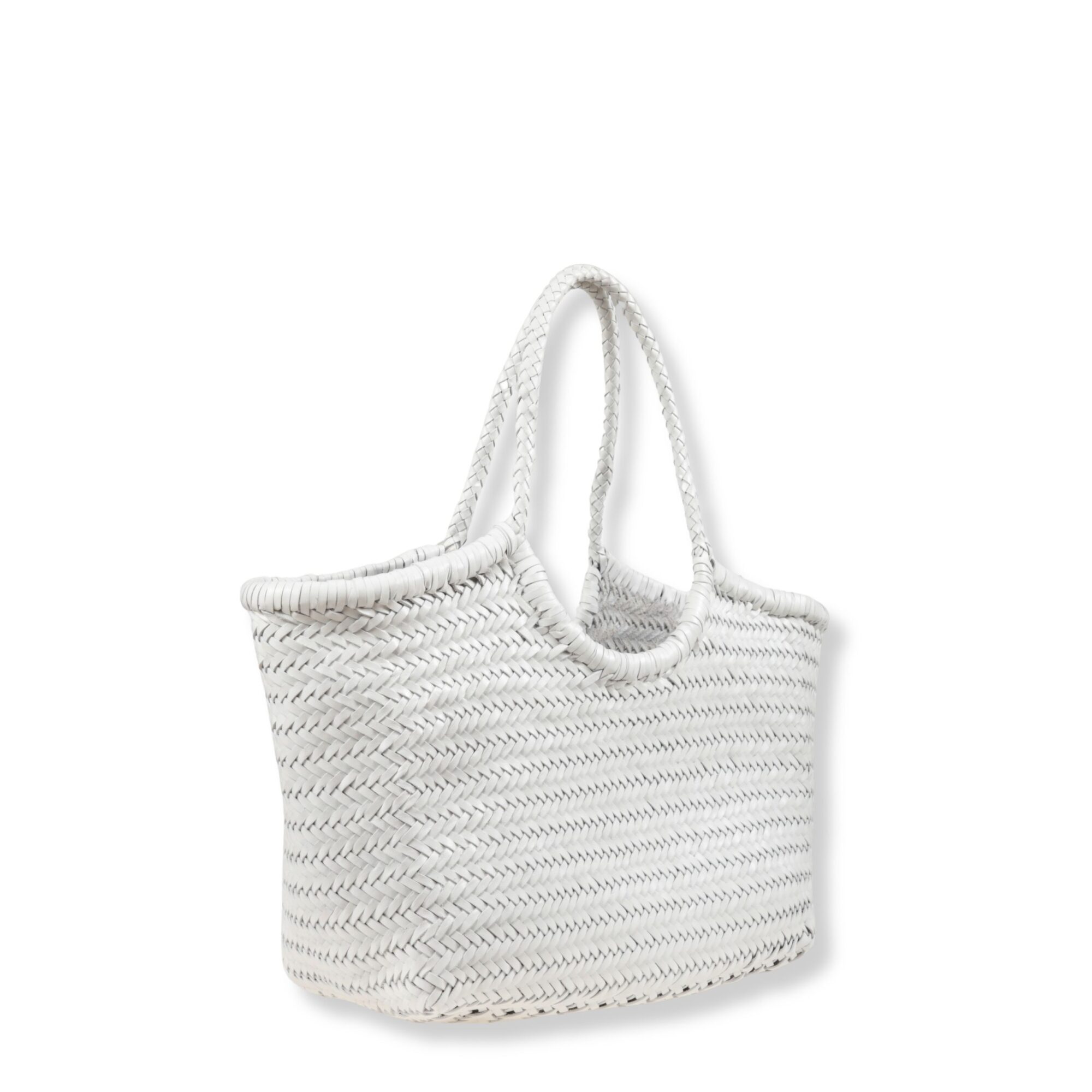 Nantucket Basket Bag Dragon Diffusion. Design iconico in pelle intrecciata, open-top con manici superiori in pelle.