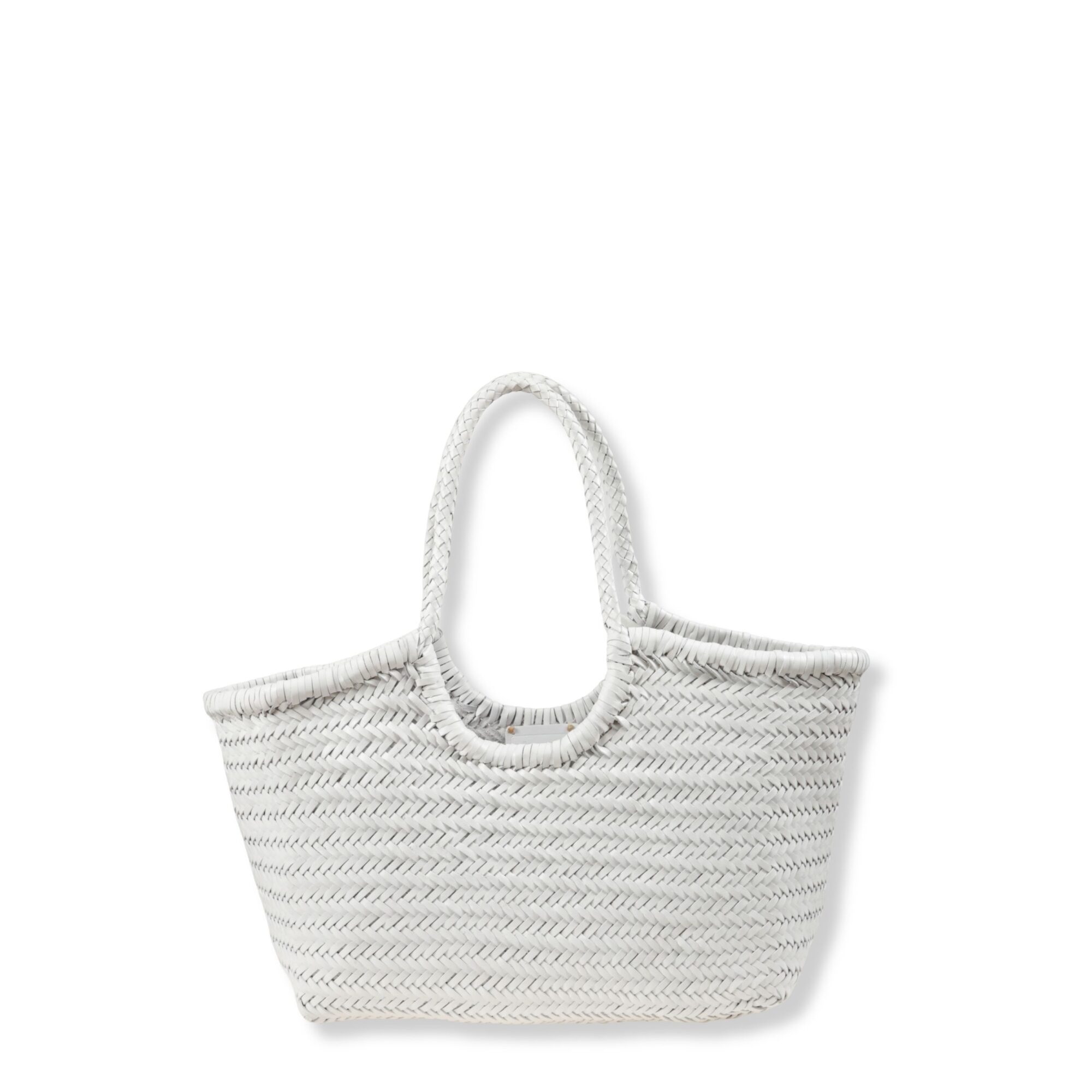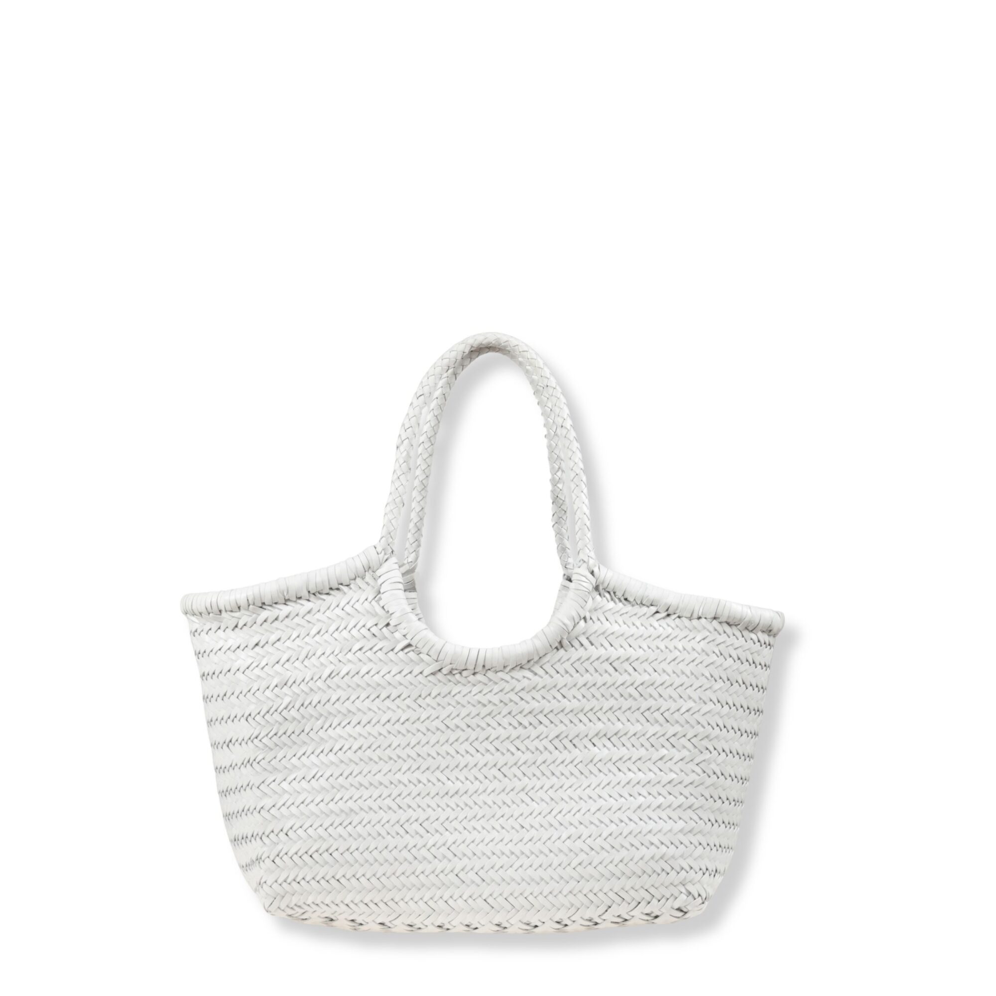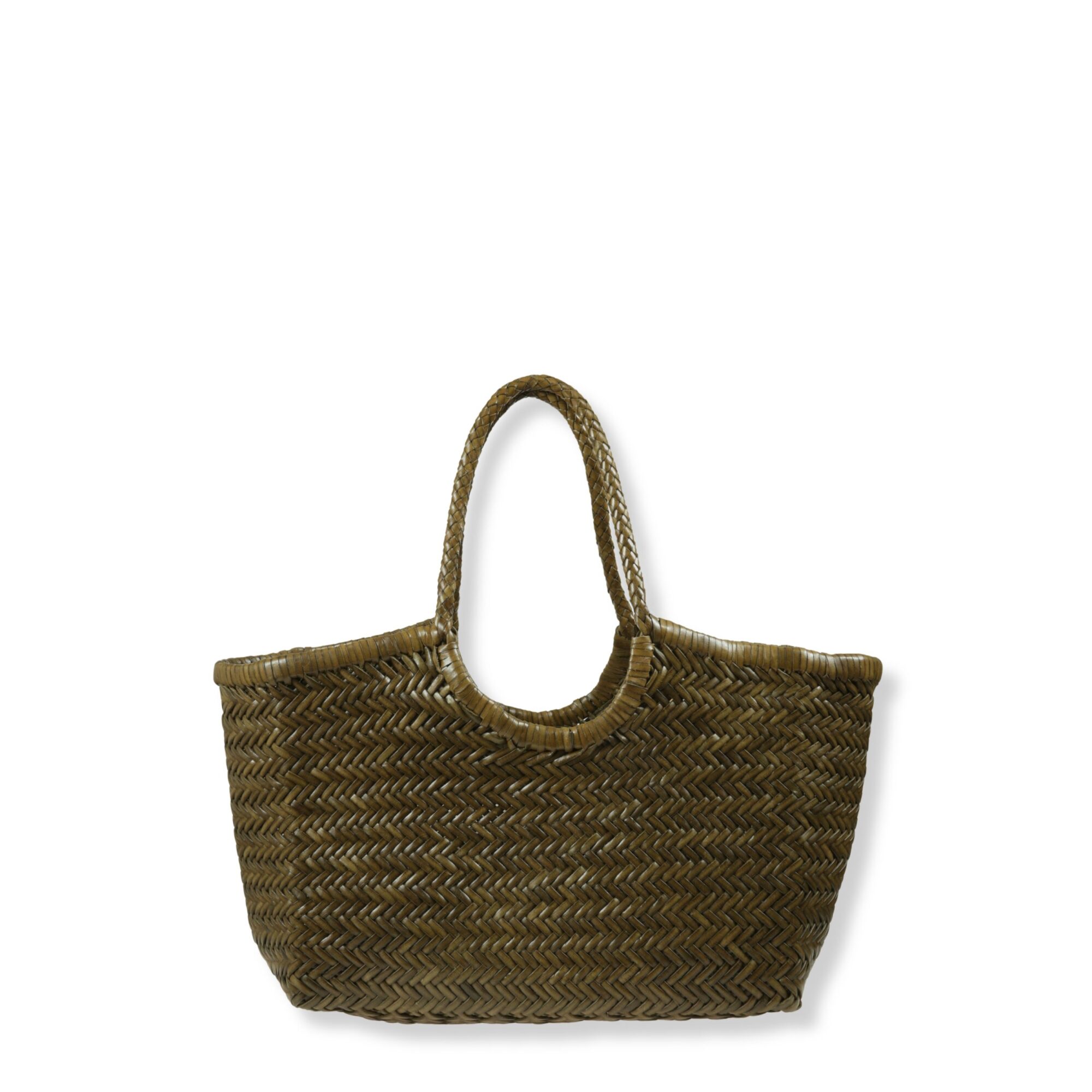 Nantucket Basket Bag Dragon Diffusion. Design iconico in pelle intrecciata, open-top con manici superiori in pelle.