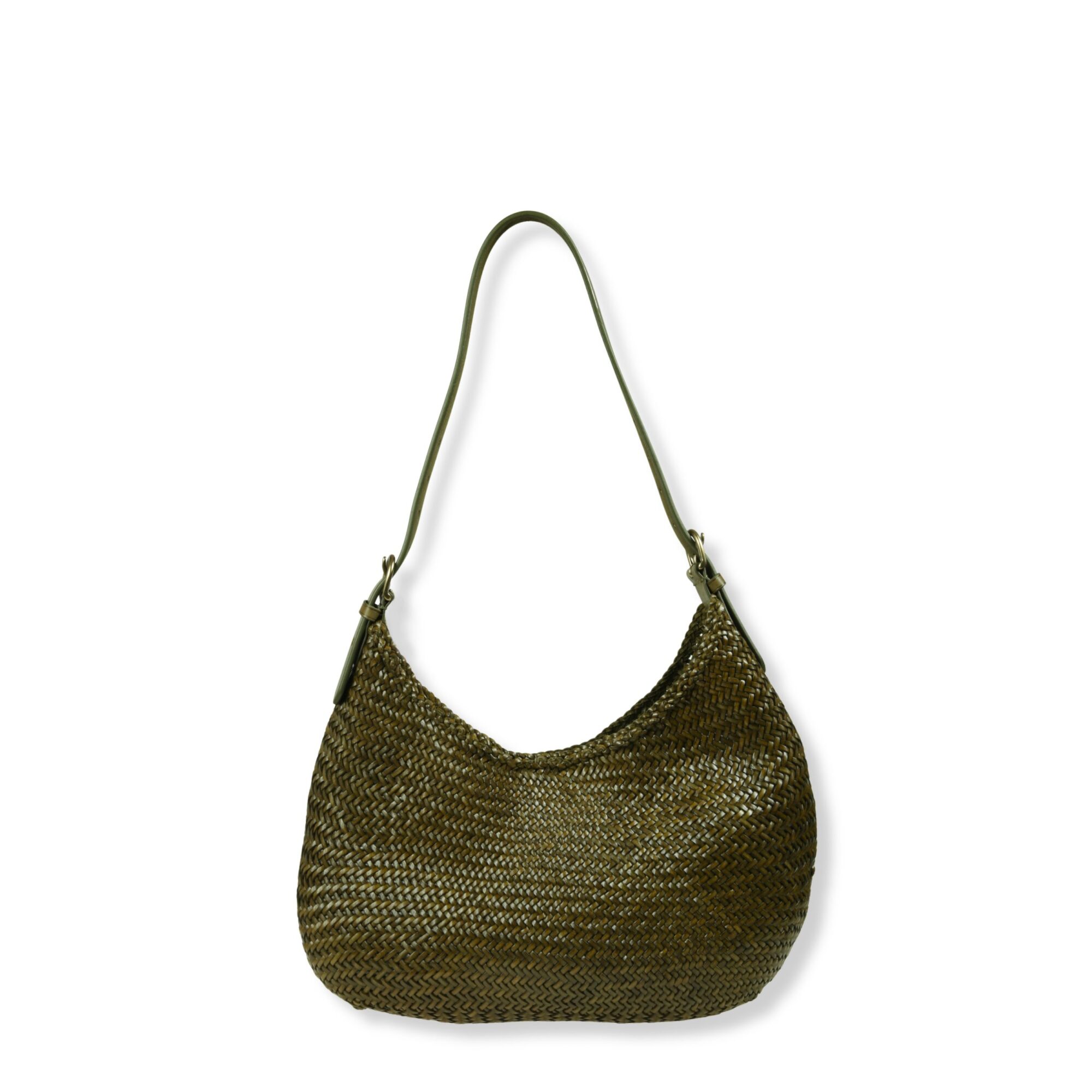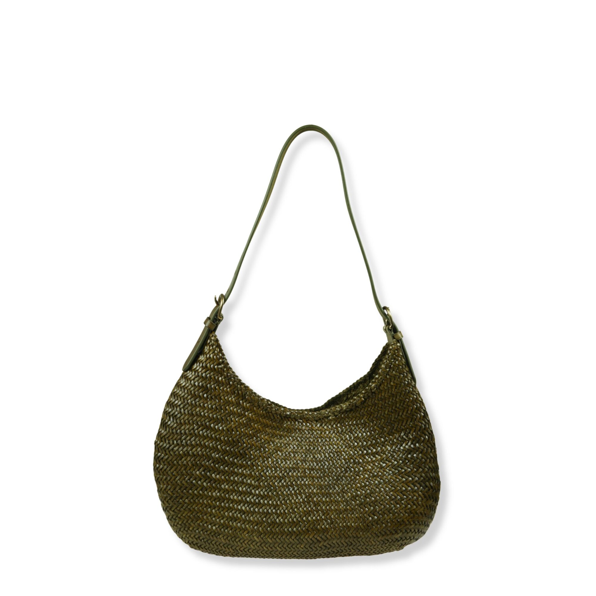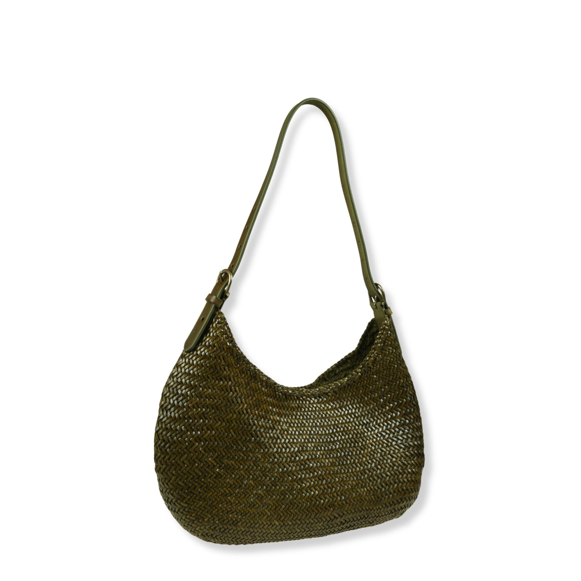Luna Mezza Dragon Diffusion. Iconico design in pelle intrecciata, open-top con chiusura magnetica a scomparsa e tracolla in pelle regolabile coordinata.