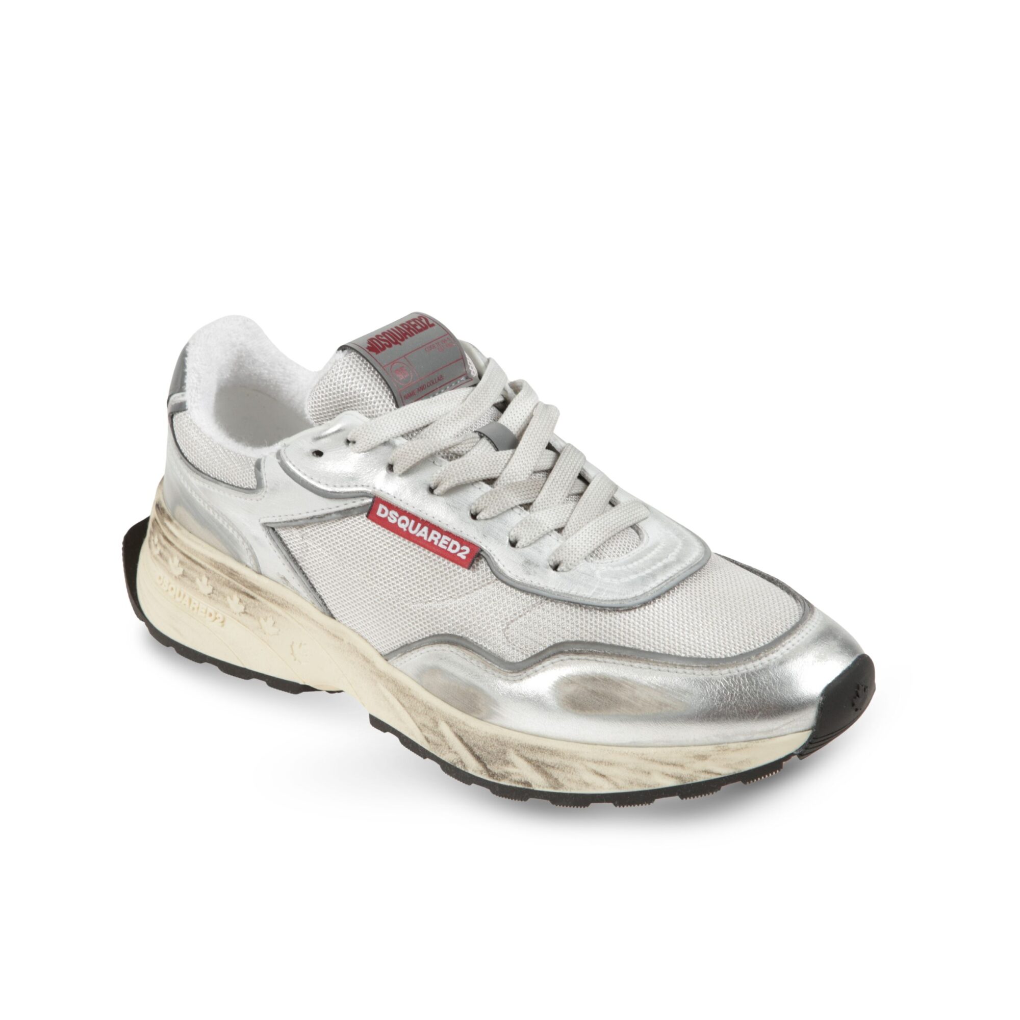 Sneakers Sprinters DSquared2. Design running in mesh con inserti in pelle laminata effetto dirty.