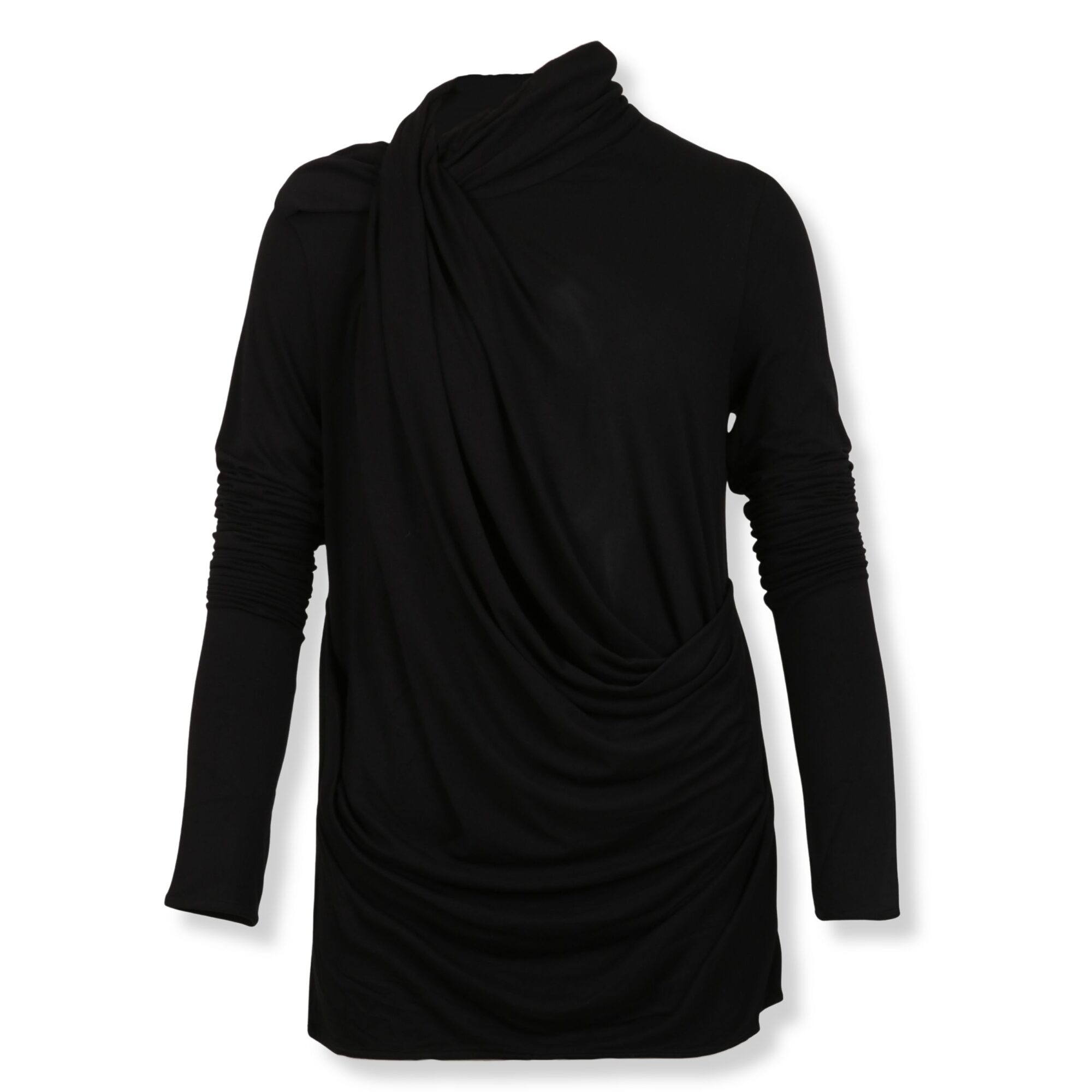 Top Entire Studios. Maniche lunghe e collo alto con un drappeggio frontale.