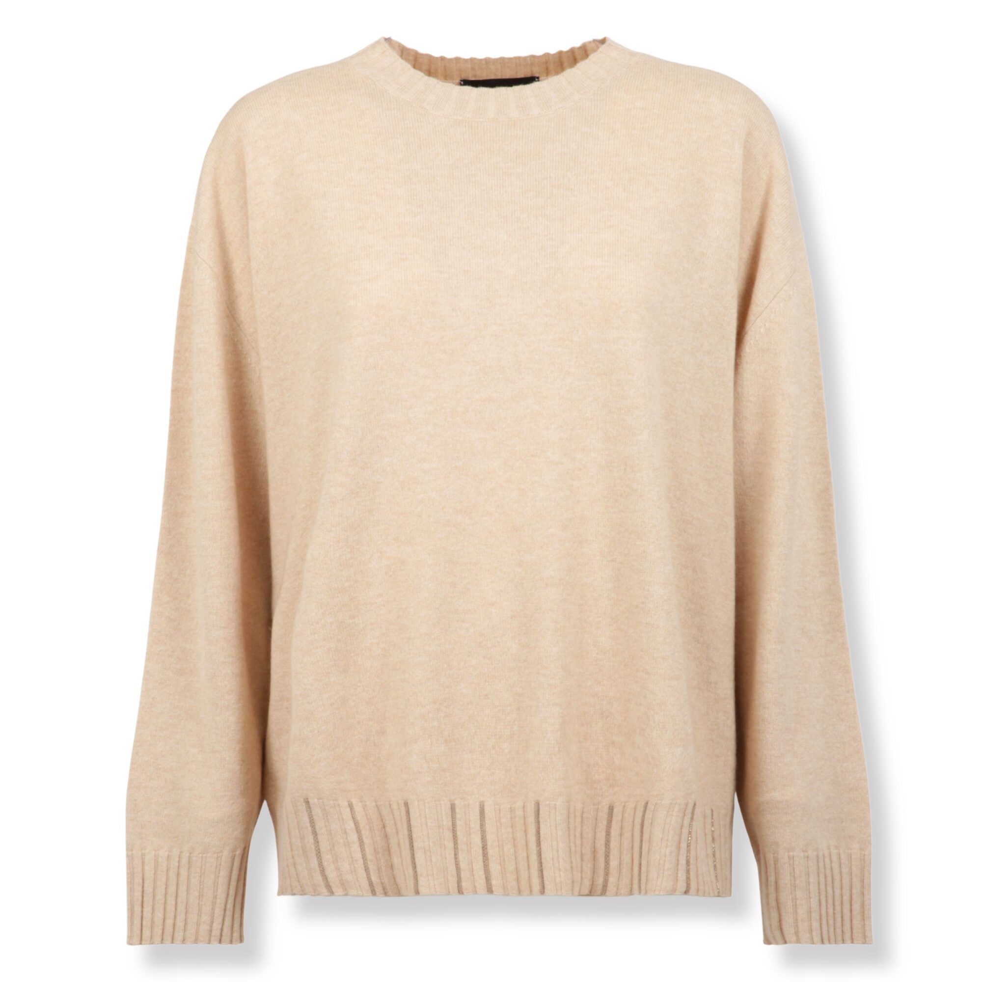 Maglione Fabiana Filippi. Modello in filato Platinum che unisce lana, cashmere e seta. Vestibilità oversize, girocollo e bordi a costine.