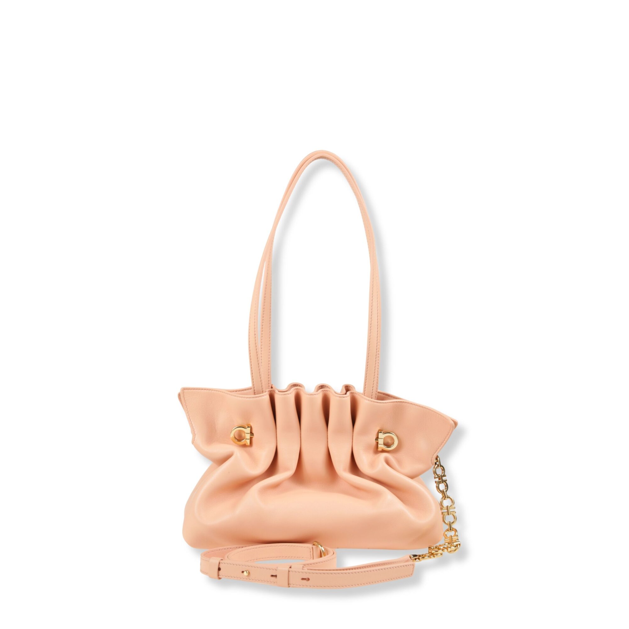 Soft-Bag (S) Ferragamo. Silhouette iconica con Gancio pin frontale e doppio manico superiore. Scomparto interno unico e tracolla coordinata.