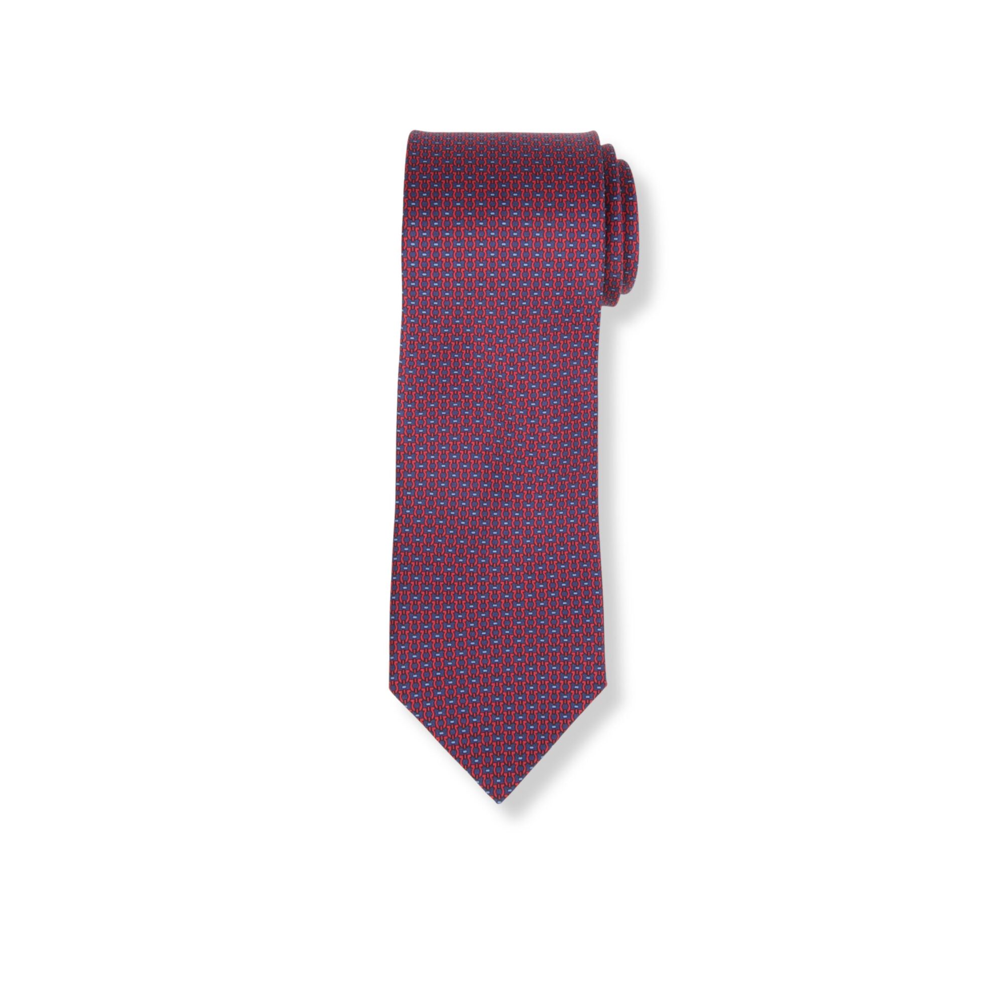 Cravatta Stampa Gancini Ferragamo. Design in seta, pattern grafico bicolore con logo Gancini.
