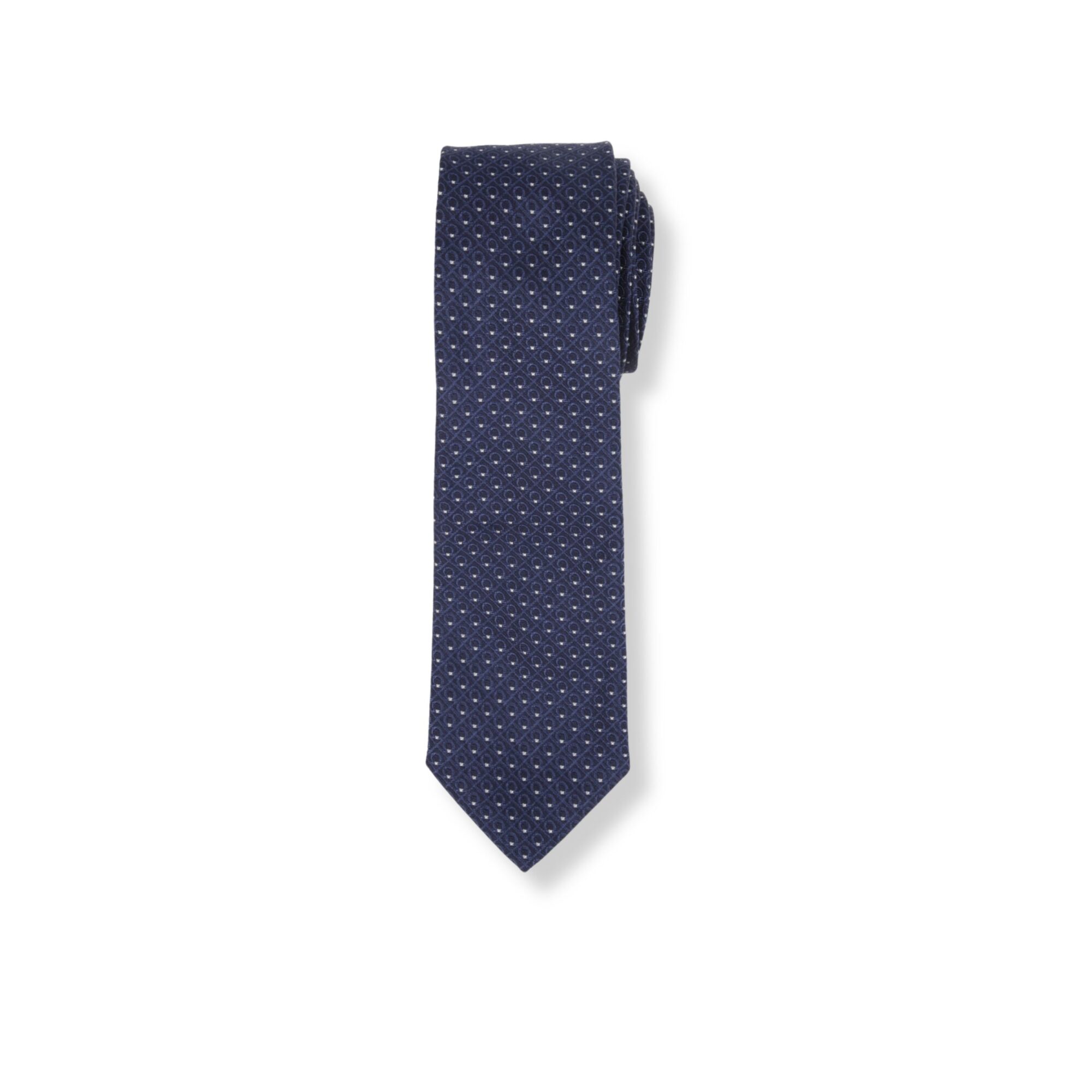 Cravatta Stampa Gancini Ferragamo. Design in seta, stampa con pattern grafico all-over.
