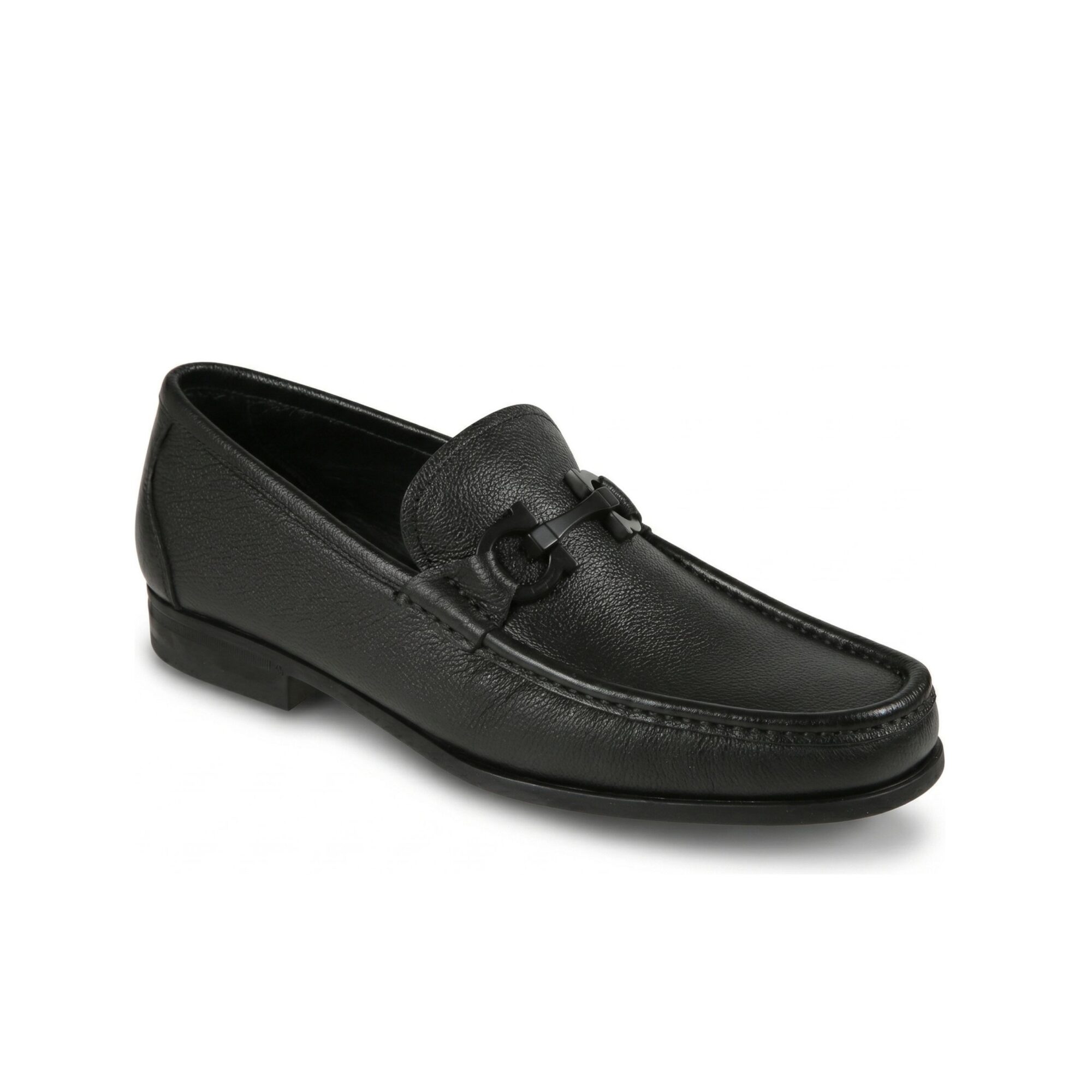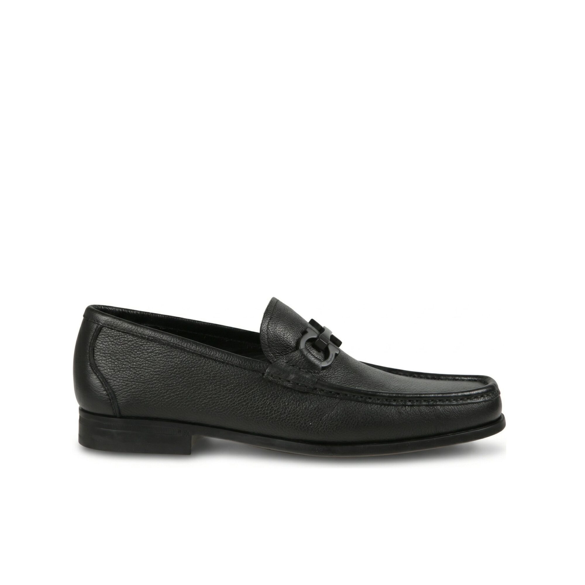 Mocassino Ornamento Gancini Ferragamo. Tomaia in pelle martellata, punta leggermente squadrata, logo Gancini sul davanti.