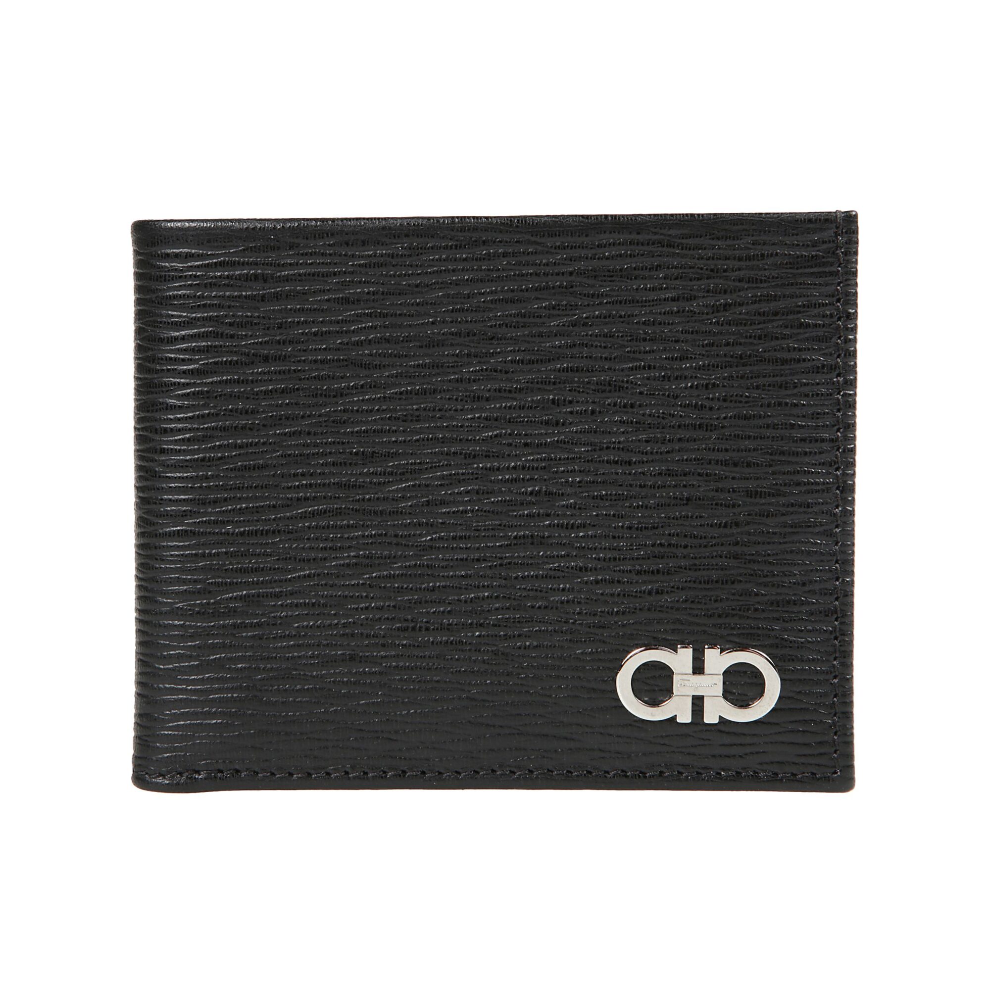 Gancini wallet Ferragamo. Design bi-fold in pelle martellata, con piccolo logo Gancini sul davanti. Interno con vari scomparti per carte e tasca per banconote.