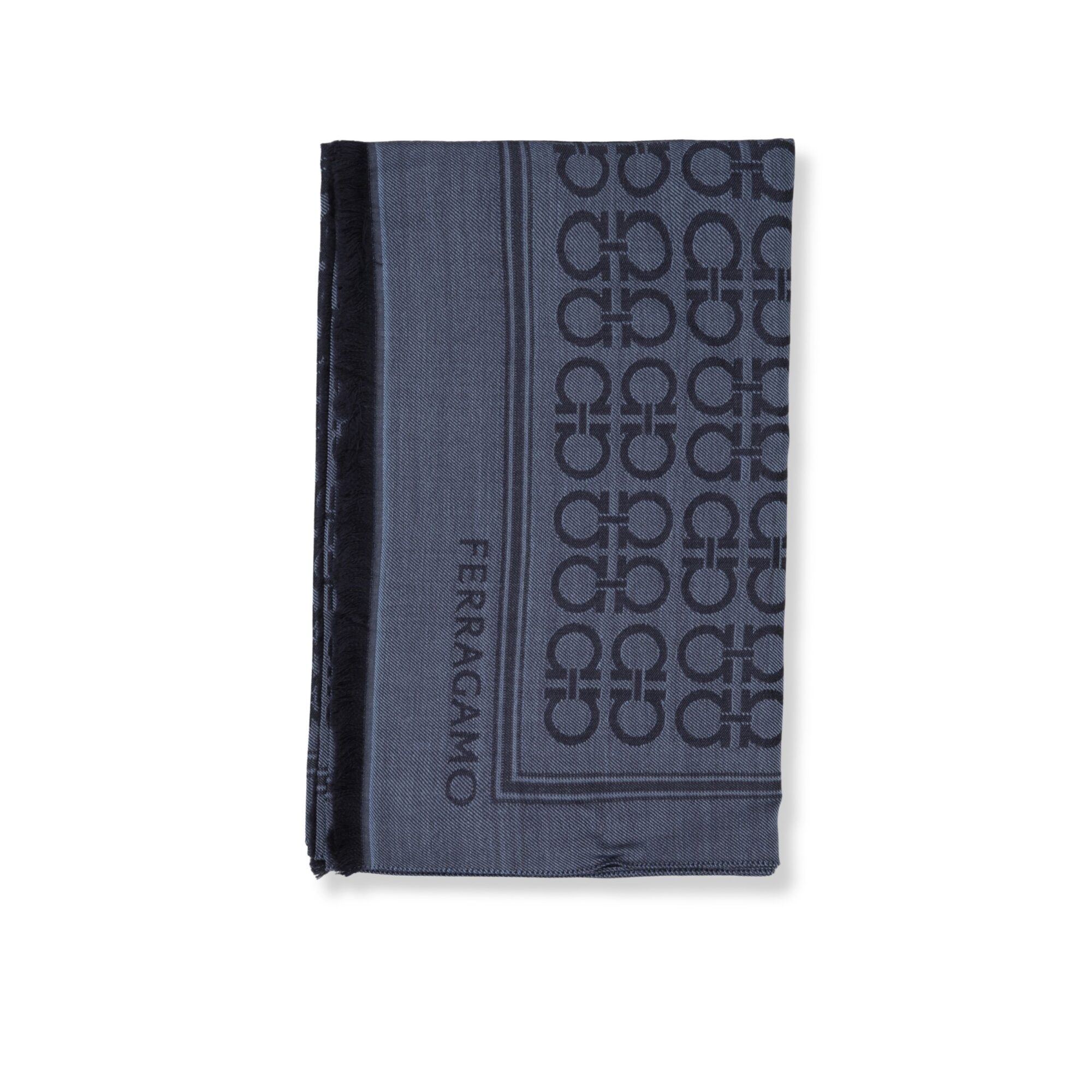 Stola Gancini Ferragamo. In lana e seta, bordi sfrangiati, decorata con motivo del logo Gancini.