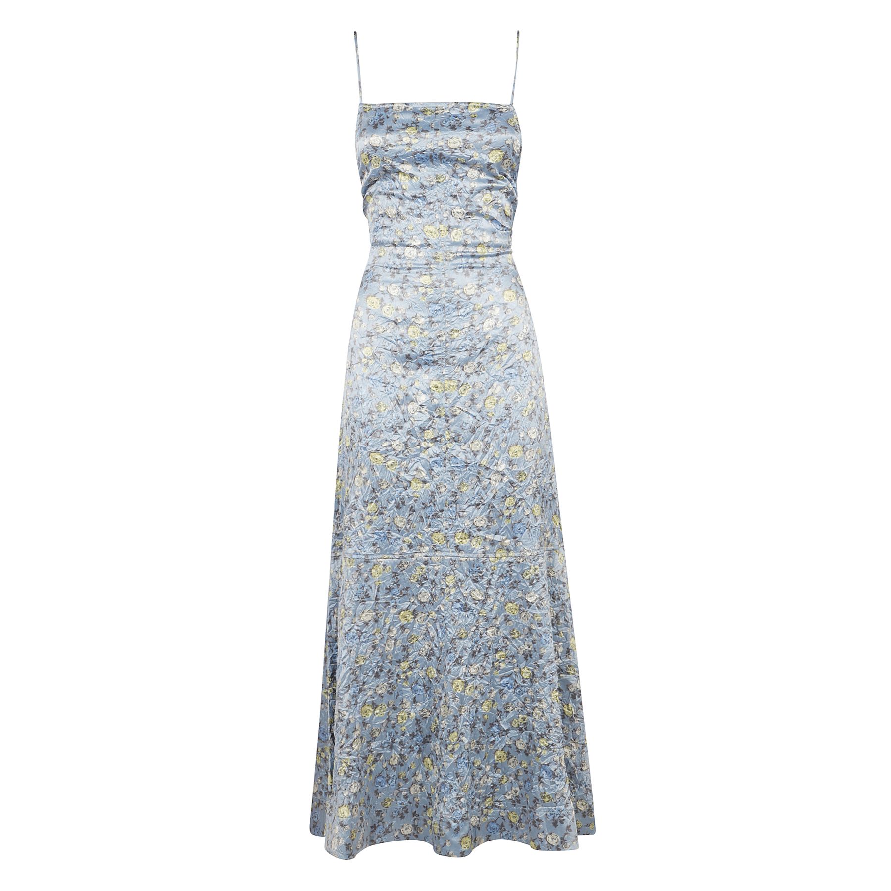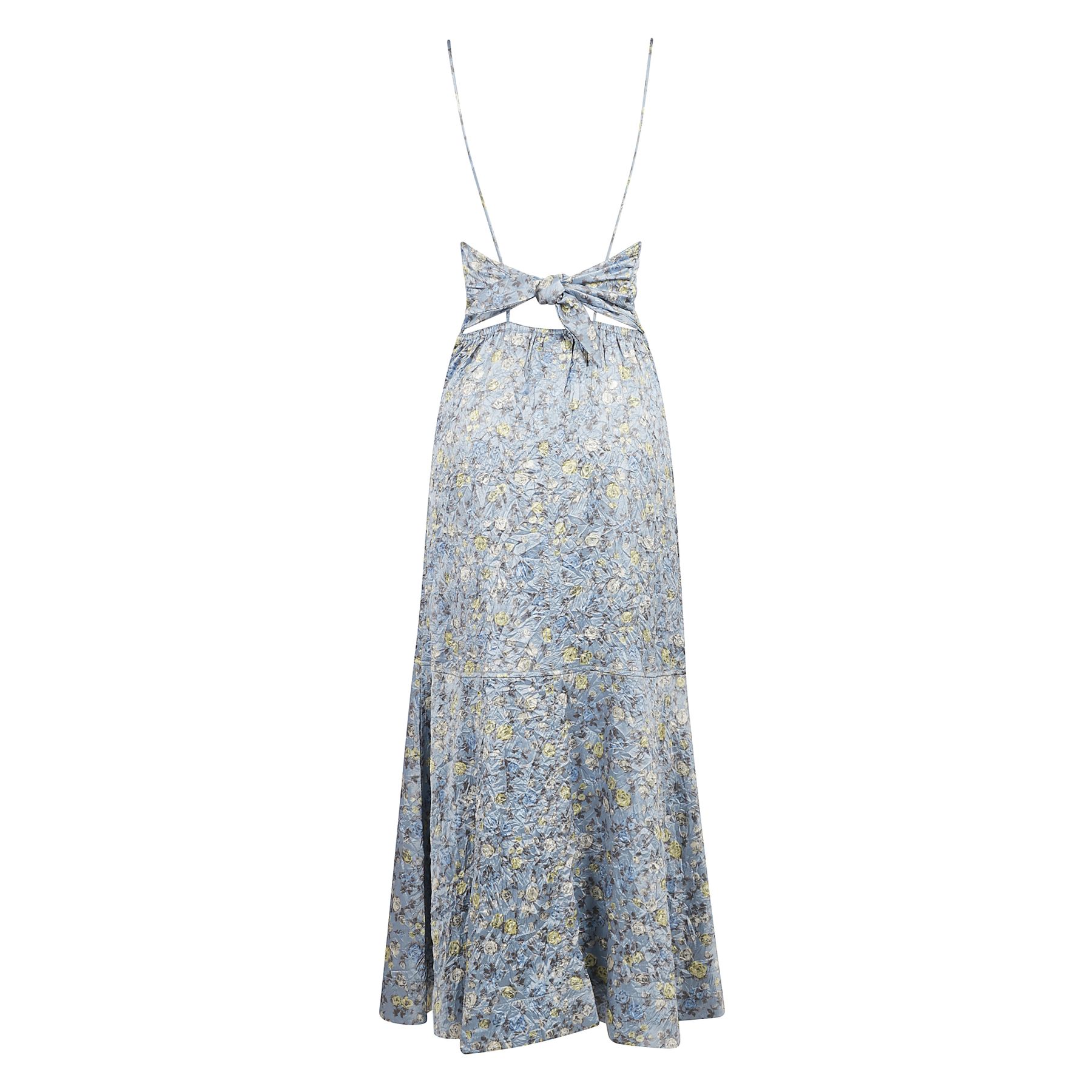 Crinkled Satin Open Back Long Slip Dress