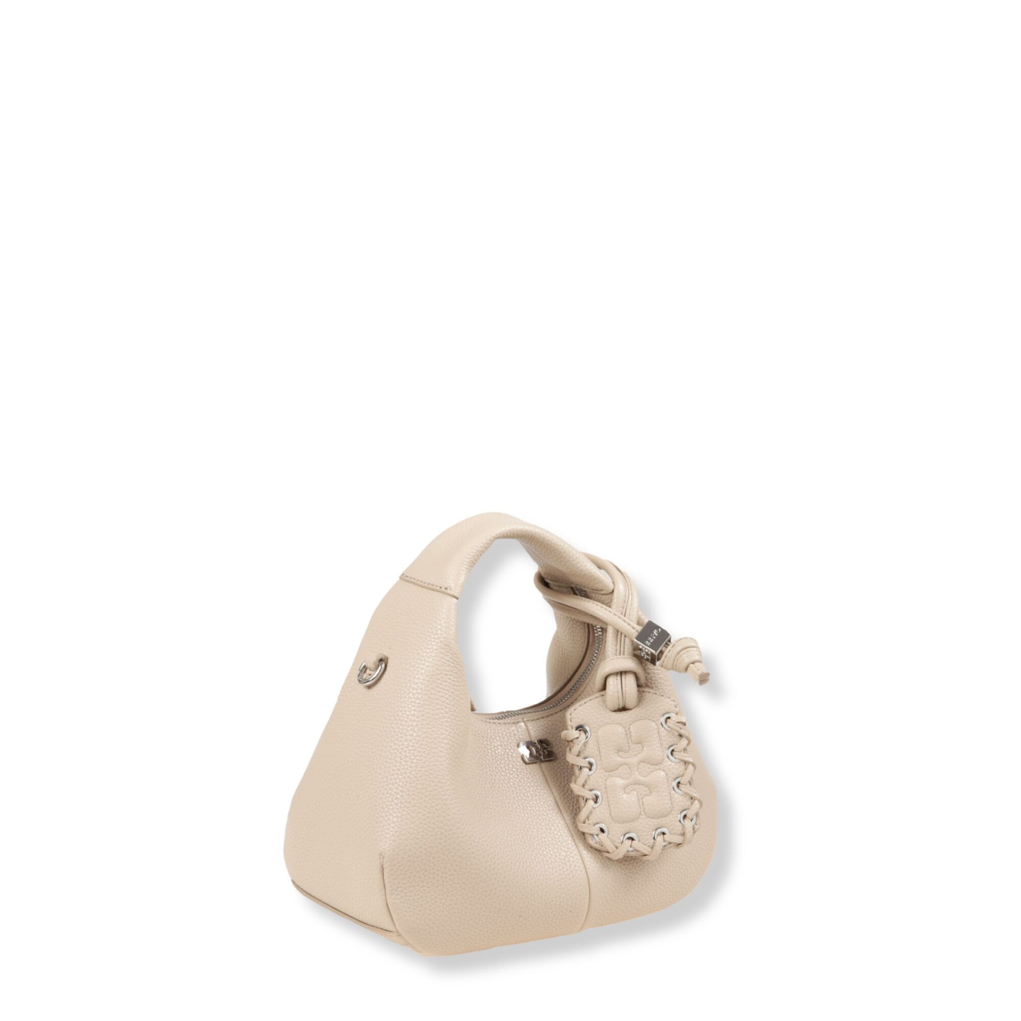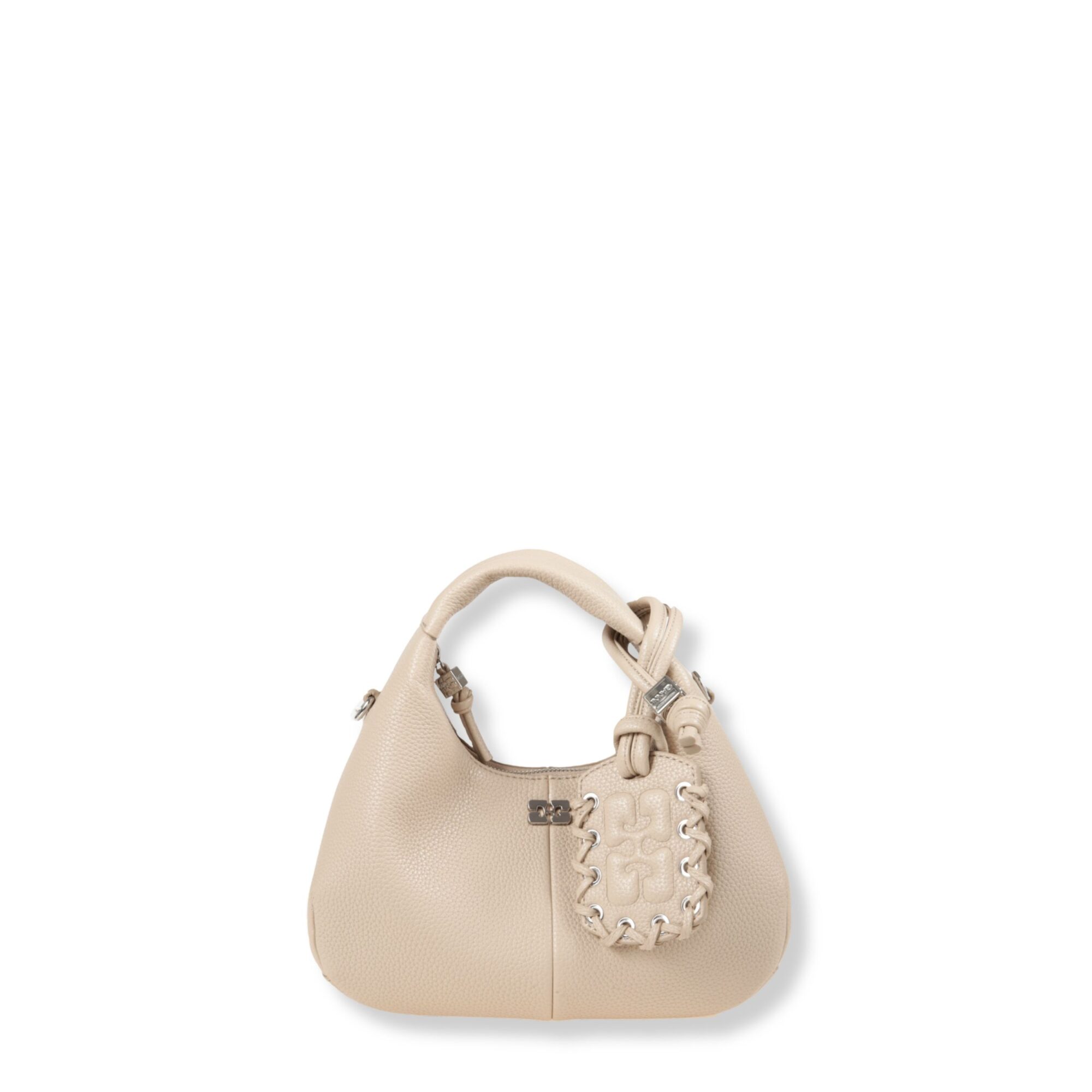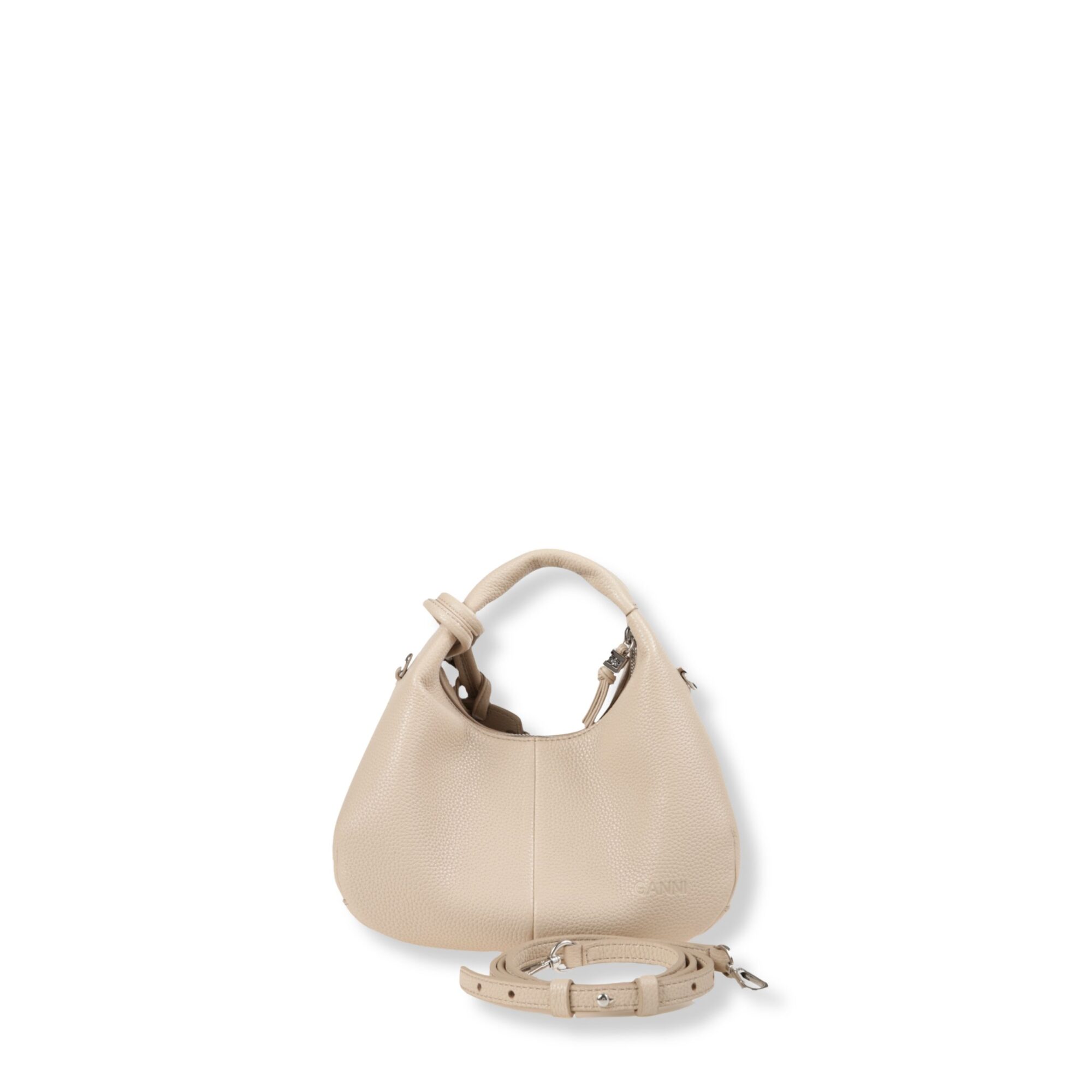 Mini Hobo Bag Ganni. Iconico design con manico superiore e chiusura con zip. Dotata di tracolla rimovibile coordinata.