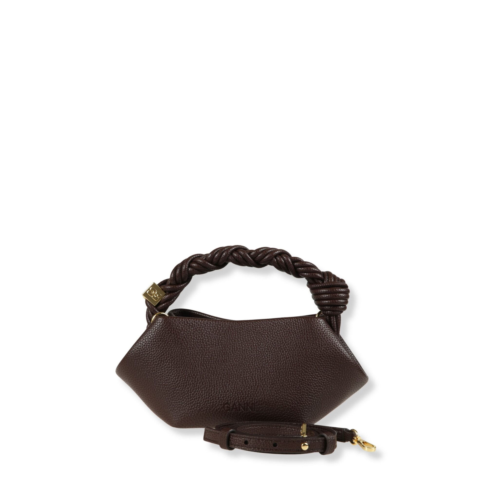 Mini Bou Bag Ganni. Design iconico con manico superiore intrecciato e dettaglio dice charm laterale. Interno con chiusura magnetica e slot per carte integrato. Dotata di tracolla rimovibile coordinata.