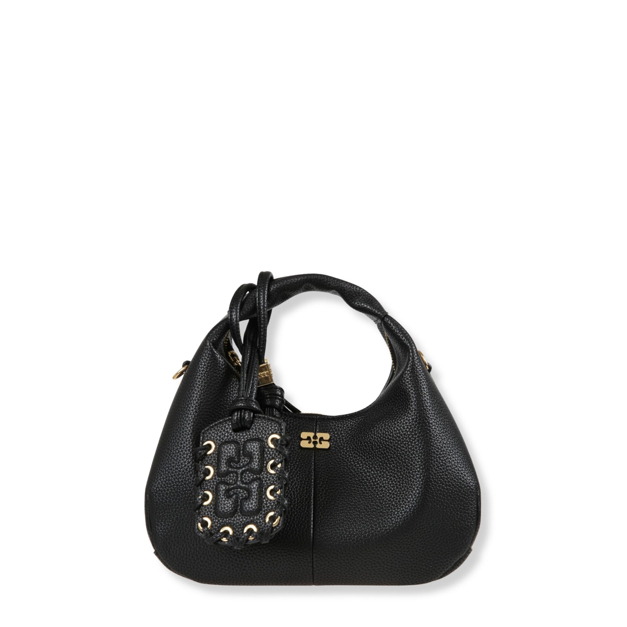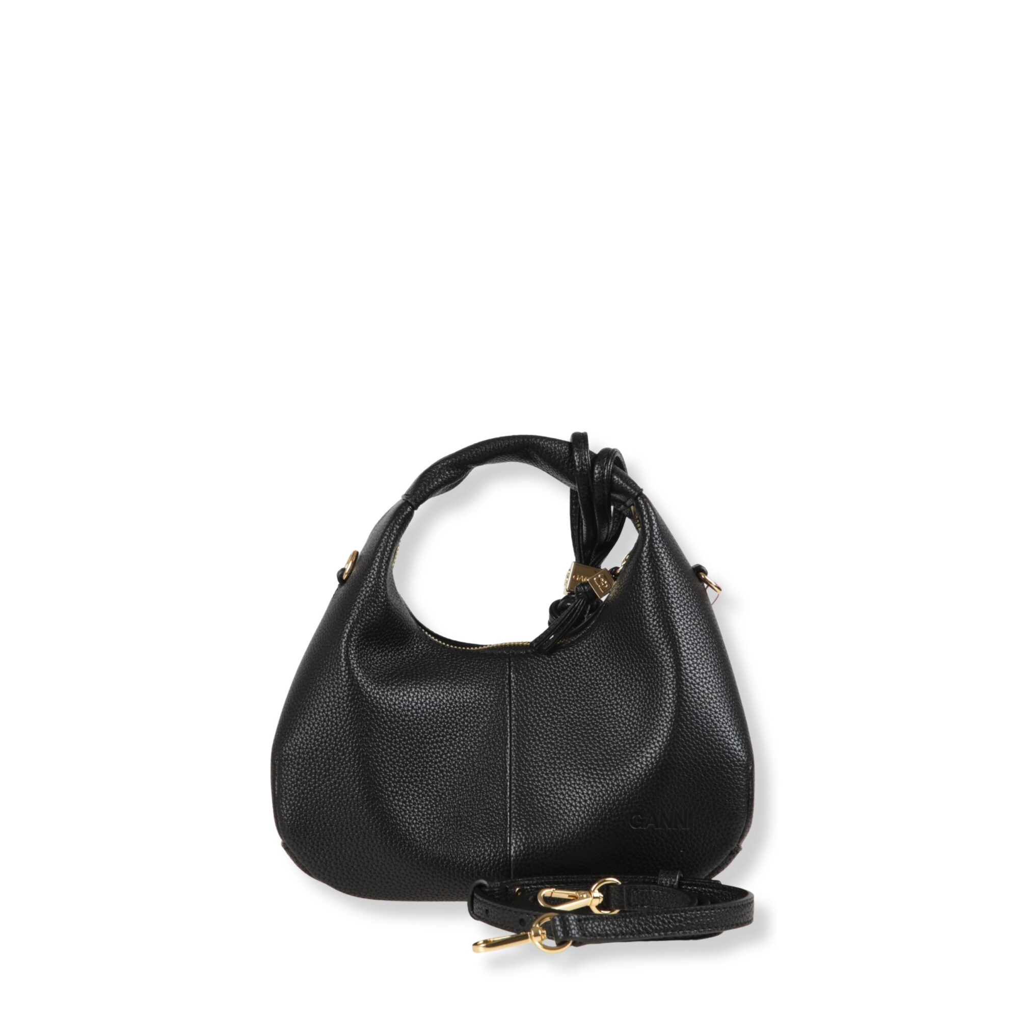 Mini Hobo Bag Ganni. Iconico design con manico superiore e chiusura con zip. Dotata di tracolla rimovibile coordinata.